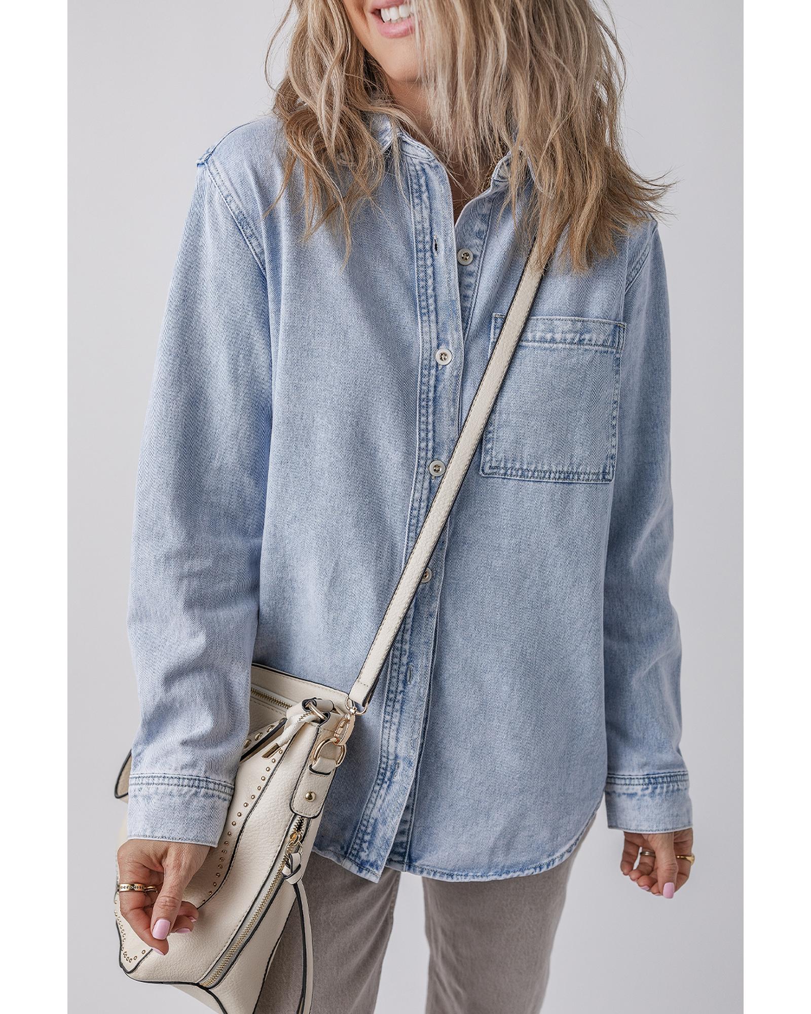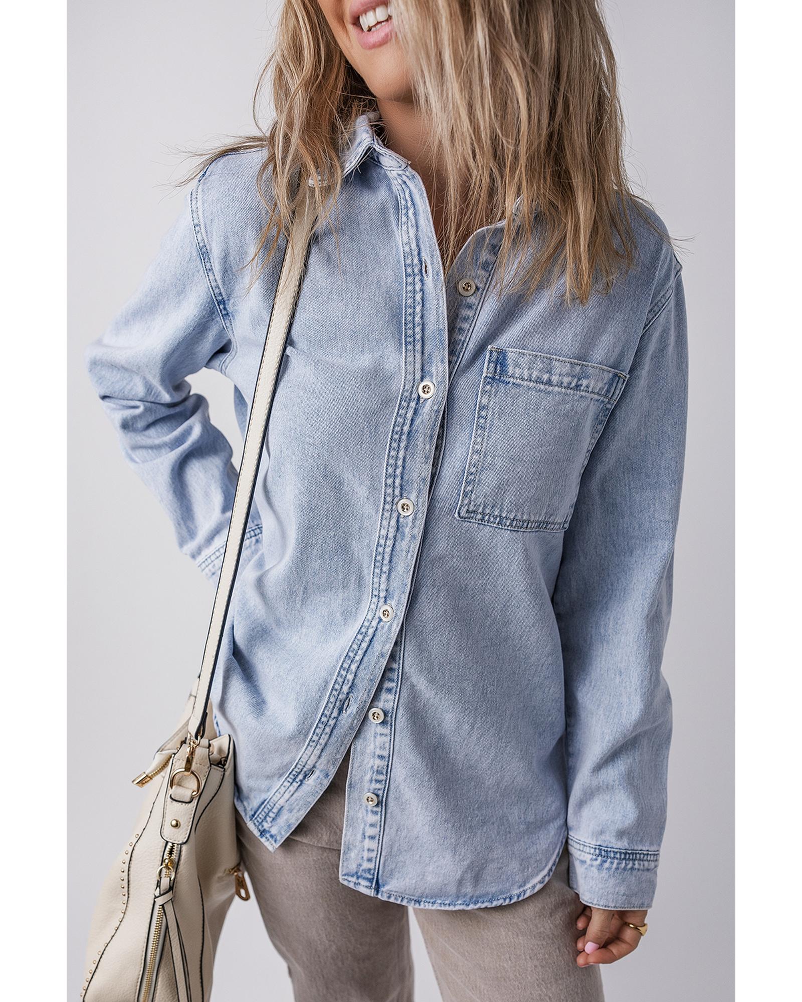 Beau Blue Long Sleeve Buttoned Chest Pocket Denim Shacket - L Original price was: $79.99.Current price is: $43.99.