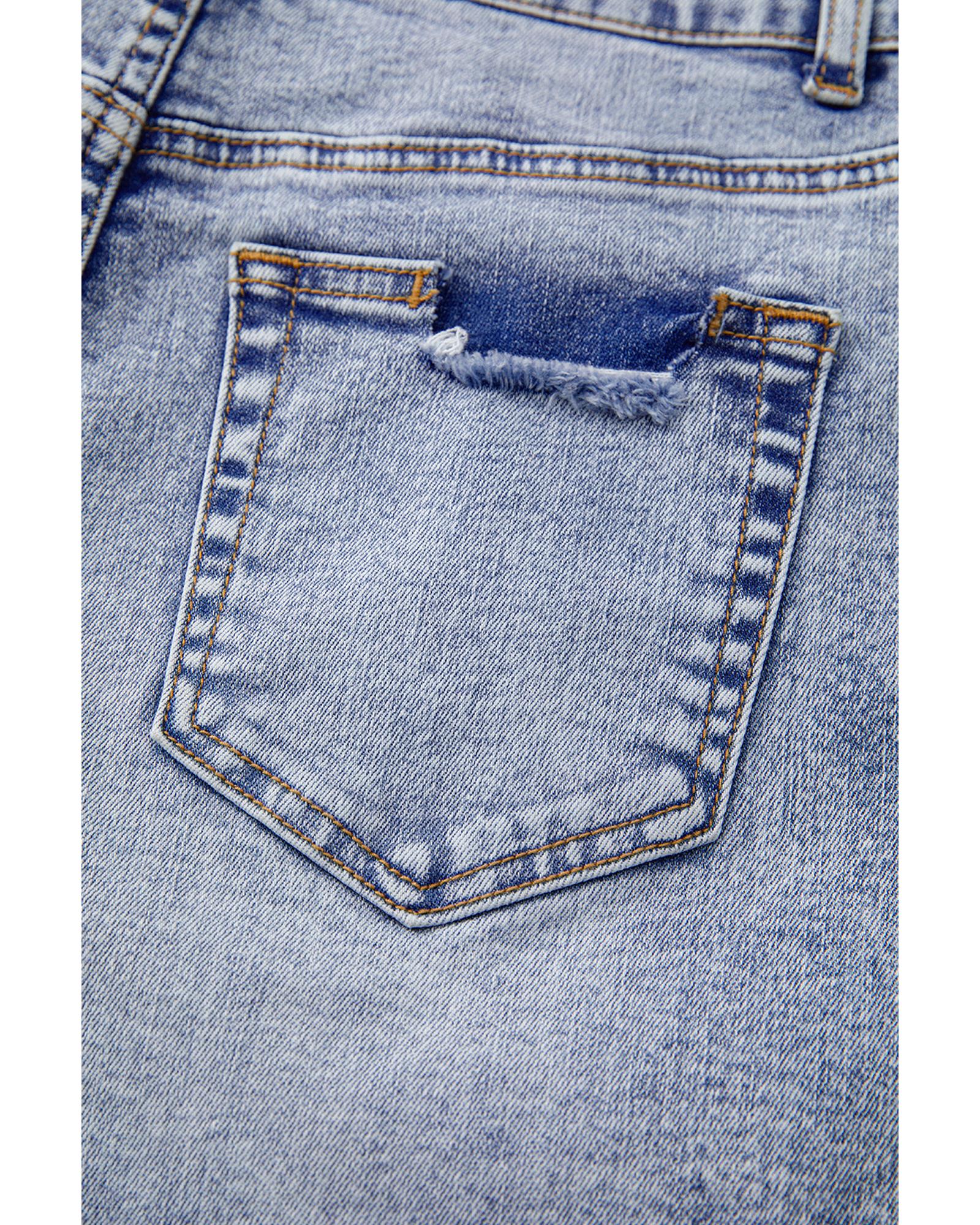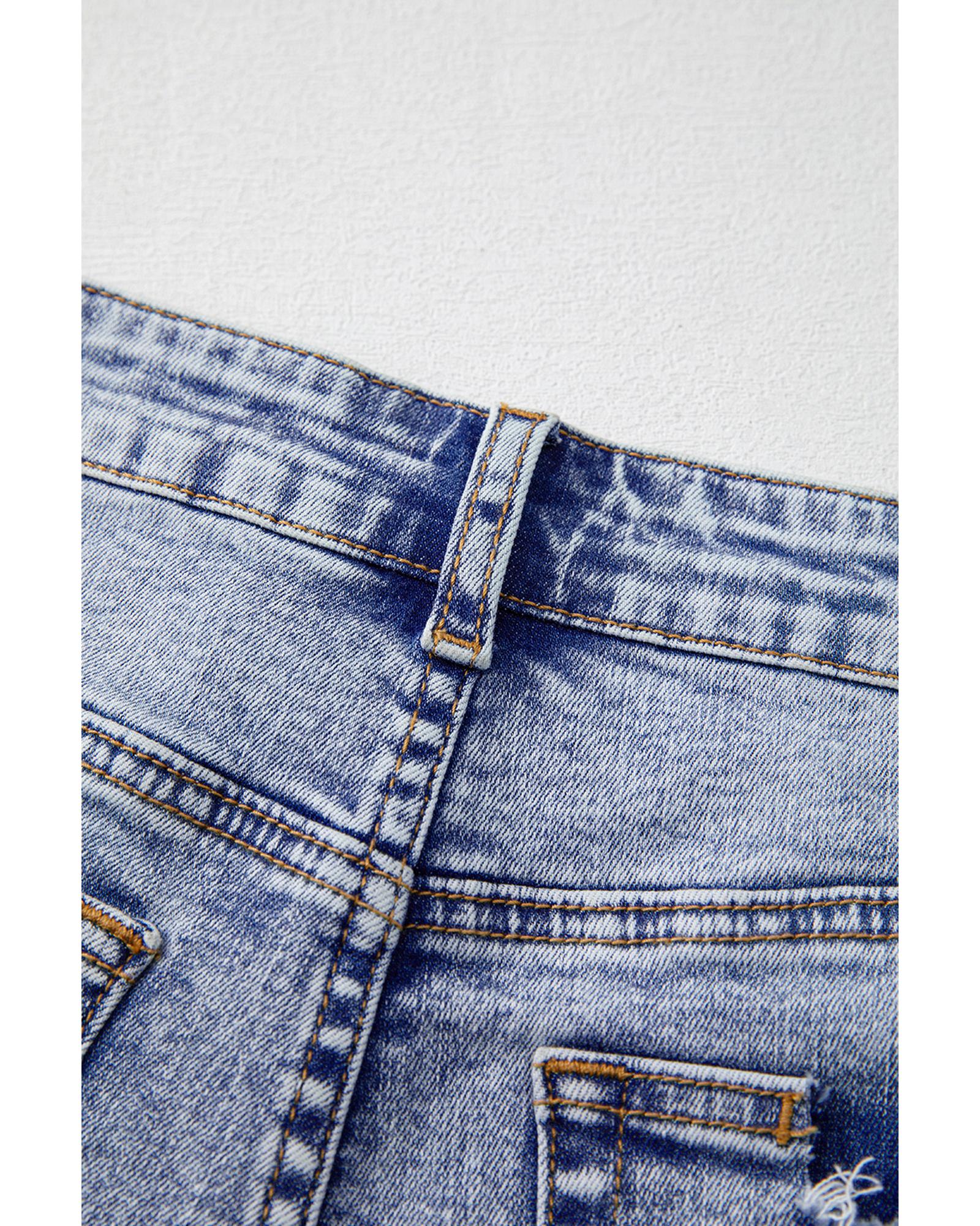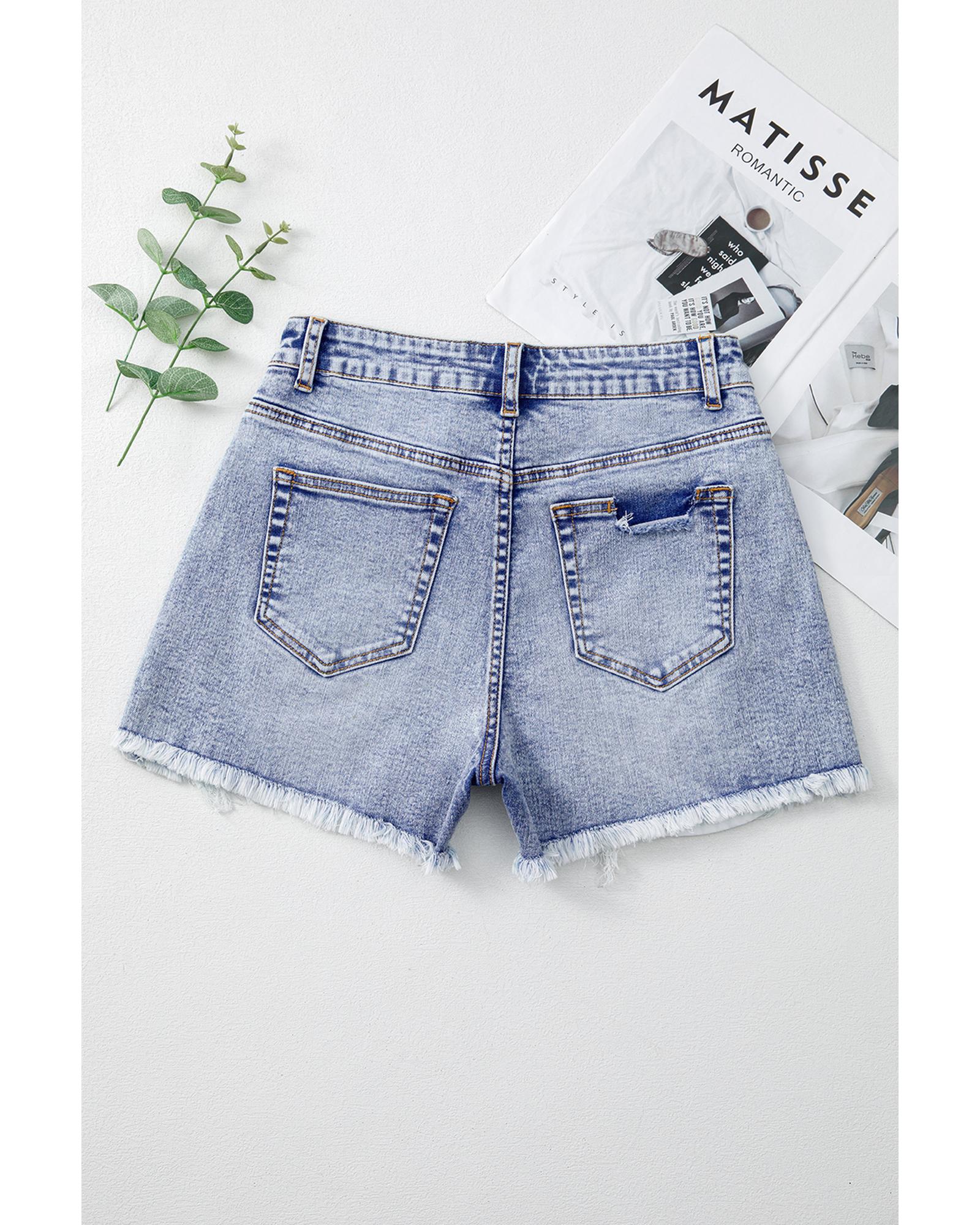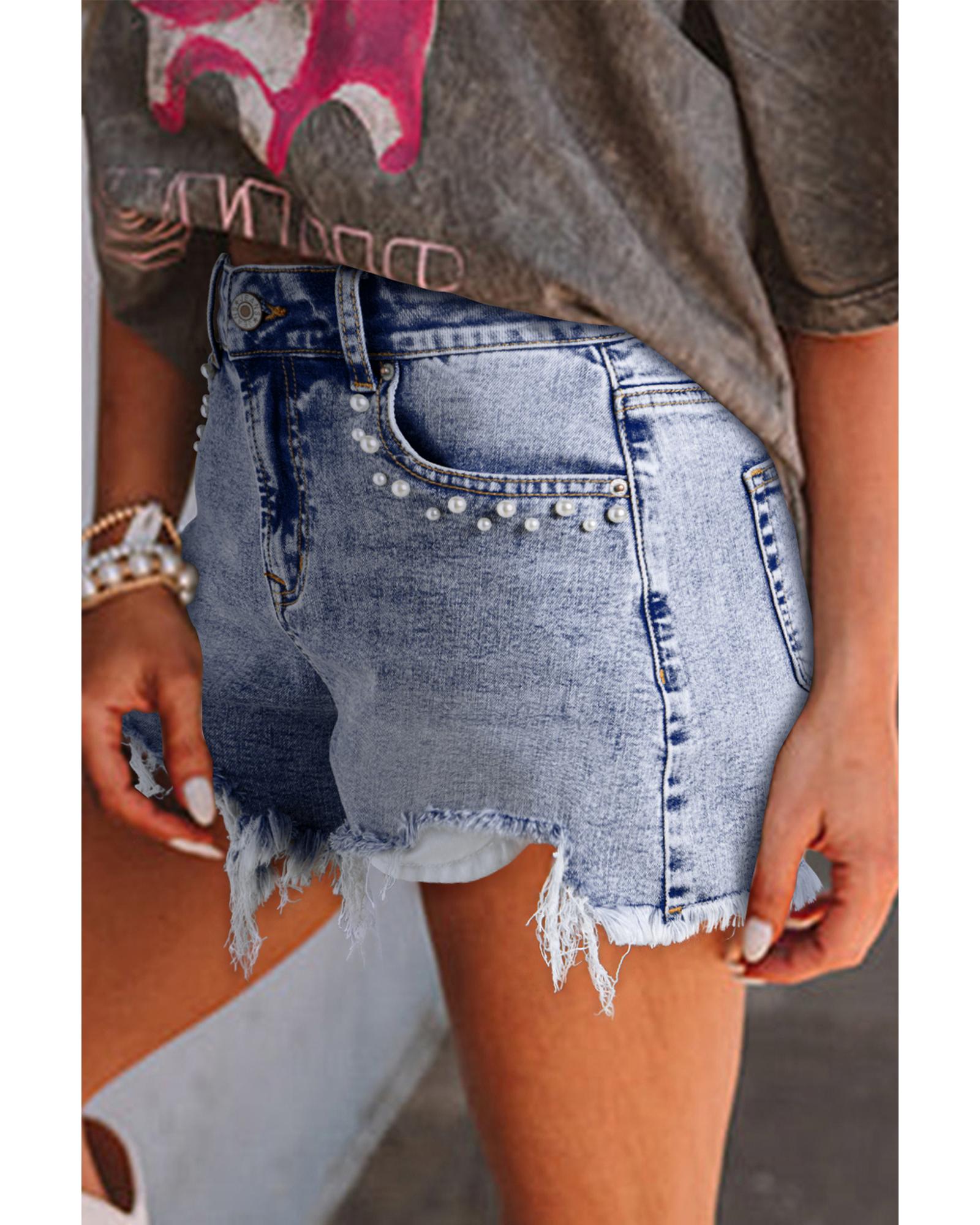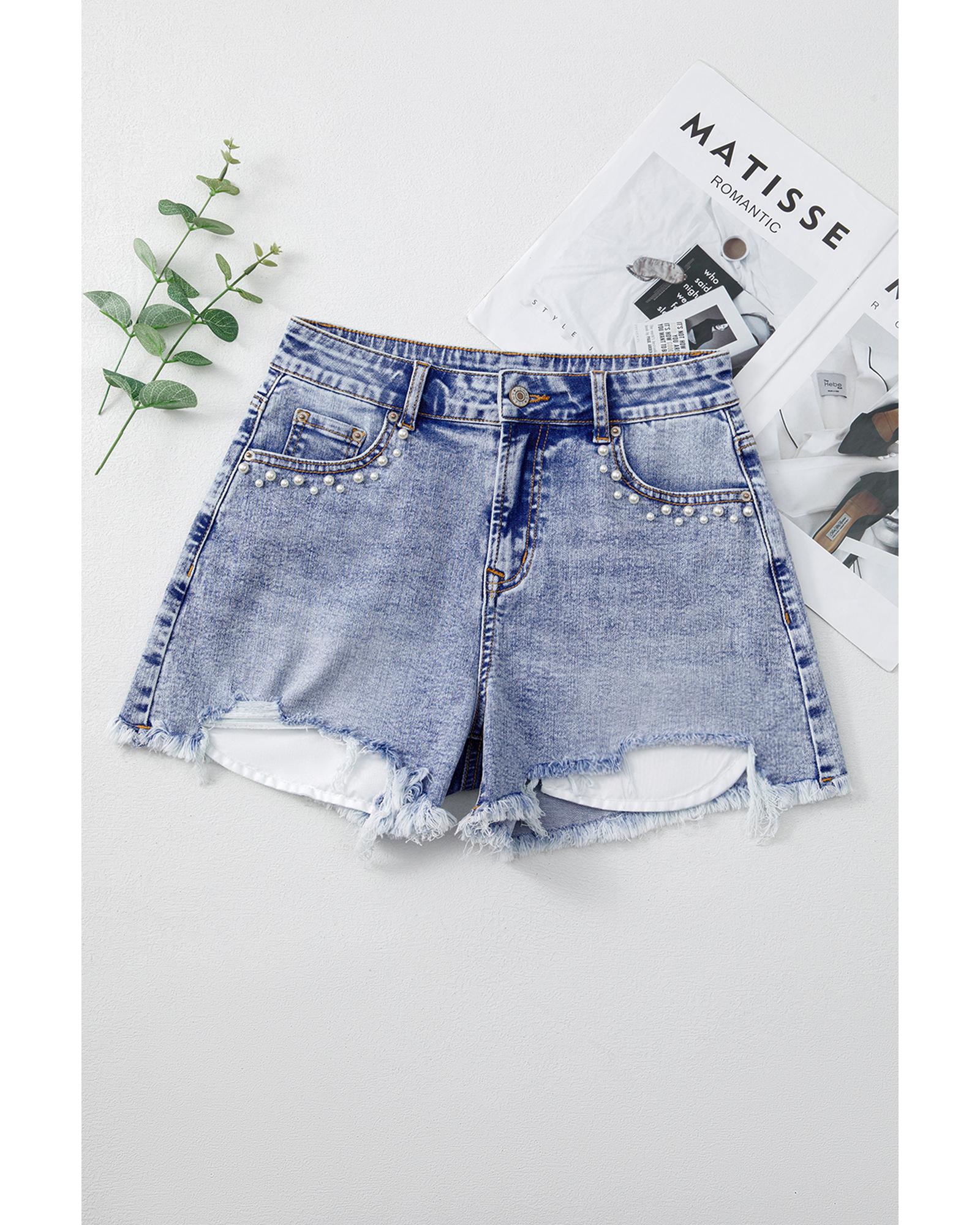Beau Blue Pearl Studded Pockets Raw Hem Denim Shorts – 10 US