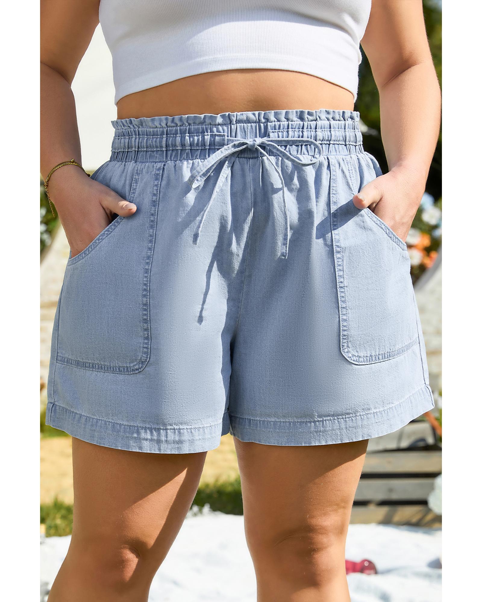Beau Blue Pocketed Drawstring High Waist Plus Size Denim Shorts – 2X