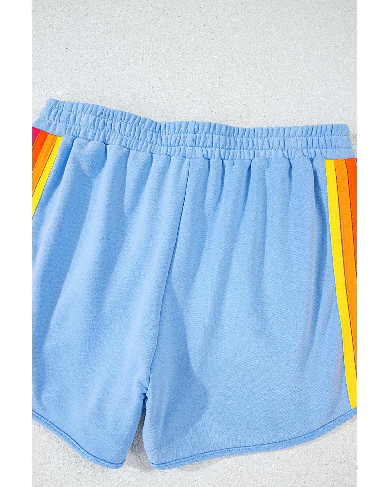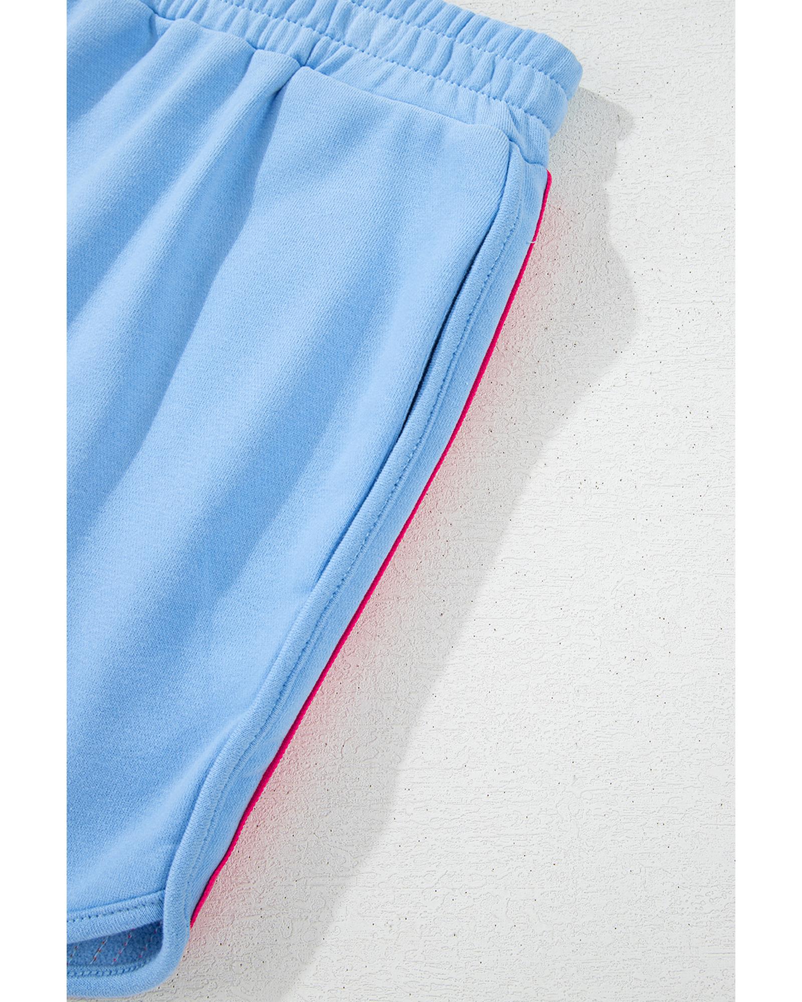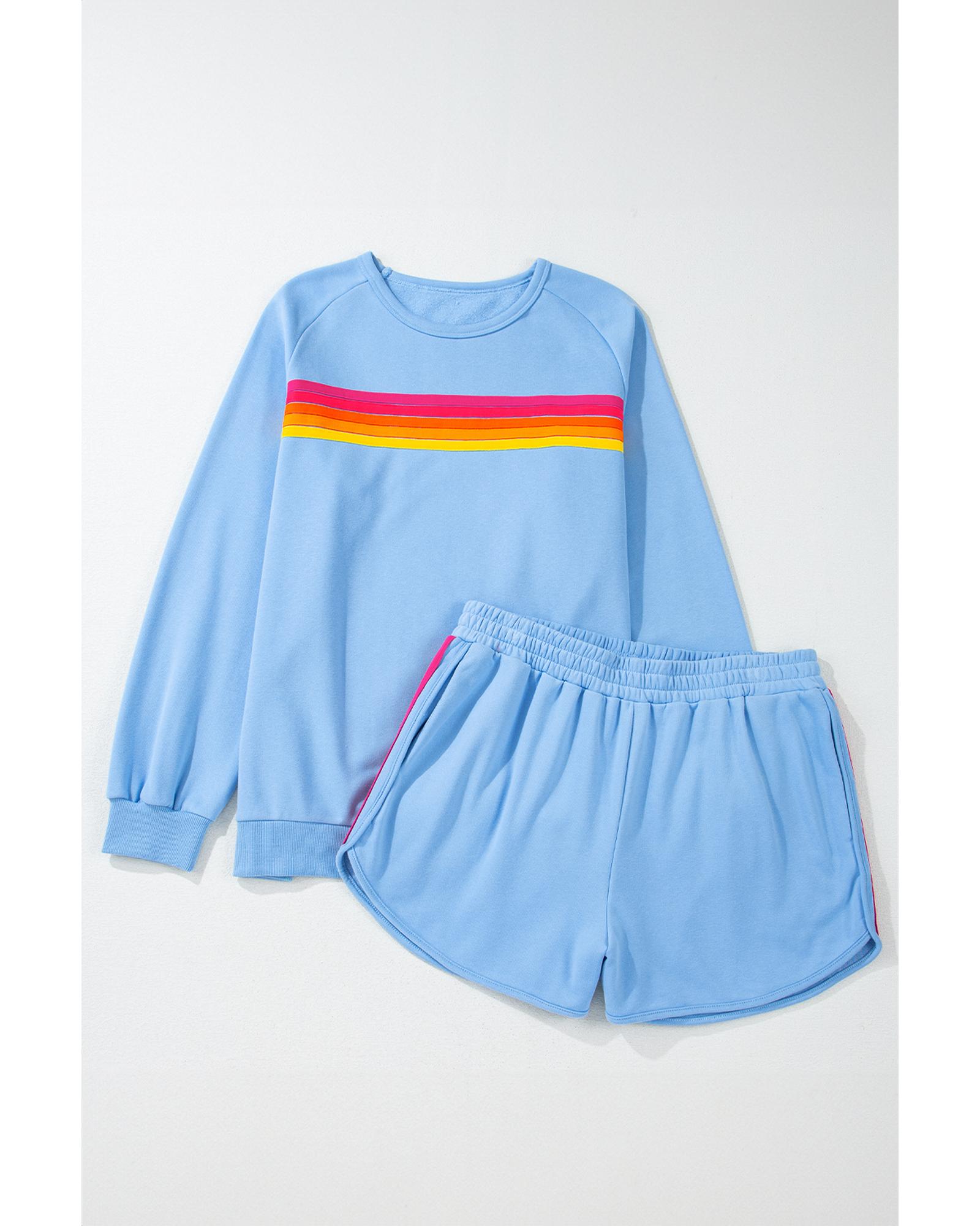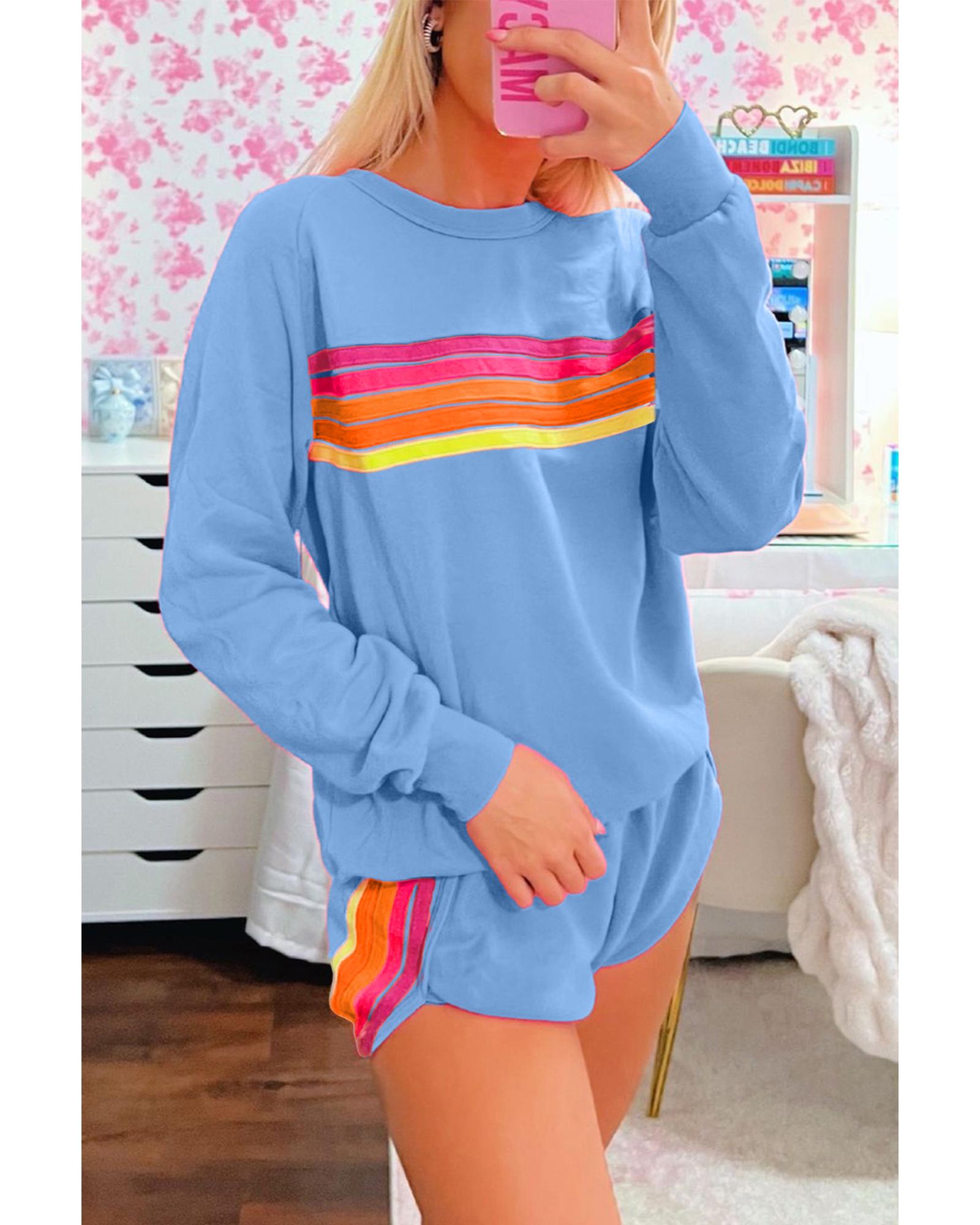 Beau Blue Striped Accent Pullover and Shorts Two Piece Casual Set – M