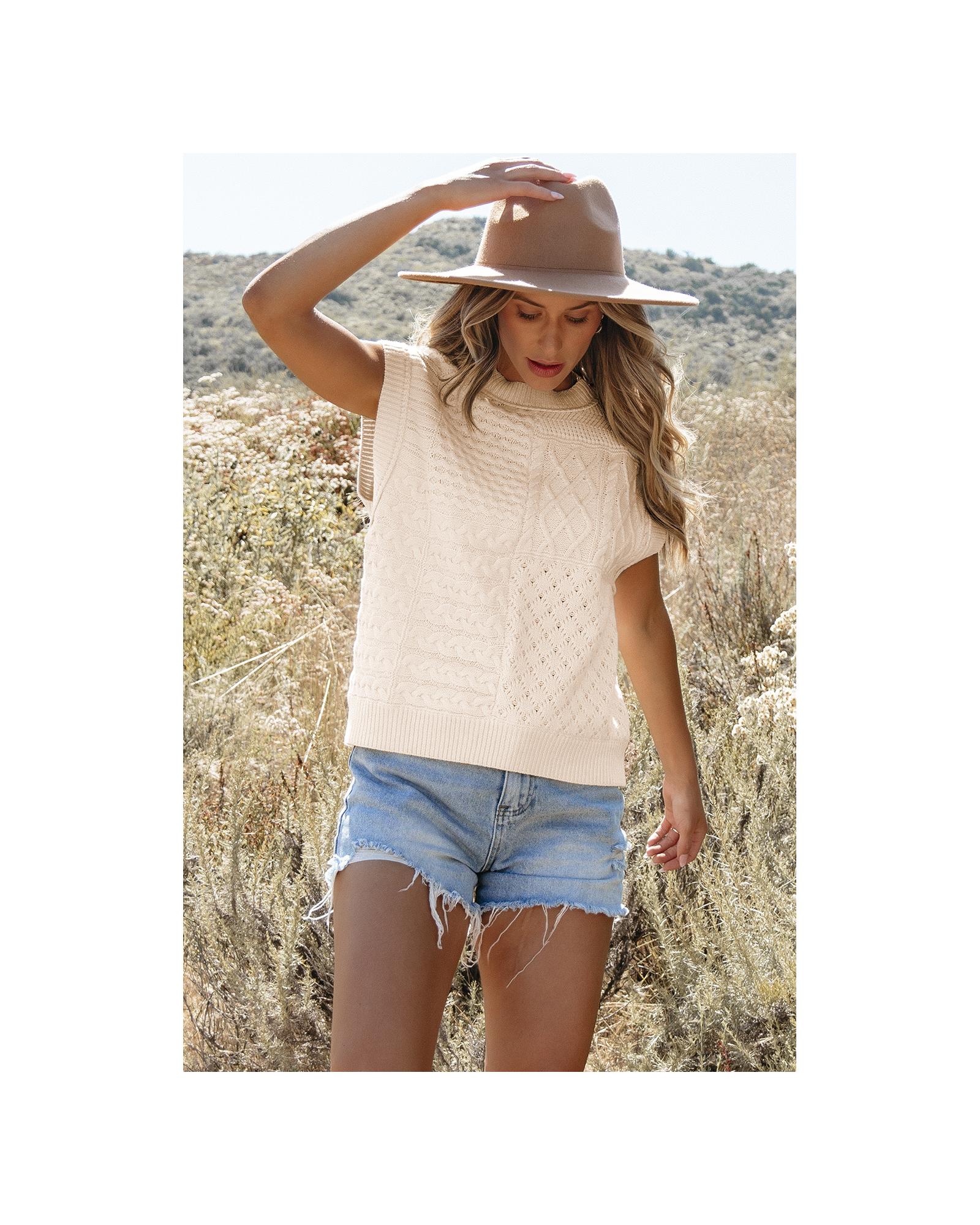 • Cool and classic Beige Cable Knit Dolman Armholes Sweater Tank