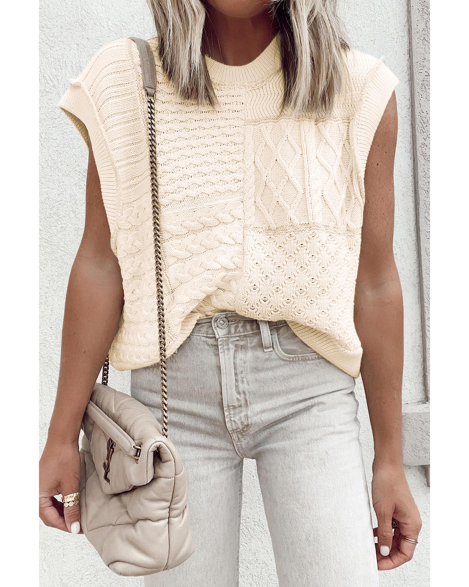 - Cool and classic Beige Cable Knit Dolman Armholes Sweater Tank