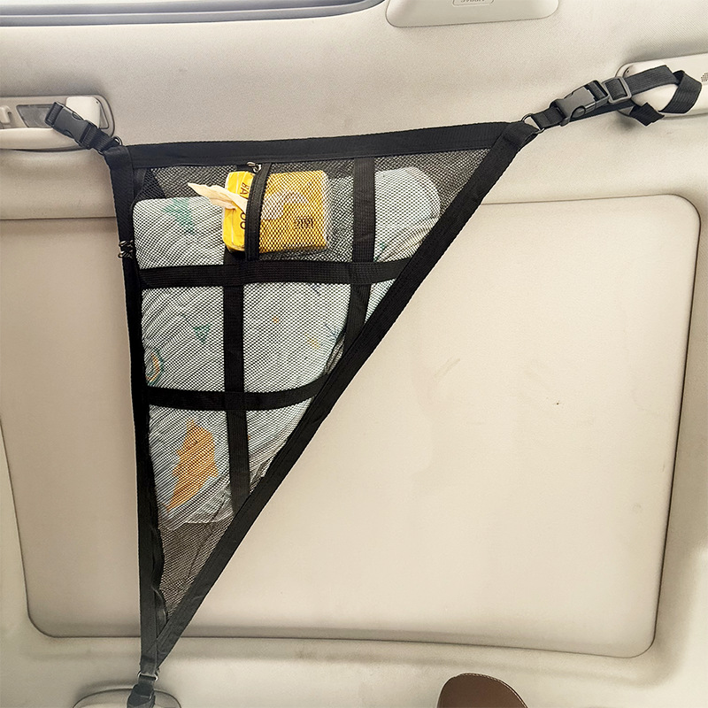 Maximize your car’s storage space with this innovative triangular storage net. Perfect for organizing lightweight items, this ceiling-mounted storage net is designed for convenience and easy access while driving. With its adjustable straps and reinforced mesh pockets, it is a must-have for road trips, daily commutes, and keeping your car clutter-free.