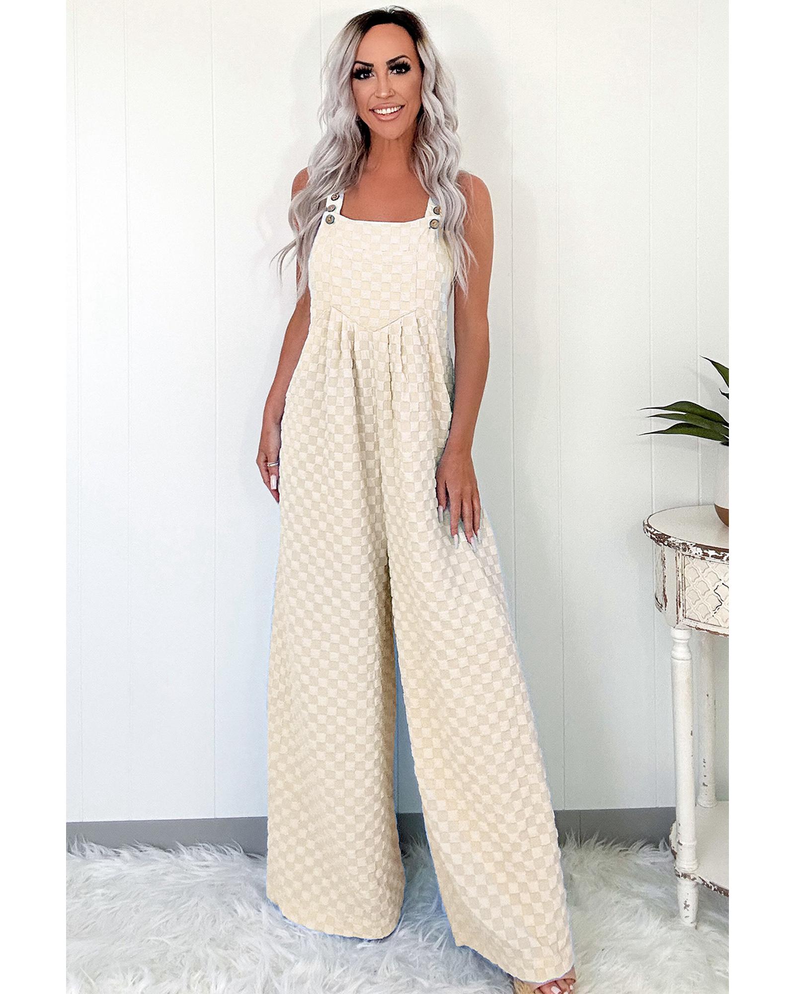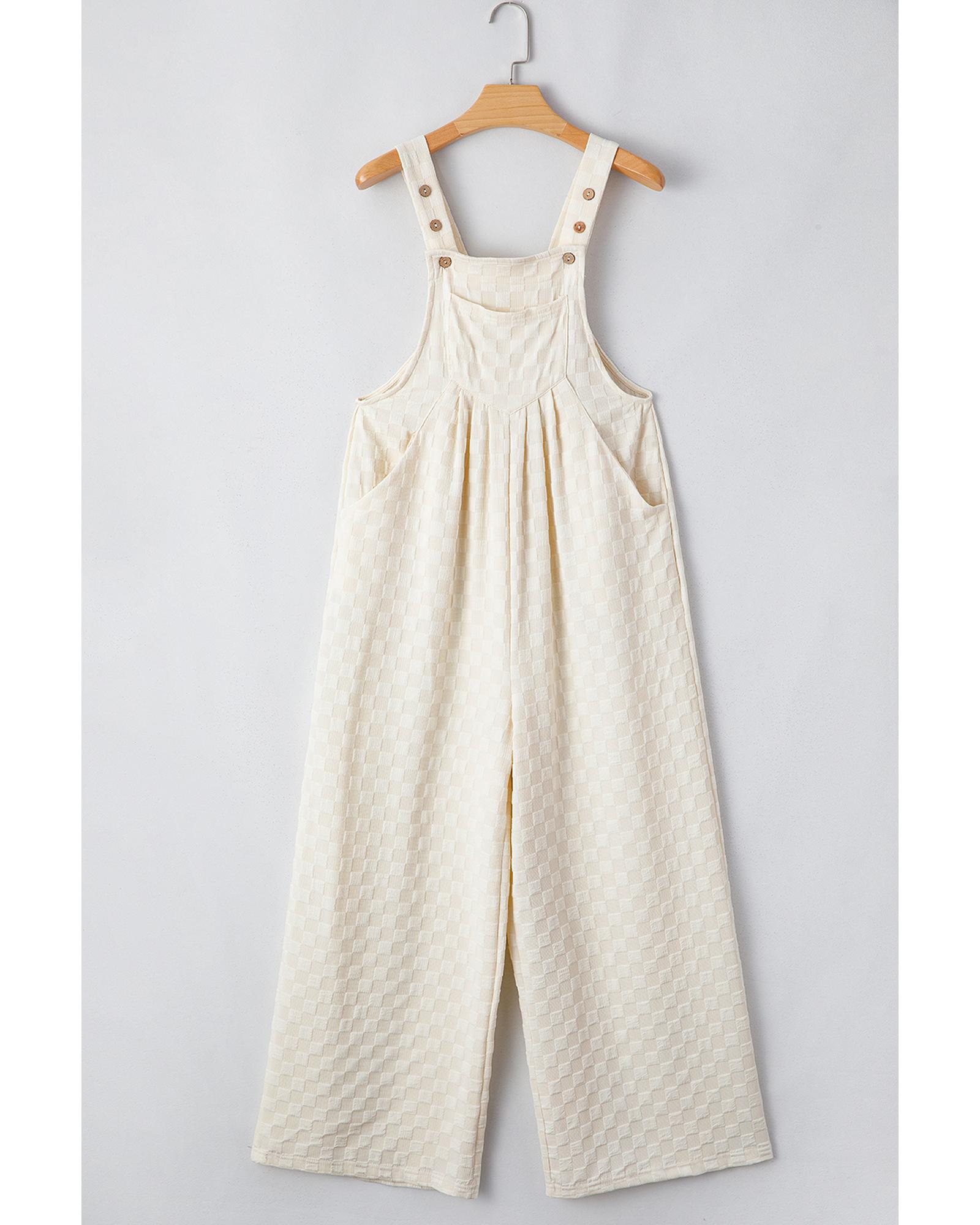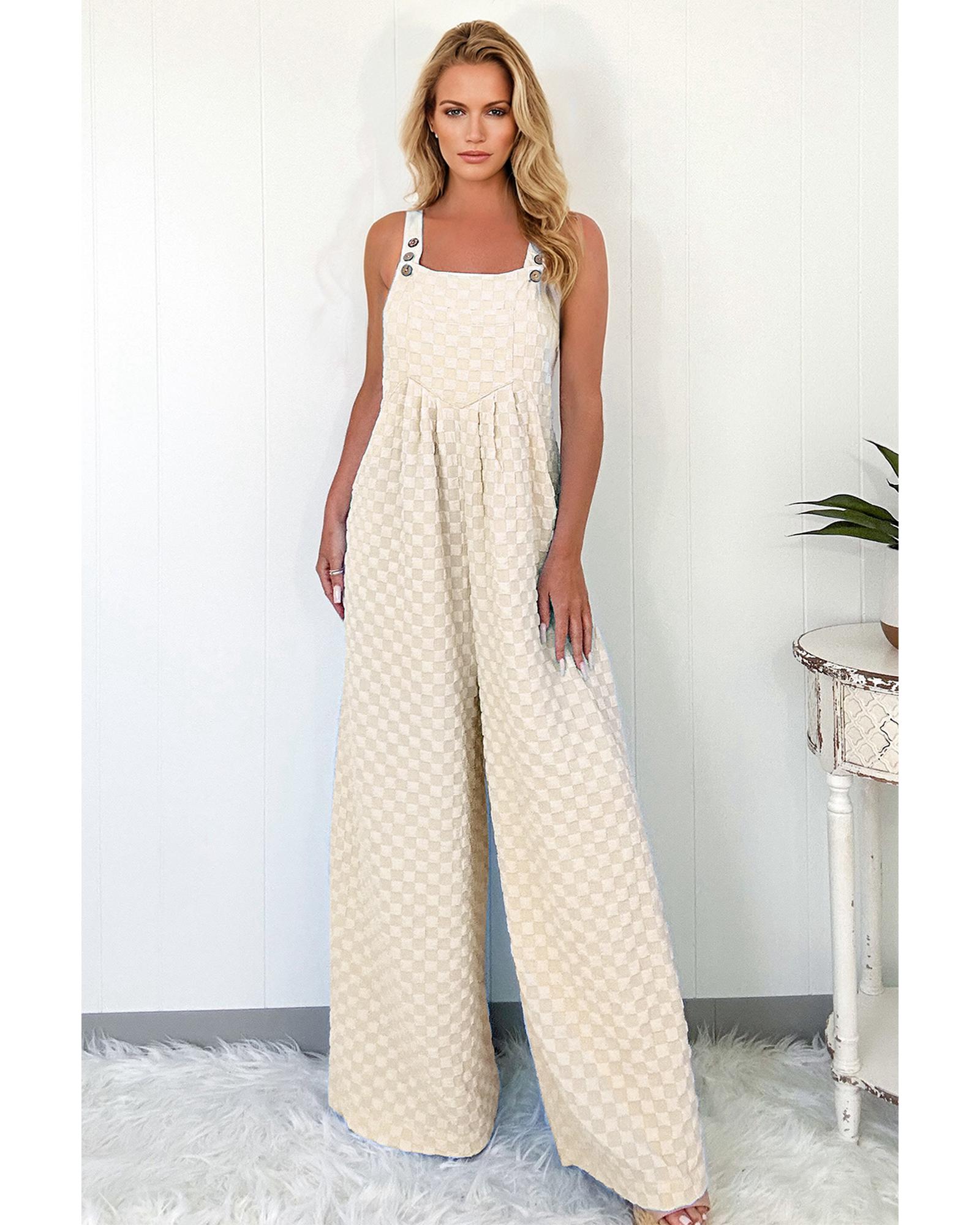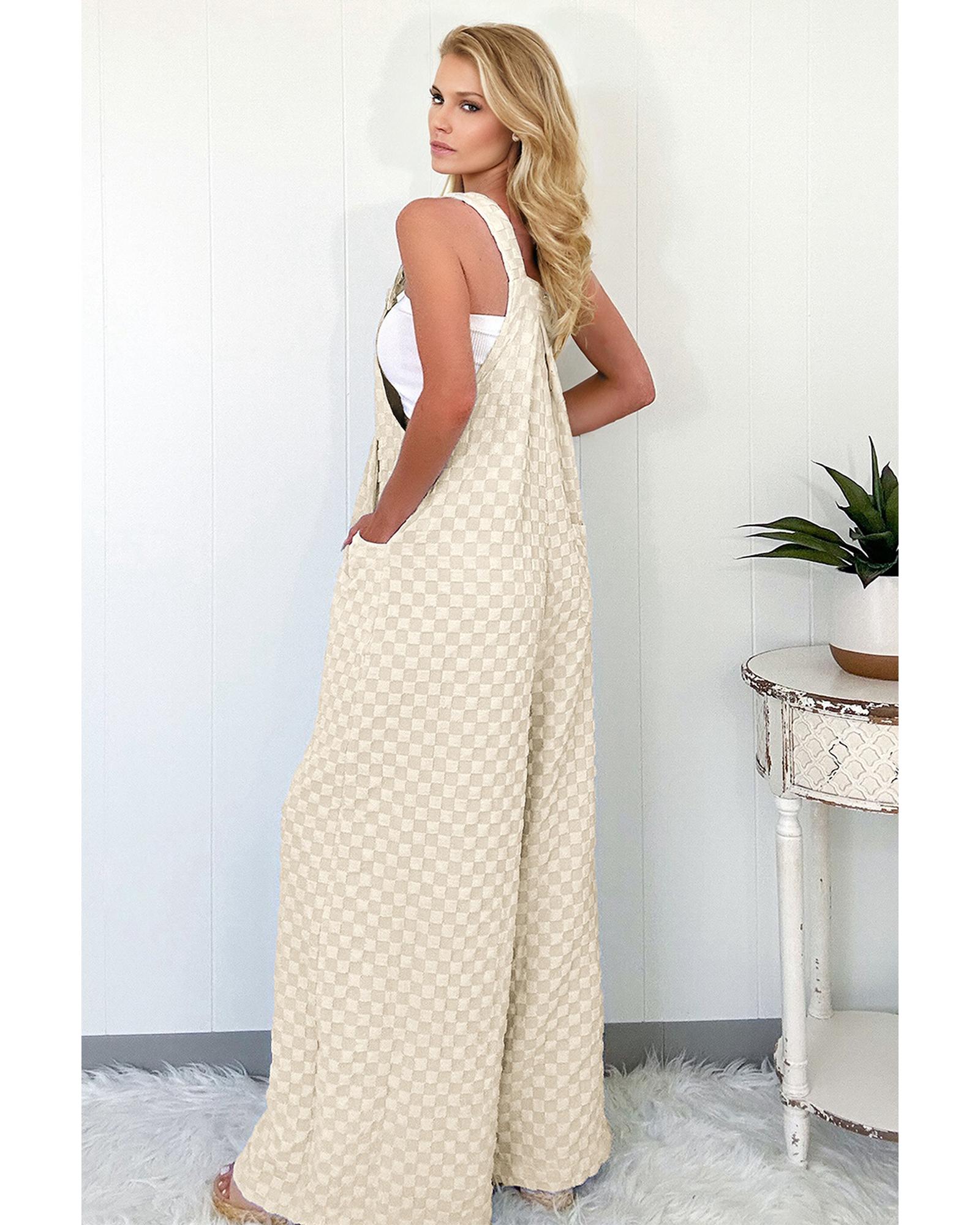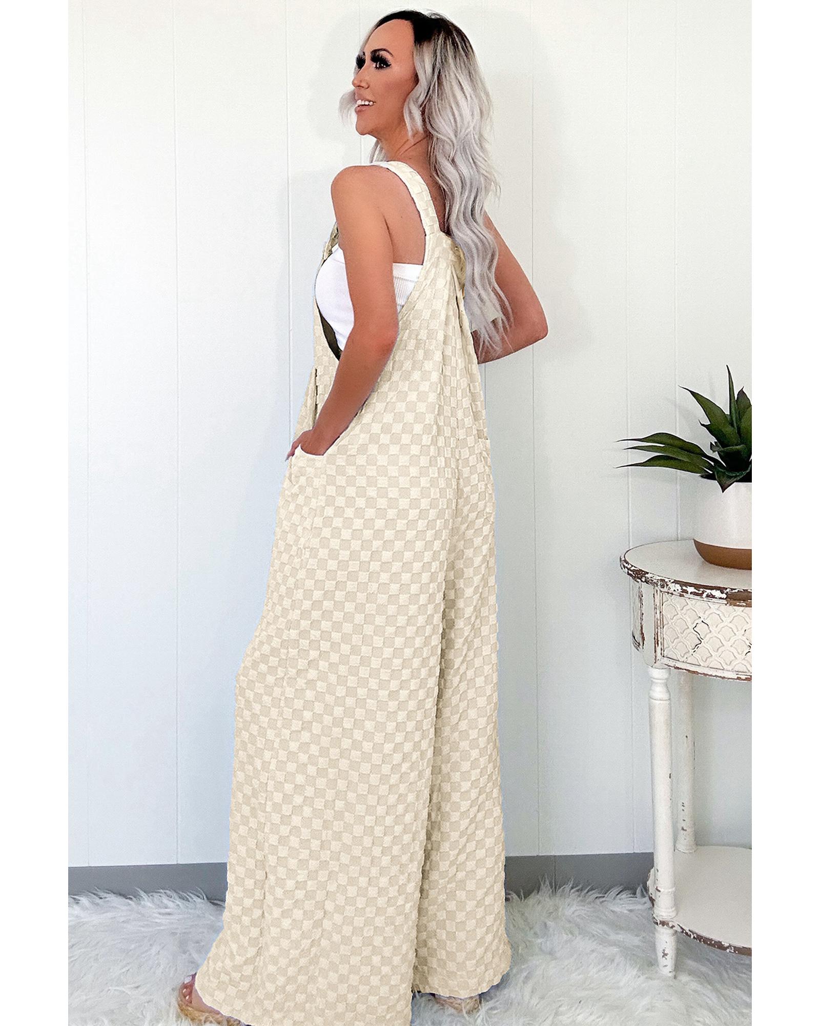 Beige Checkered Pocketed High Waist Wide Leg Overall – XL