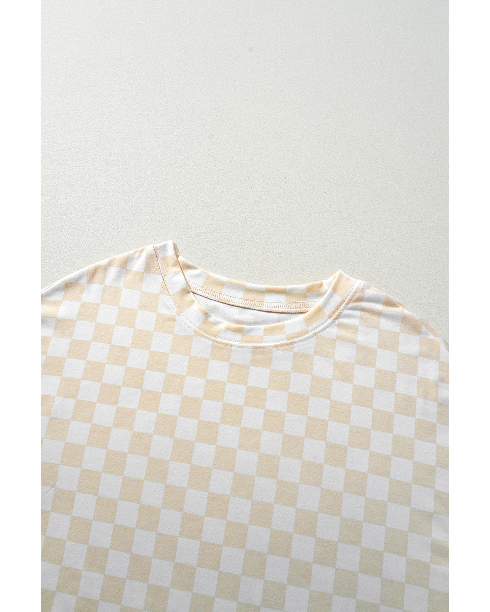 Beige Checkered Print Long Sleeve Top and Pants Lounge Set – M