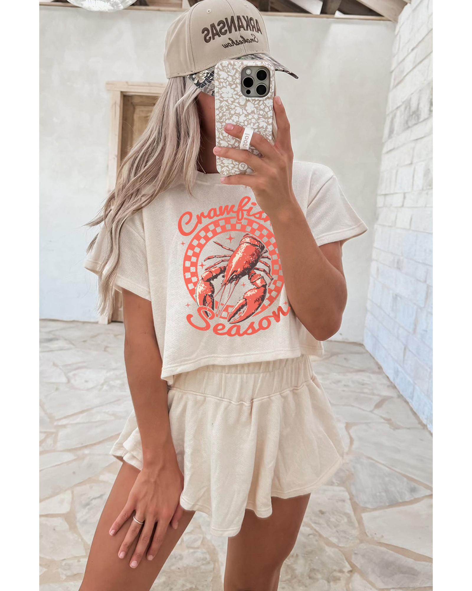 Beige Crawfish Season Print T Shirt and High Waist Ruffle Skorts Set – XL