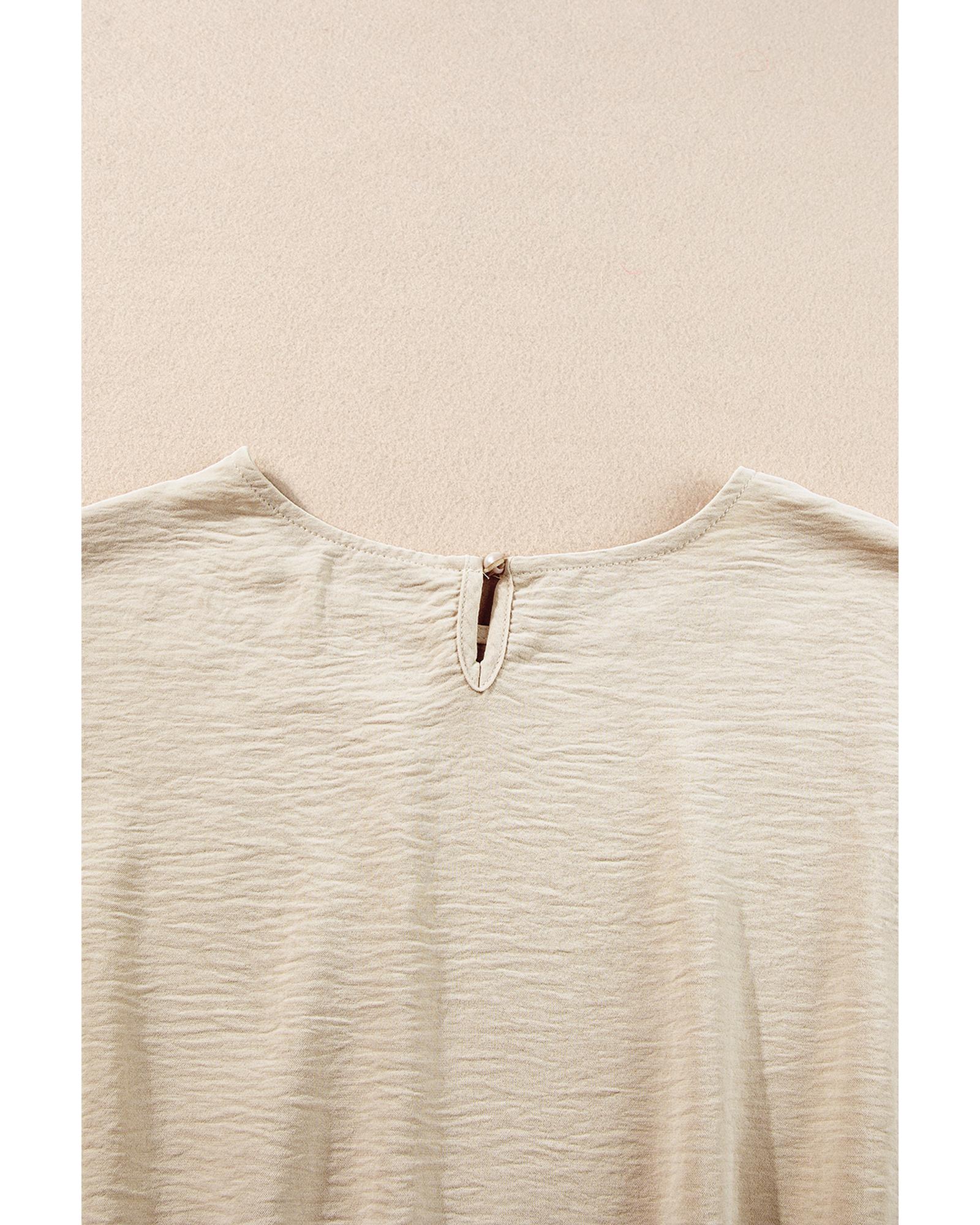 Beige Crinkled Elastic Hem Crop Tee and Wide Leg Pants Set – L