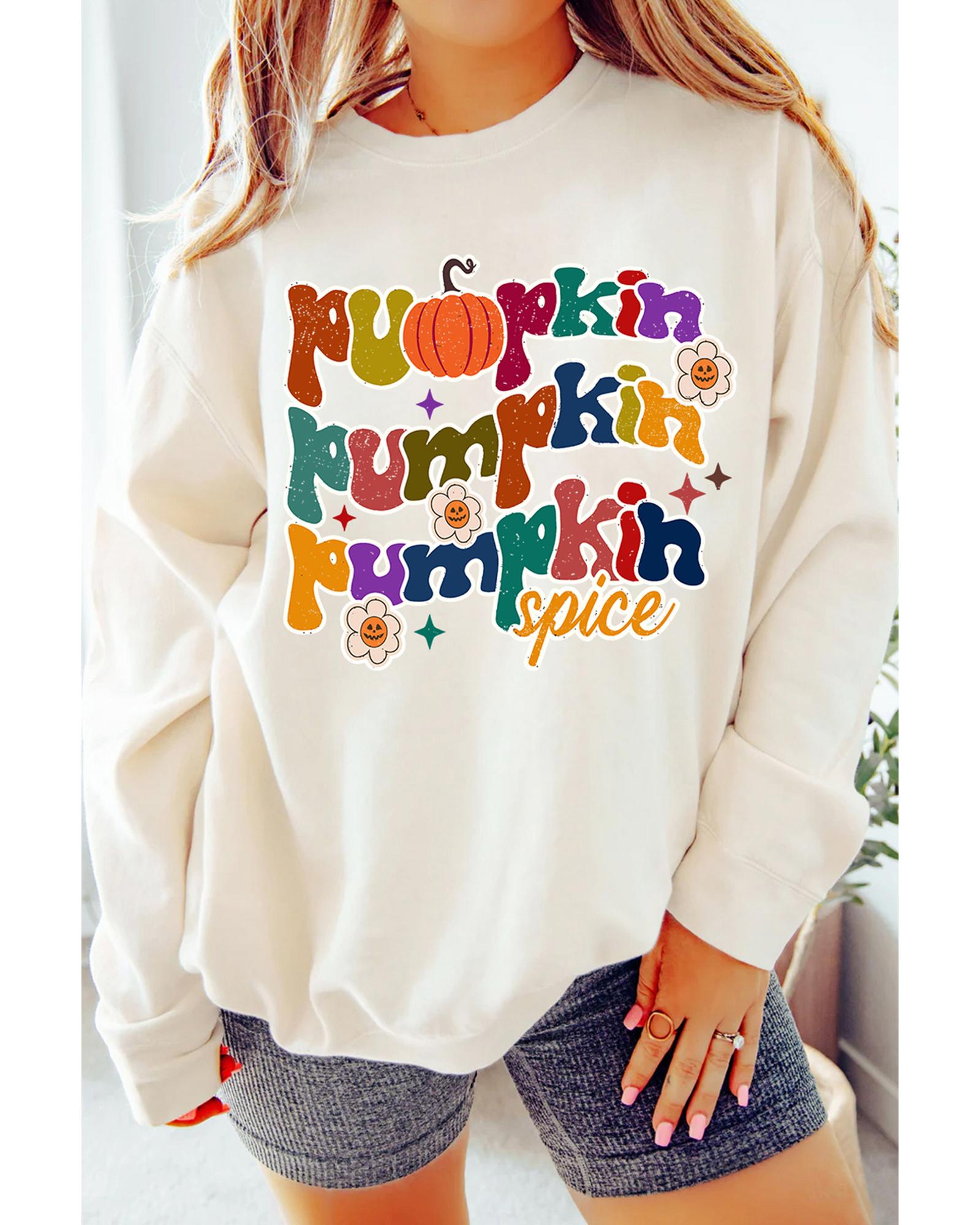 - Beige Cute Pumpkin Spice Graphic Thanksgiving Sweatshirt