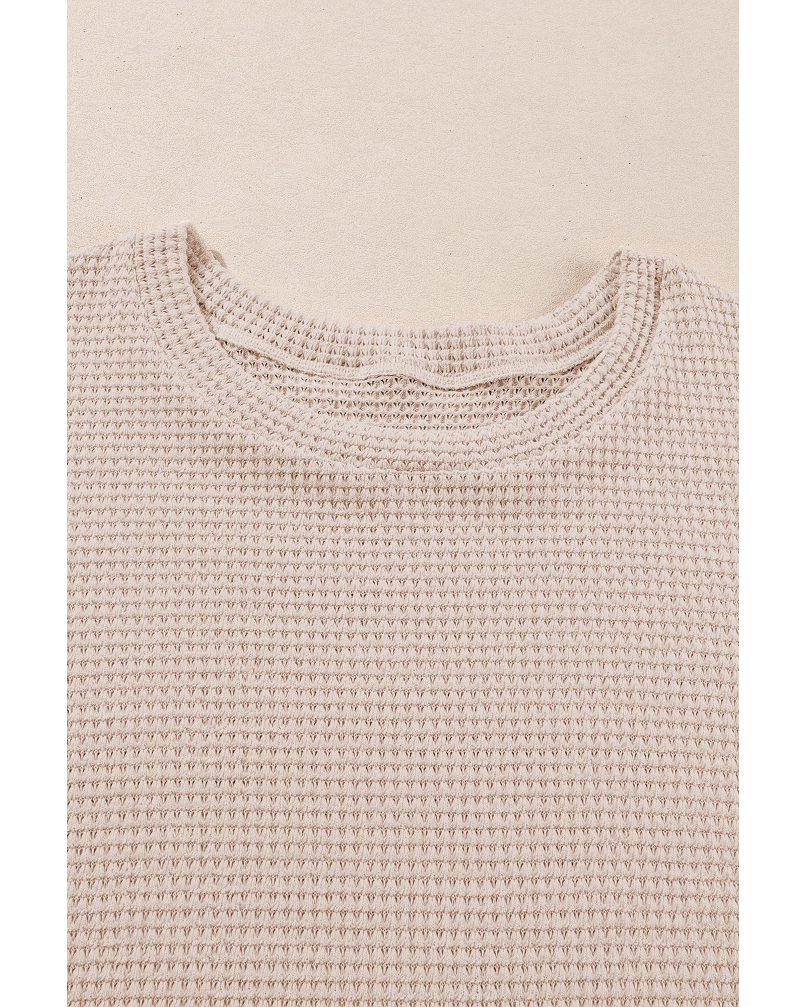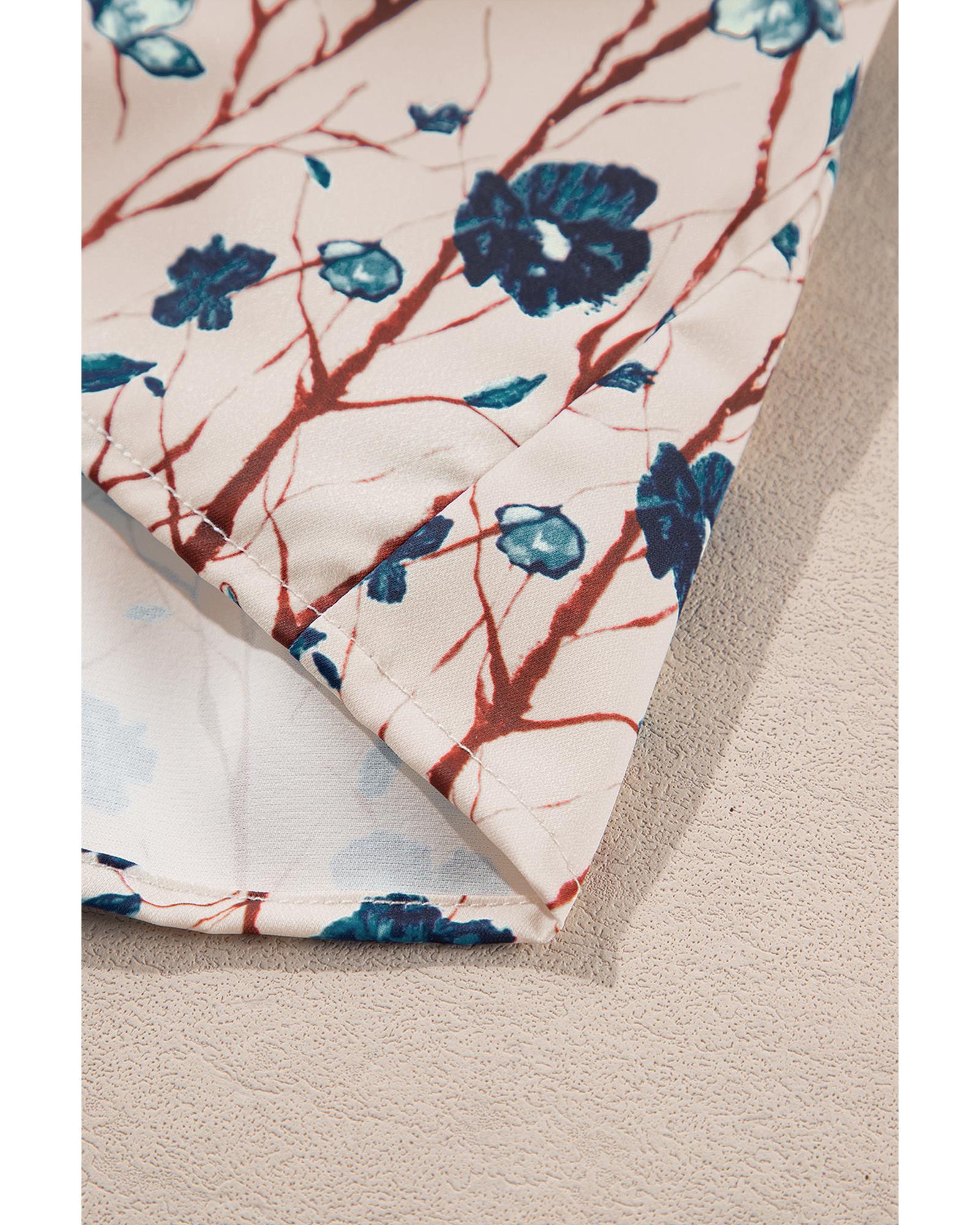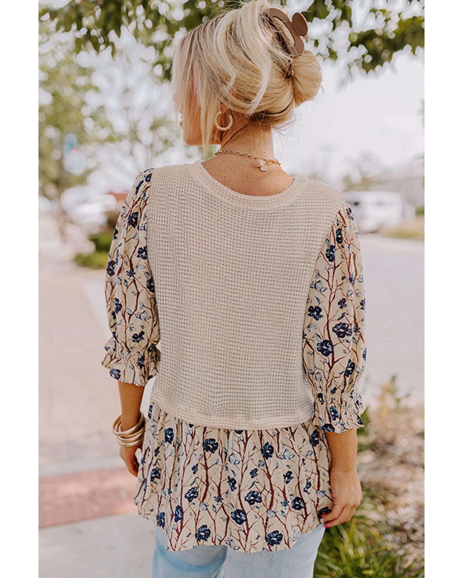 Beige Faux Two Piece Knit Patchwork Floral Print Plus Size Top – 2X