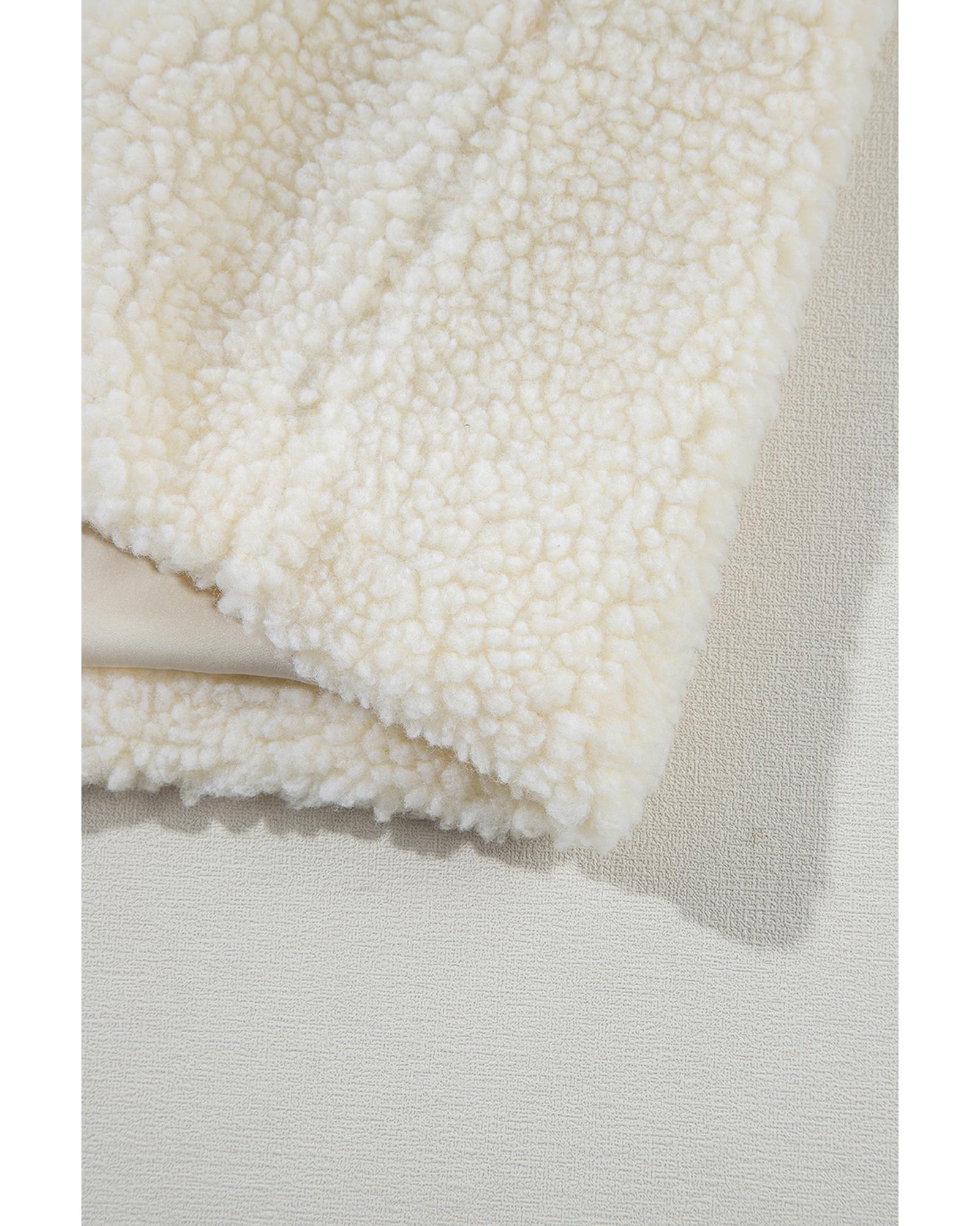 Beige Fleece Zip Up Drawstring Hooded Pocketed Jacket - XL