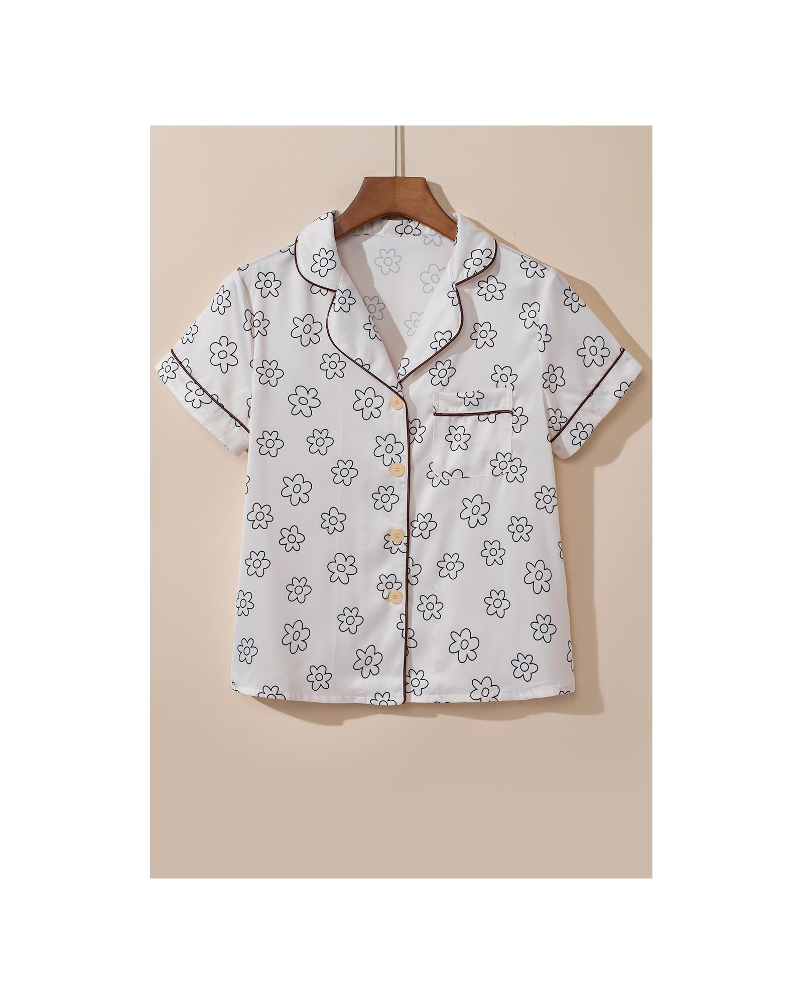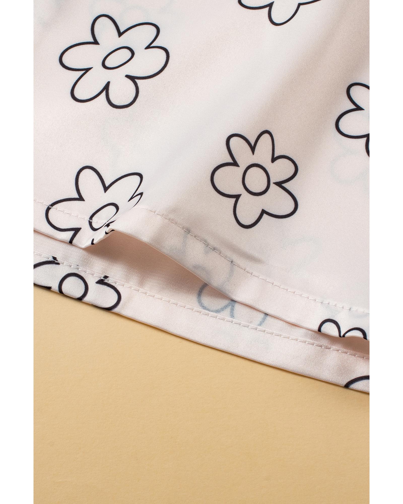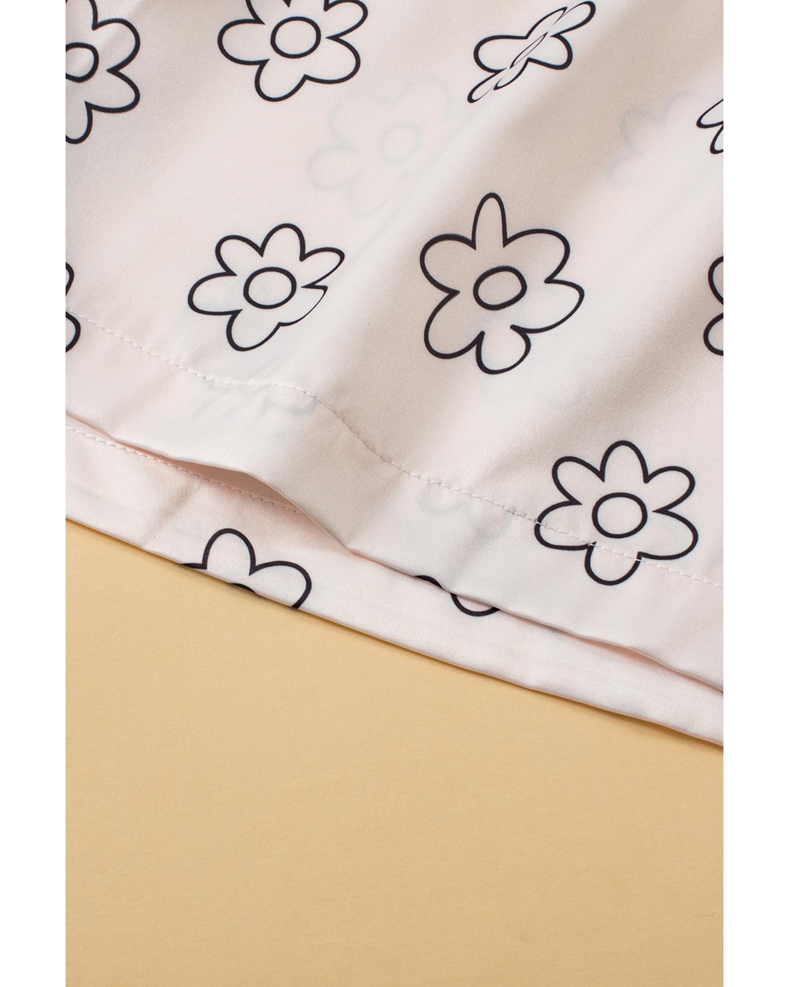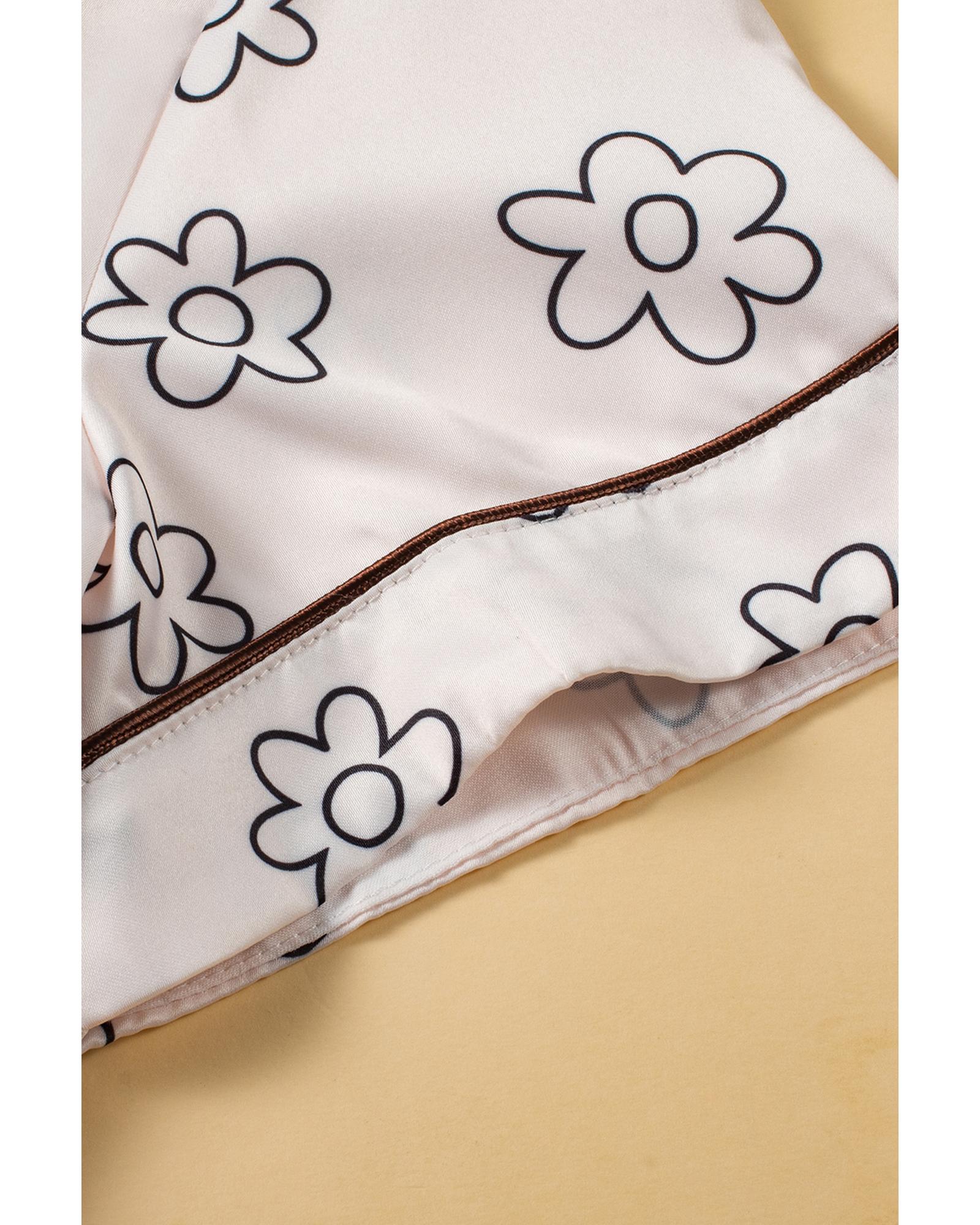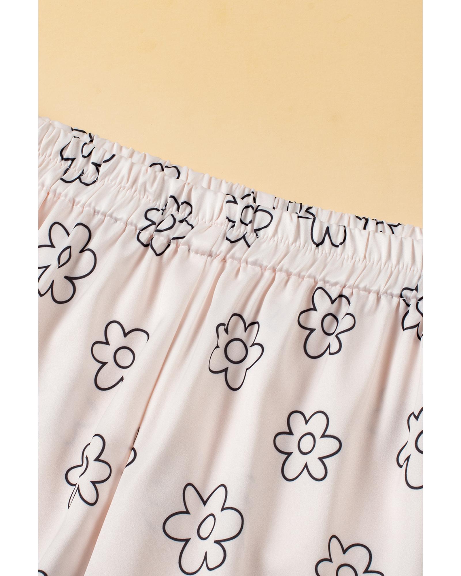 Beige Floret Printed Pajama Shorts Set – XL