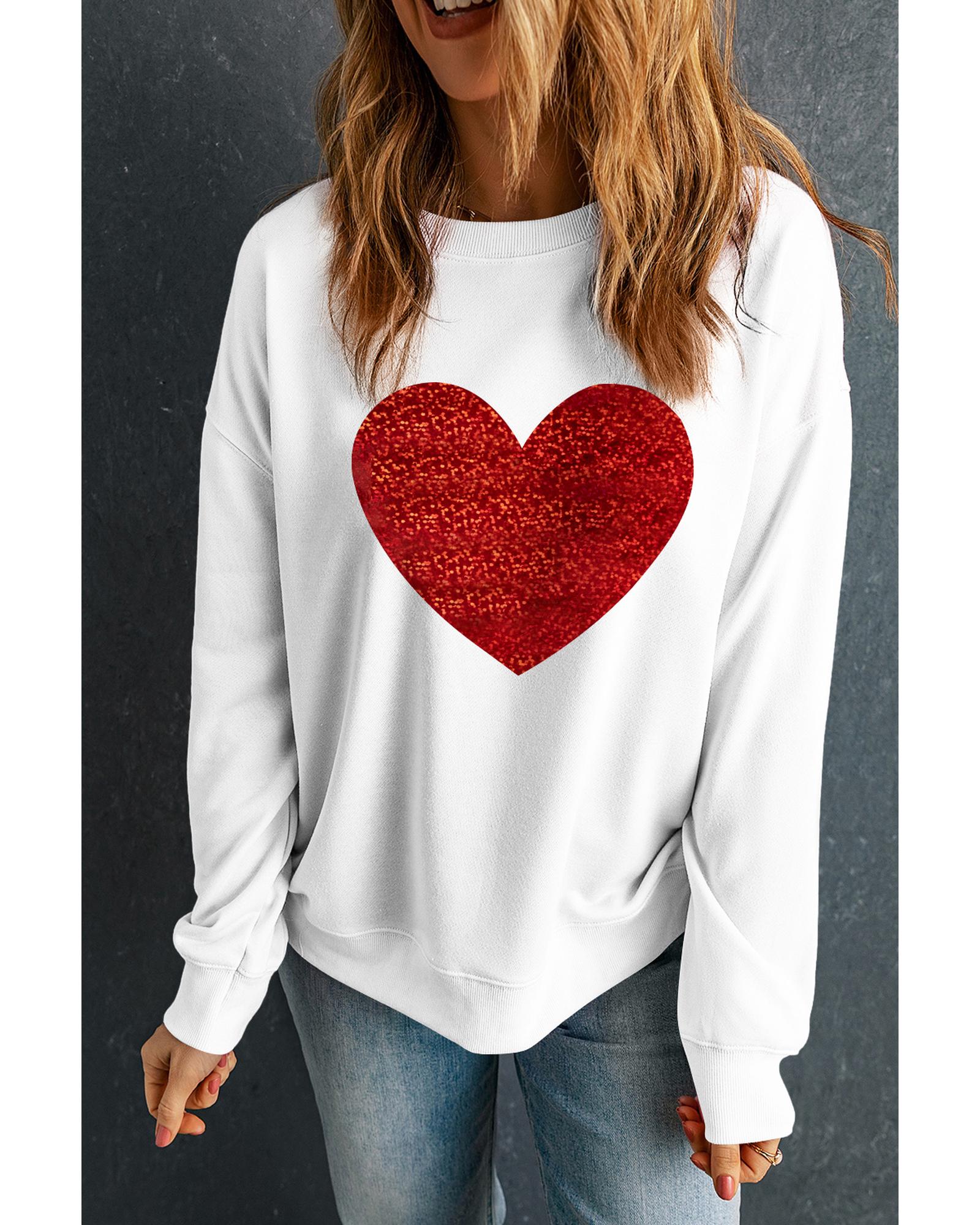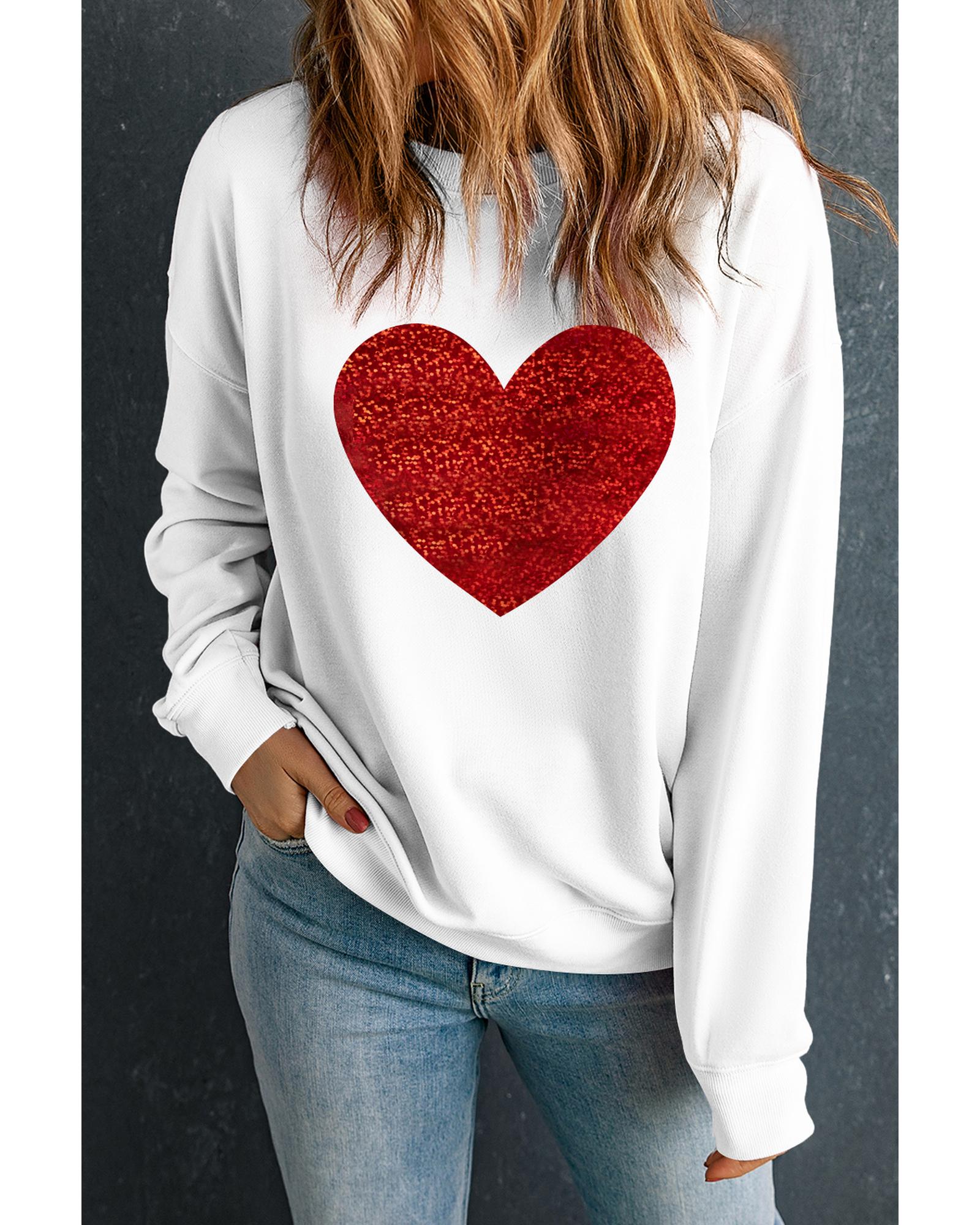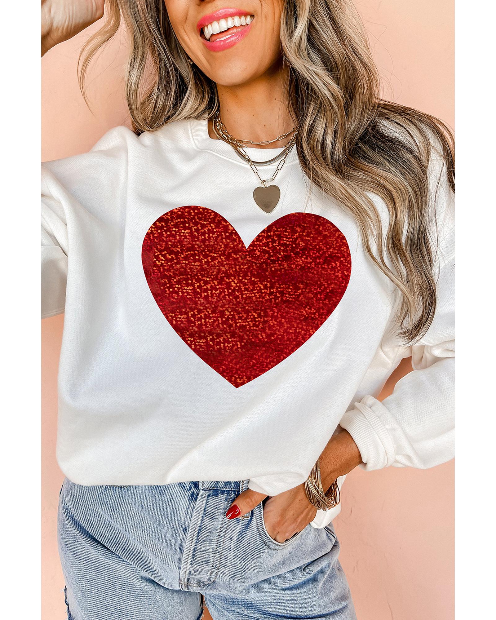 - Beige Glitter Valentine Heart Shape Graphic Sweatshirt