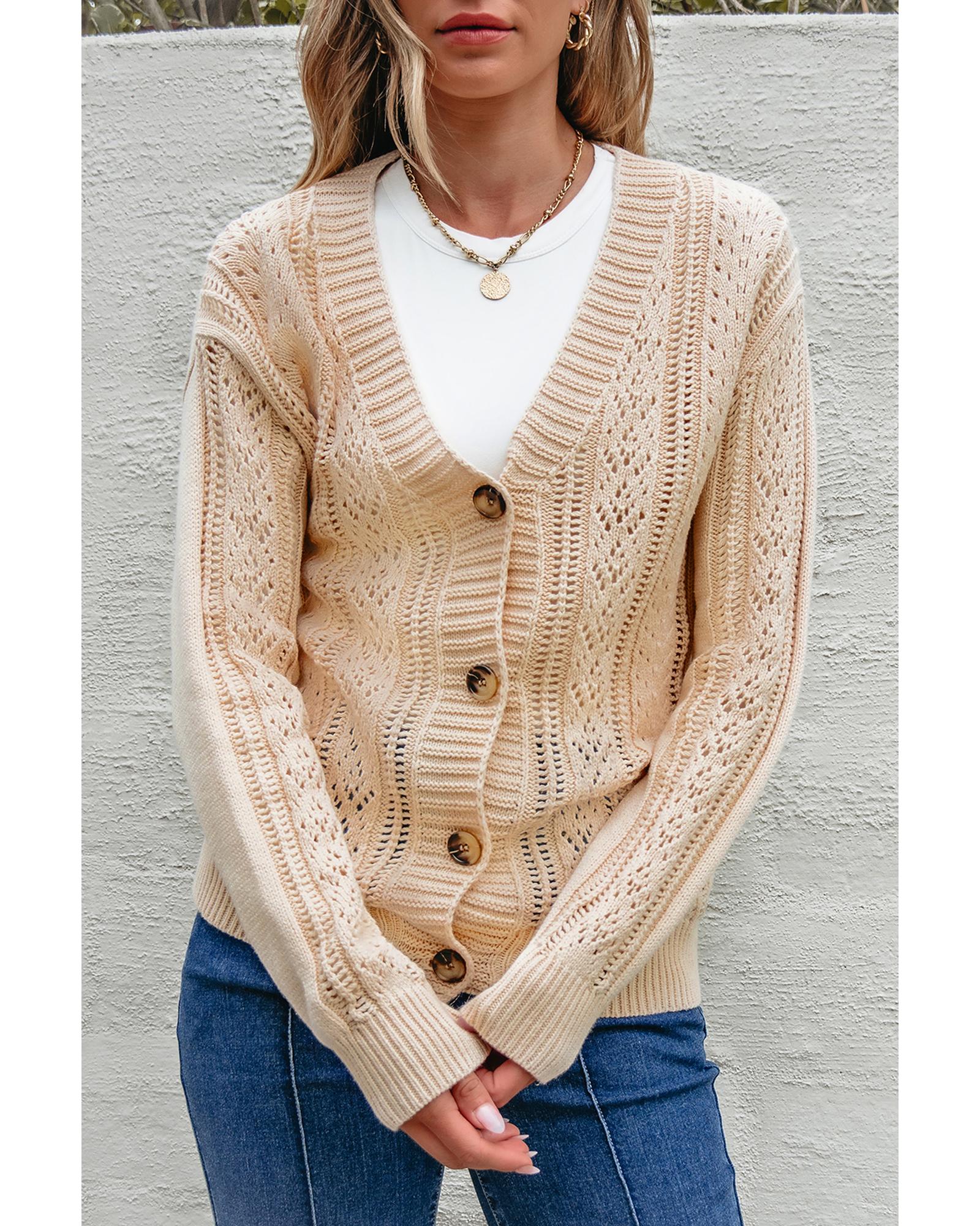 Beige Open Knit Drop Shoulder Sweater Cardigan – S