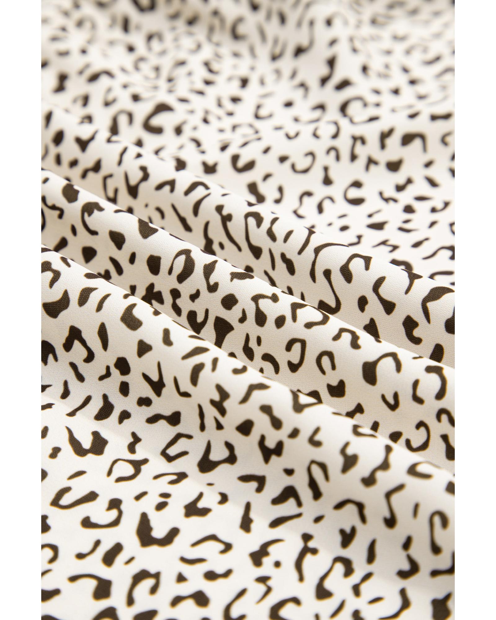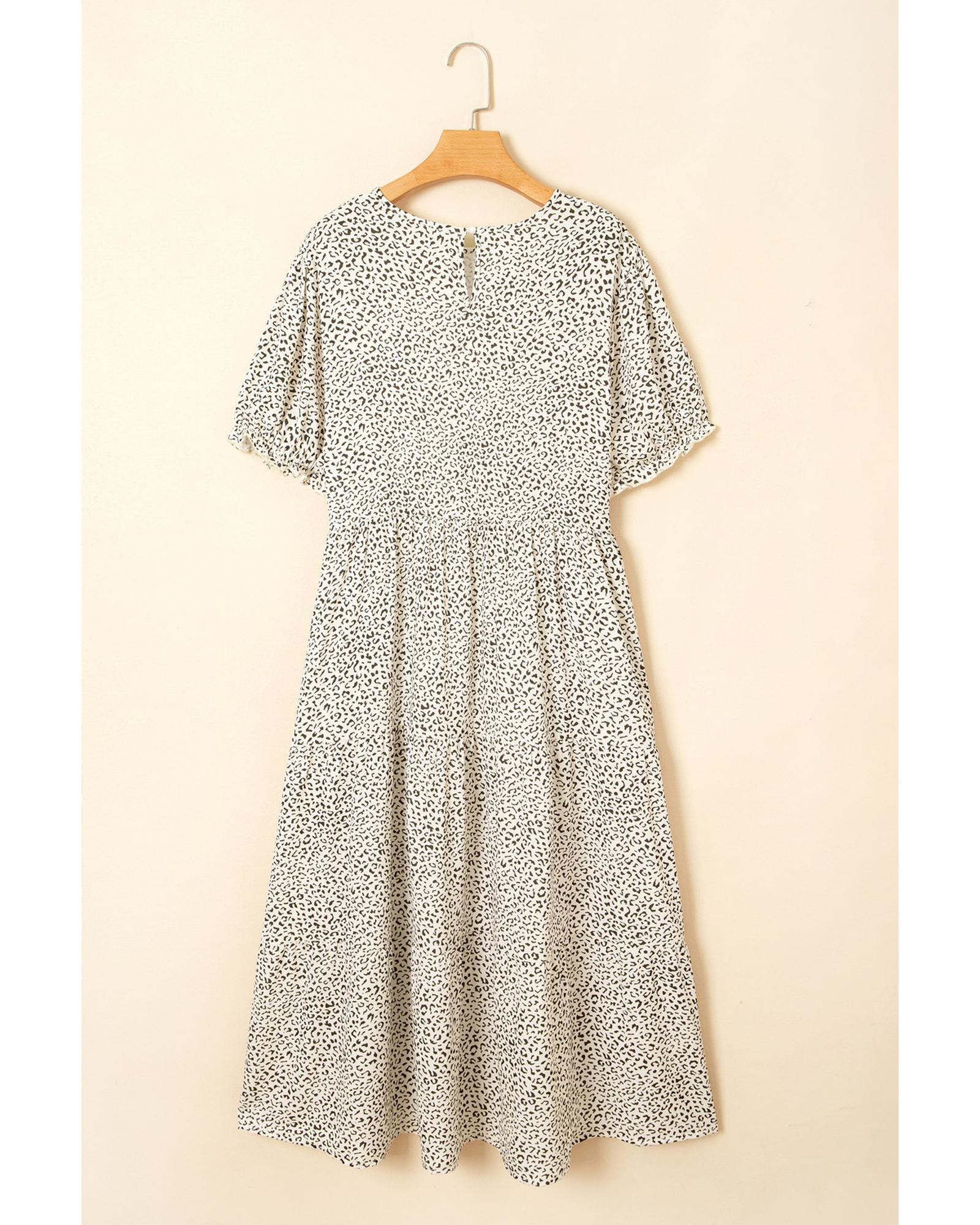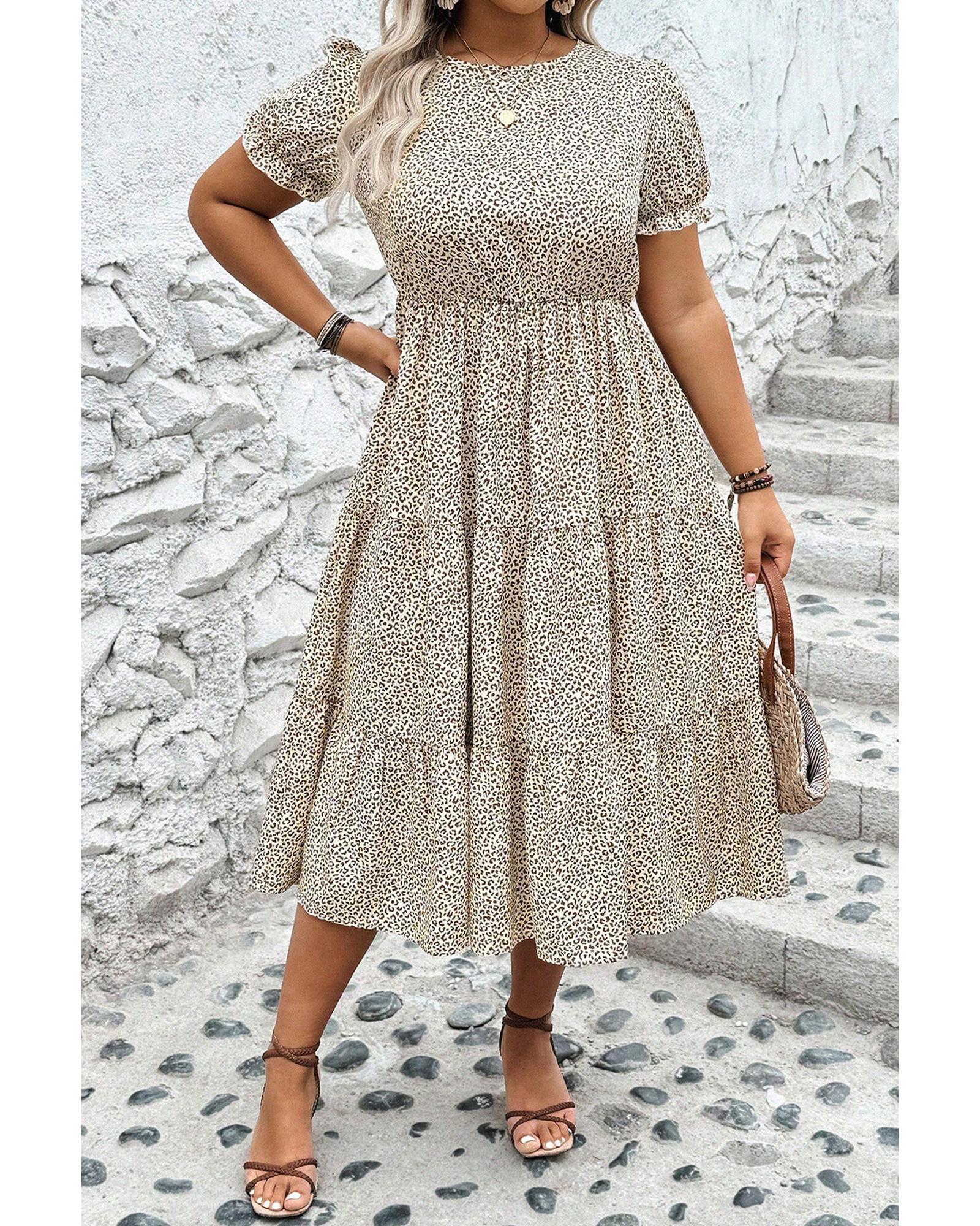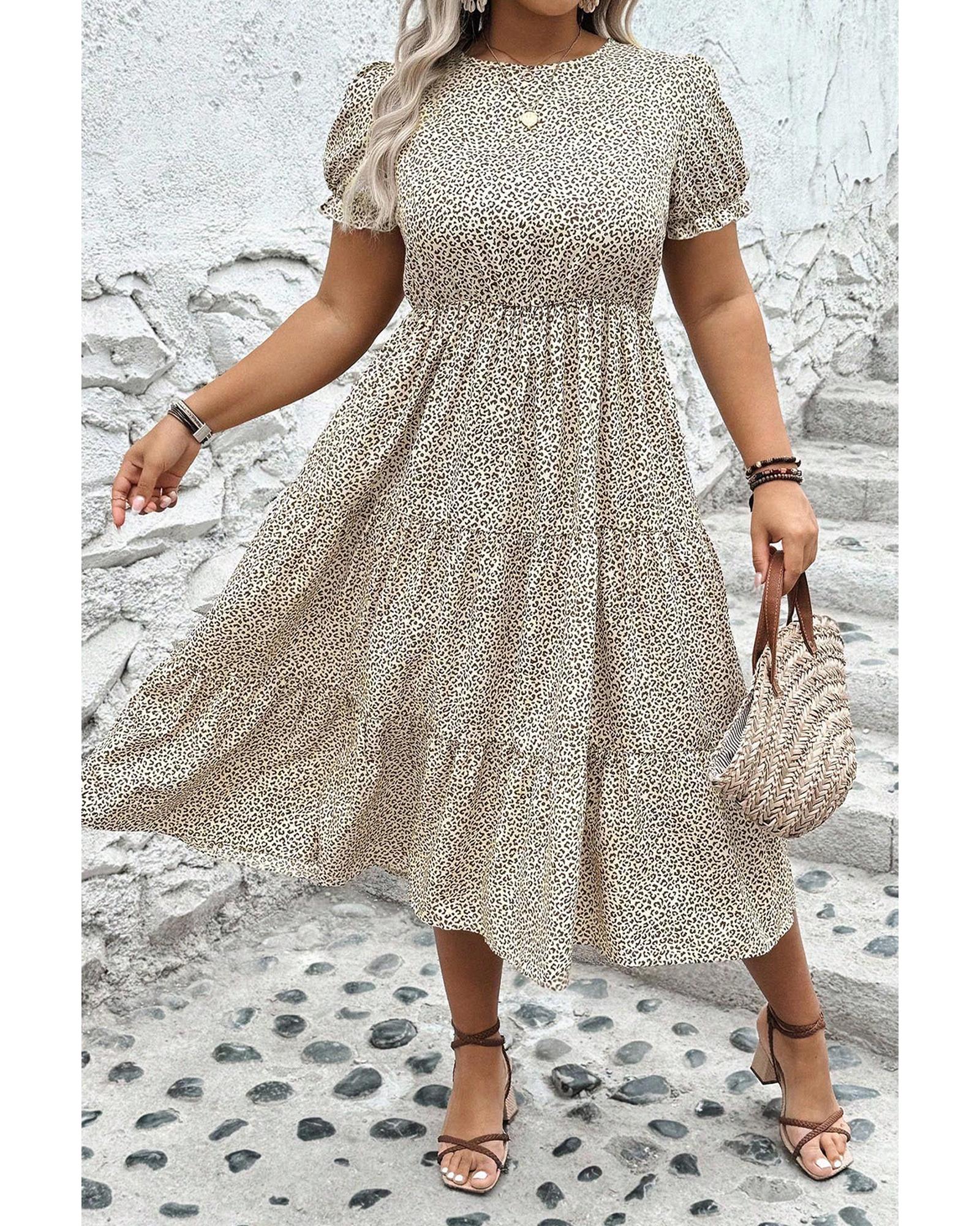Beige Plus Size Leopard Print Frill Trim Short Sleeve Flared Dress – 4X