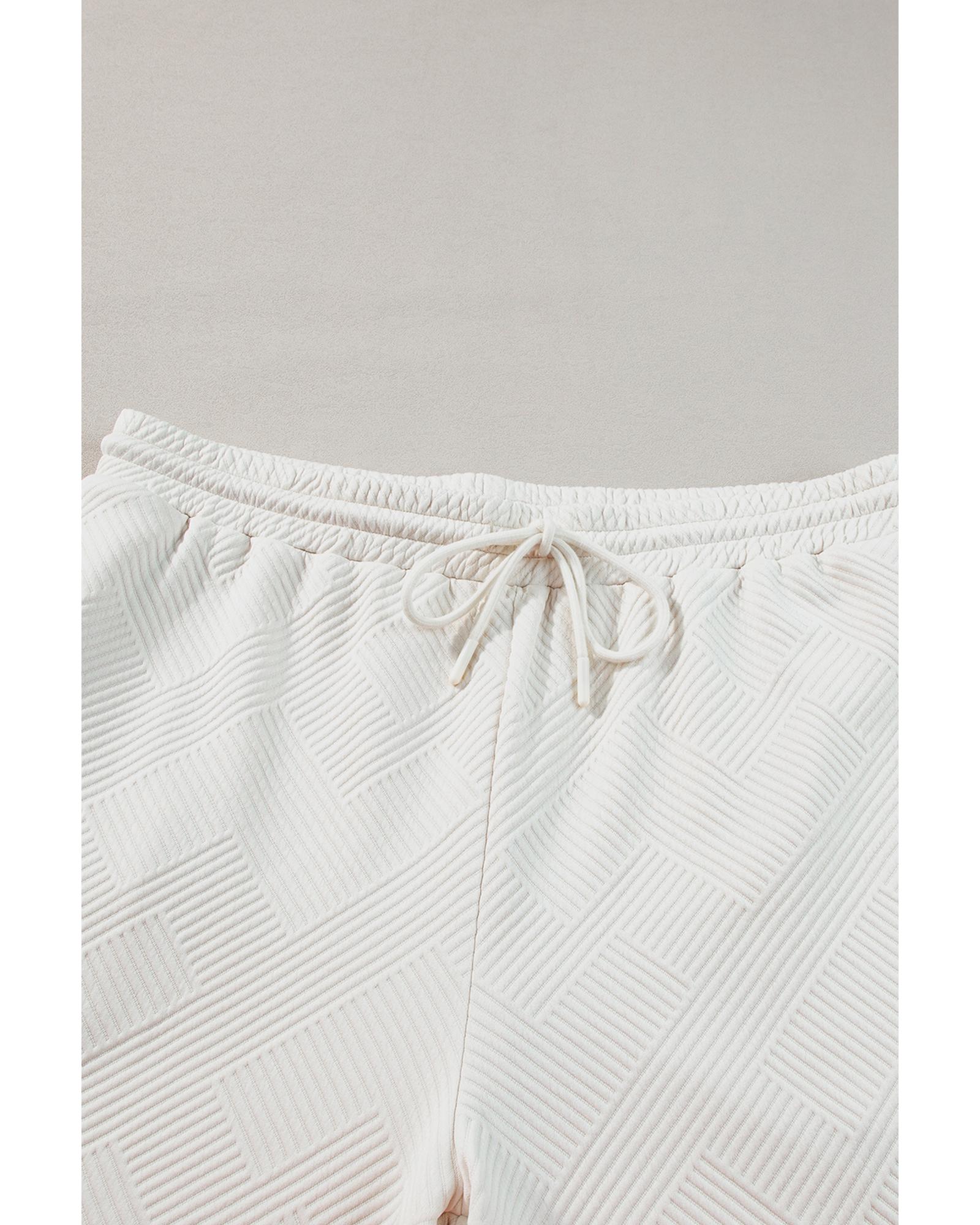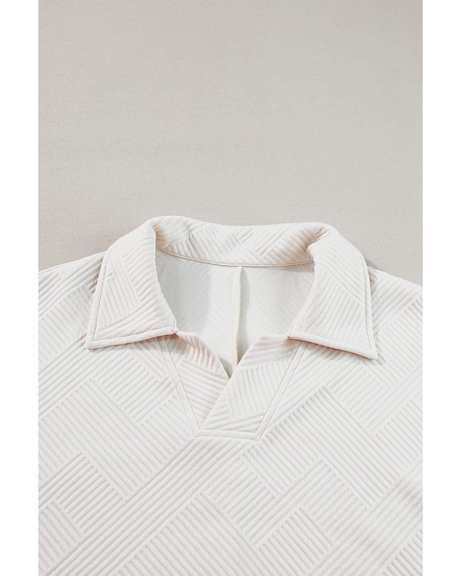 Beige Plus Size Textured Collared Top and Pants Set – 2X