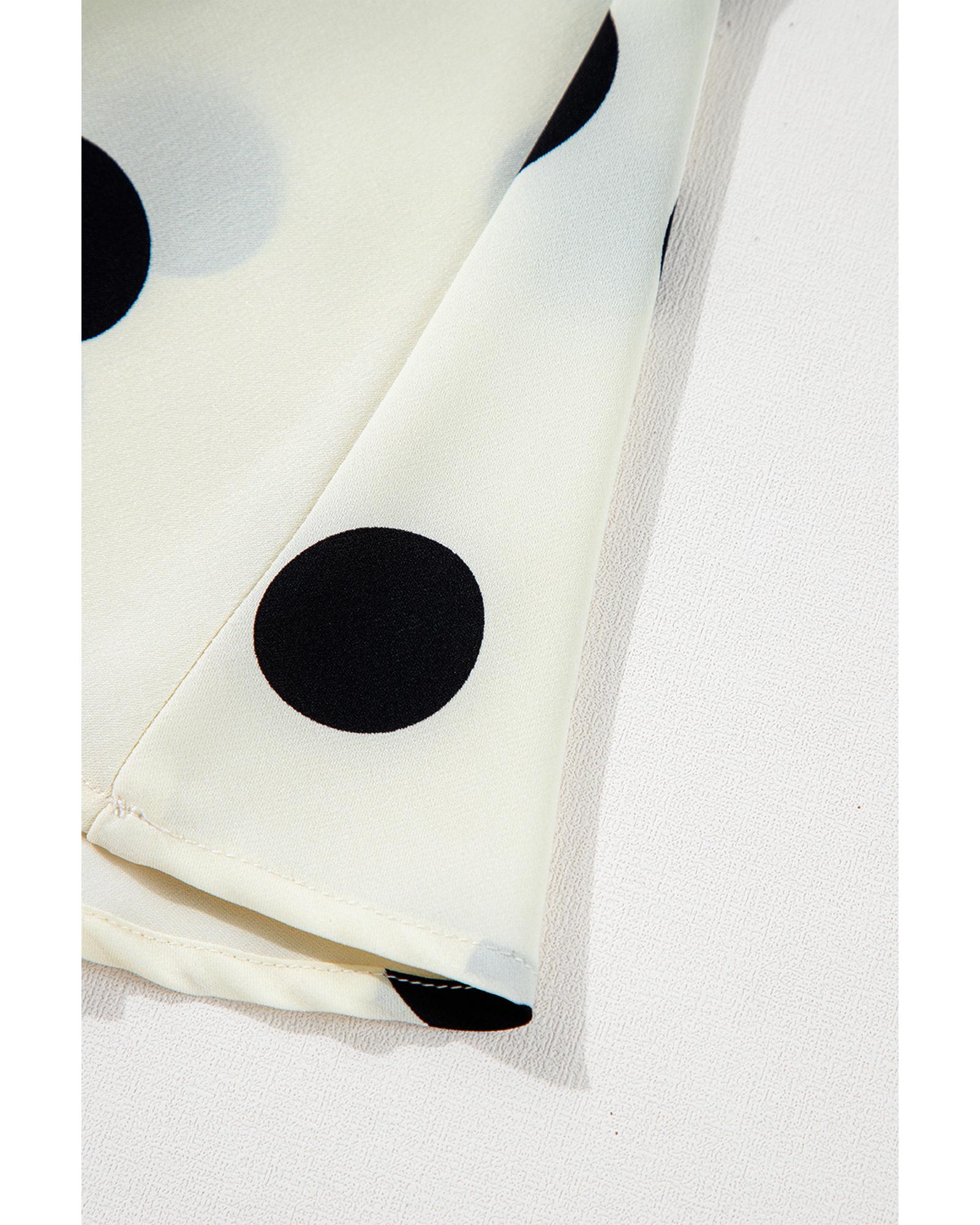 Beige Polka Dot Printed Surplice V Neck Puff Sleeve Mini Dress – XL