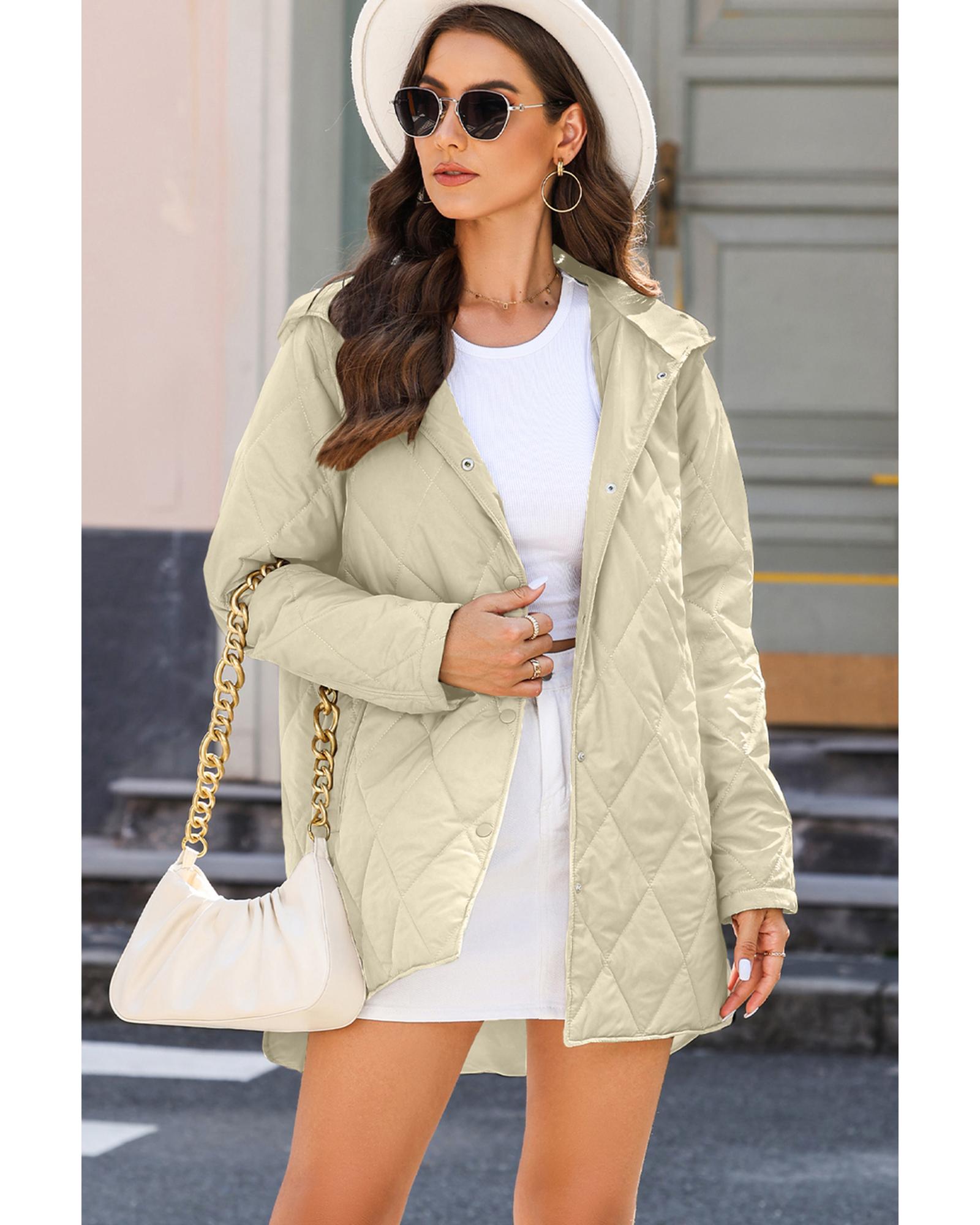 - Beige quilted snap button hooded coat