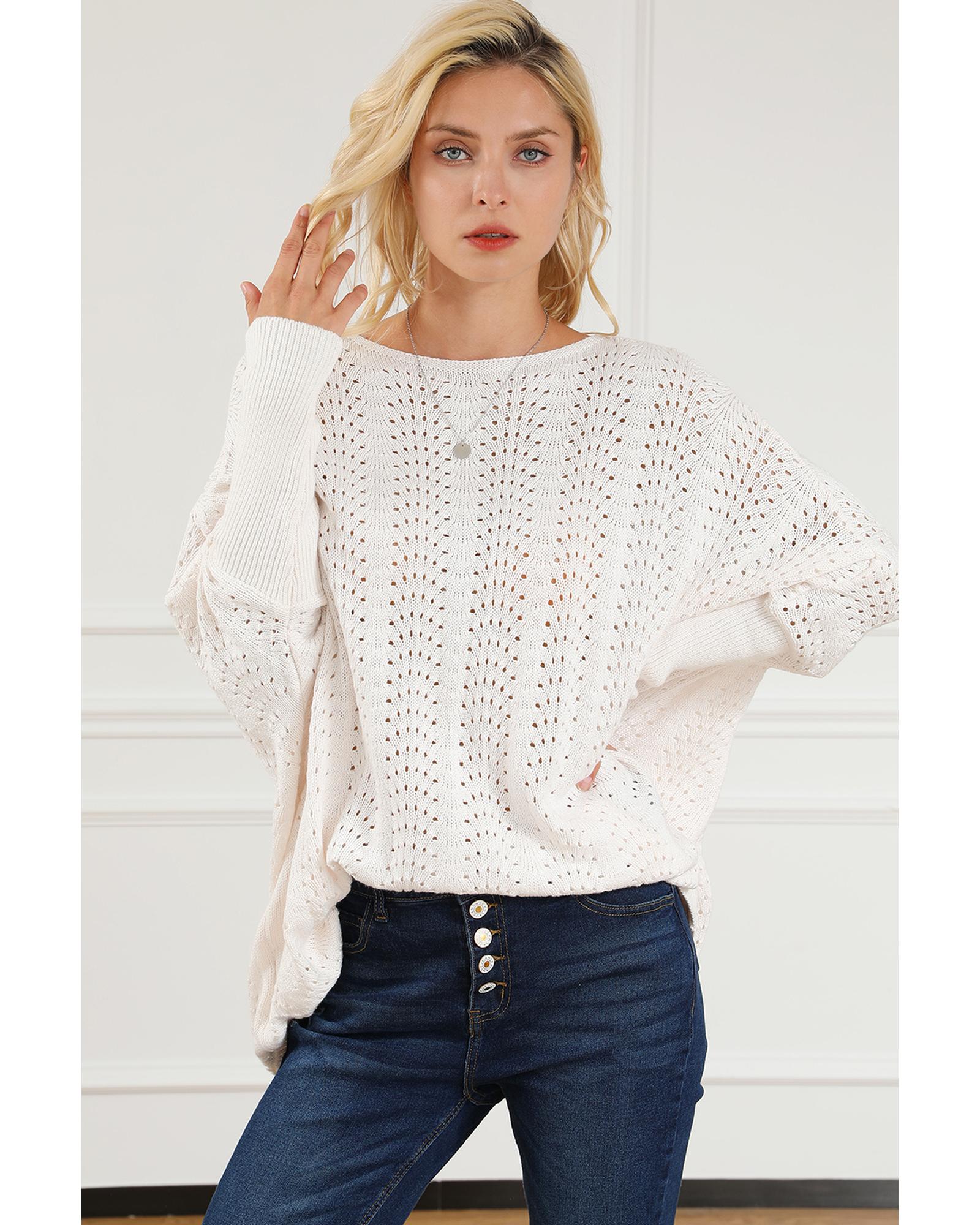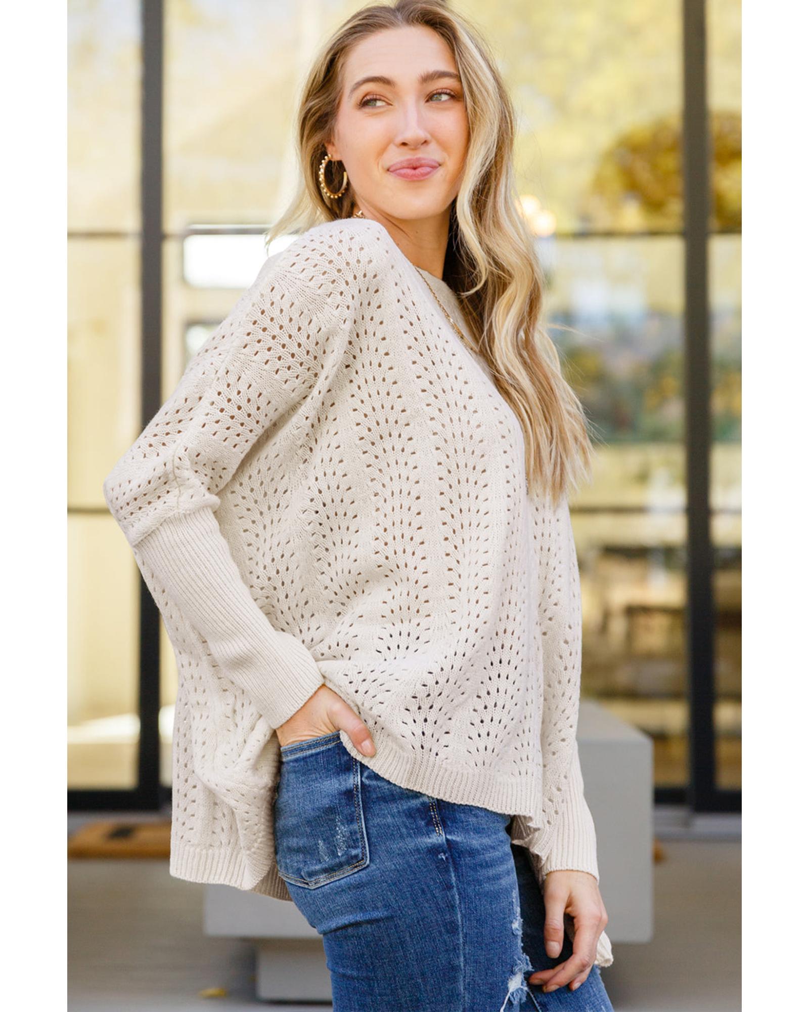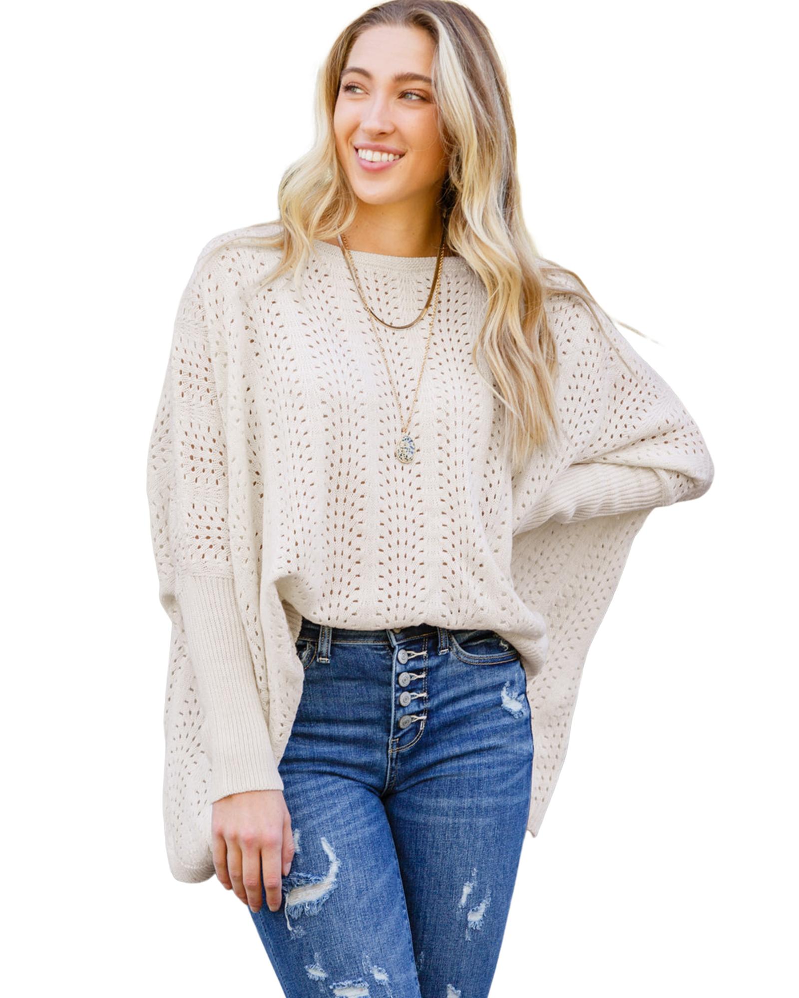 Beige Ribbed Hollow Knit Dolman Sleeve Sweater – XL