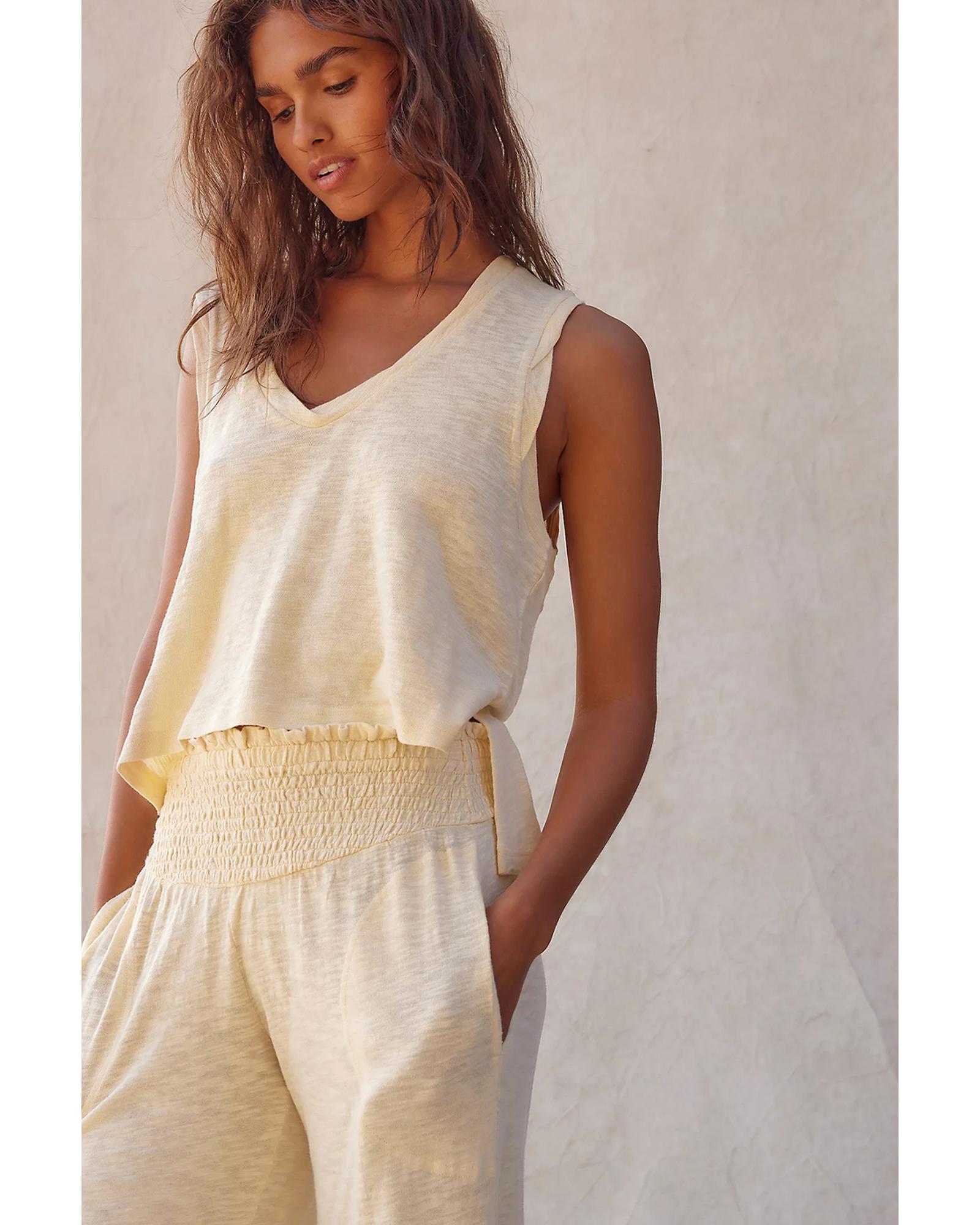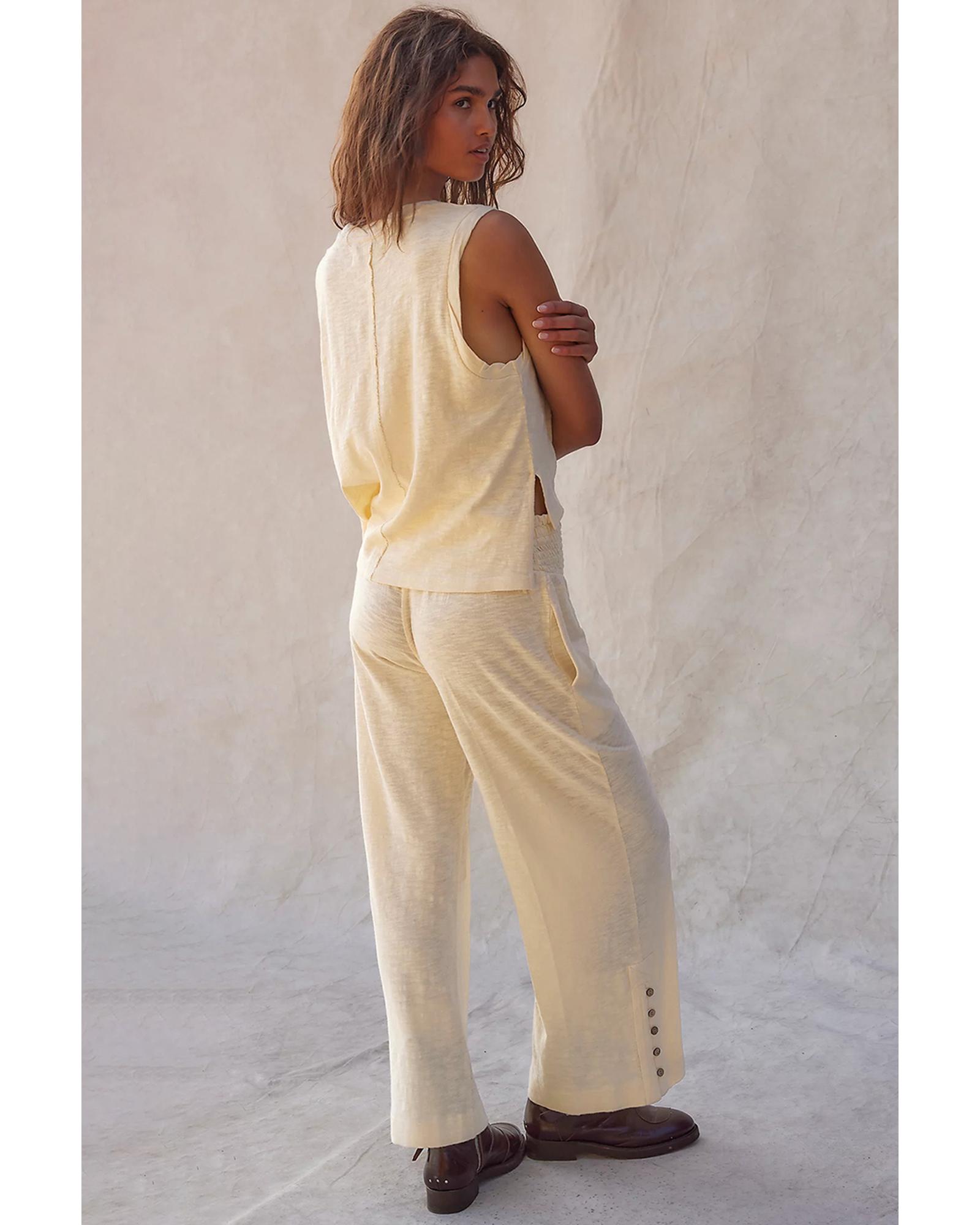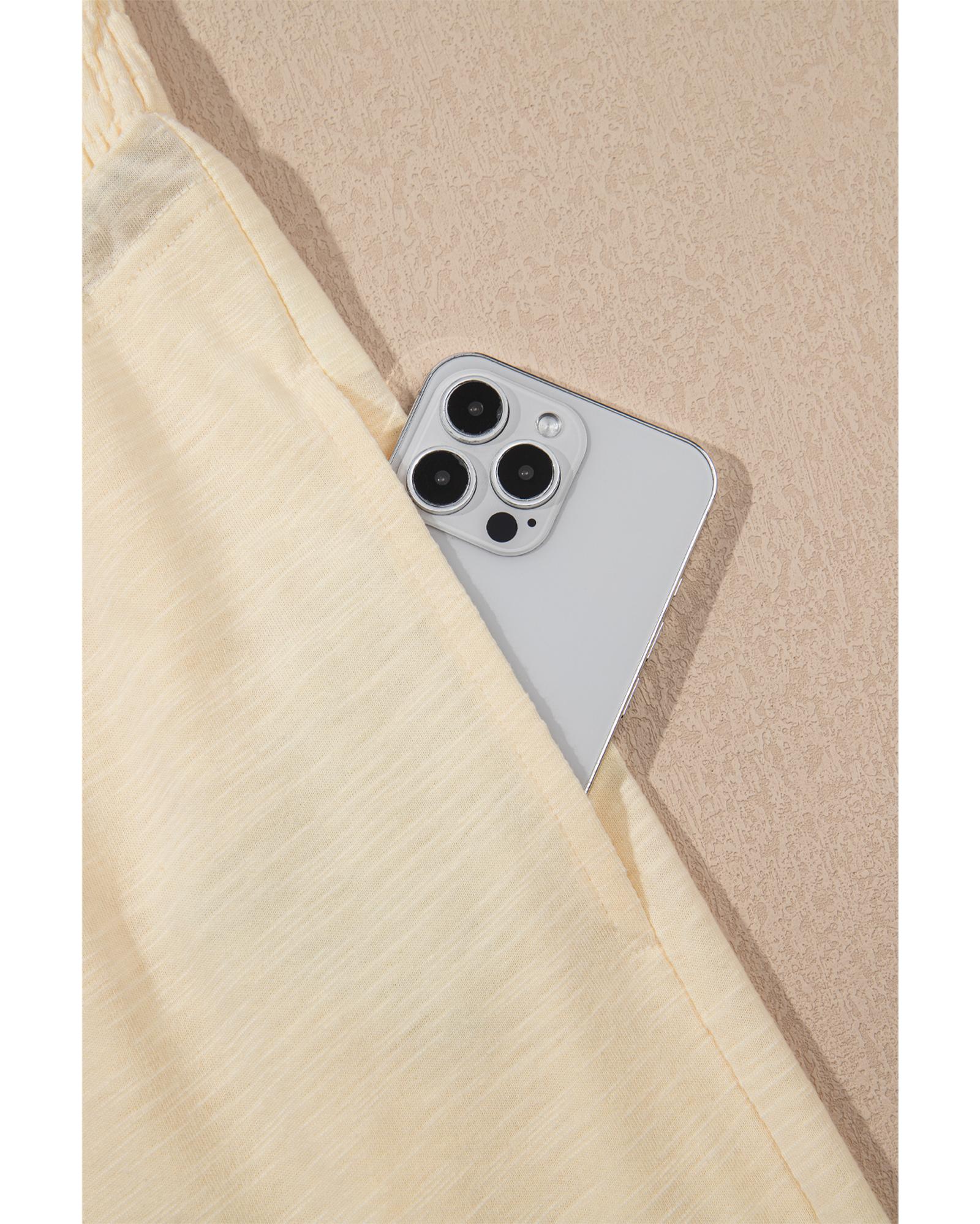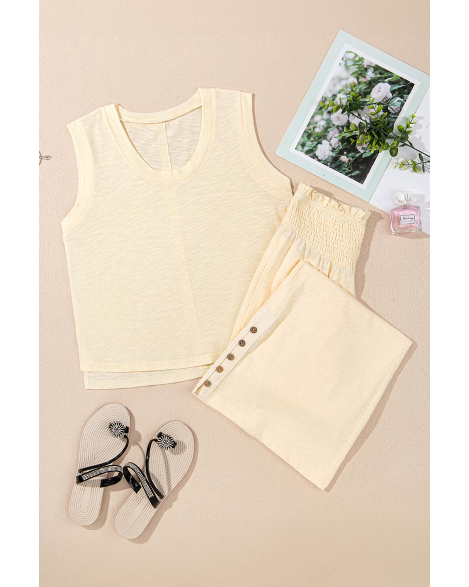 Beige Solid Color Tank Top and Smocked Waist Pants Set – M