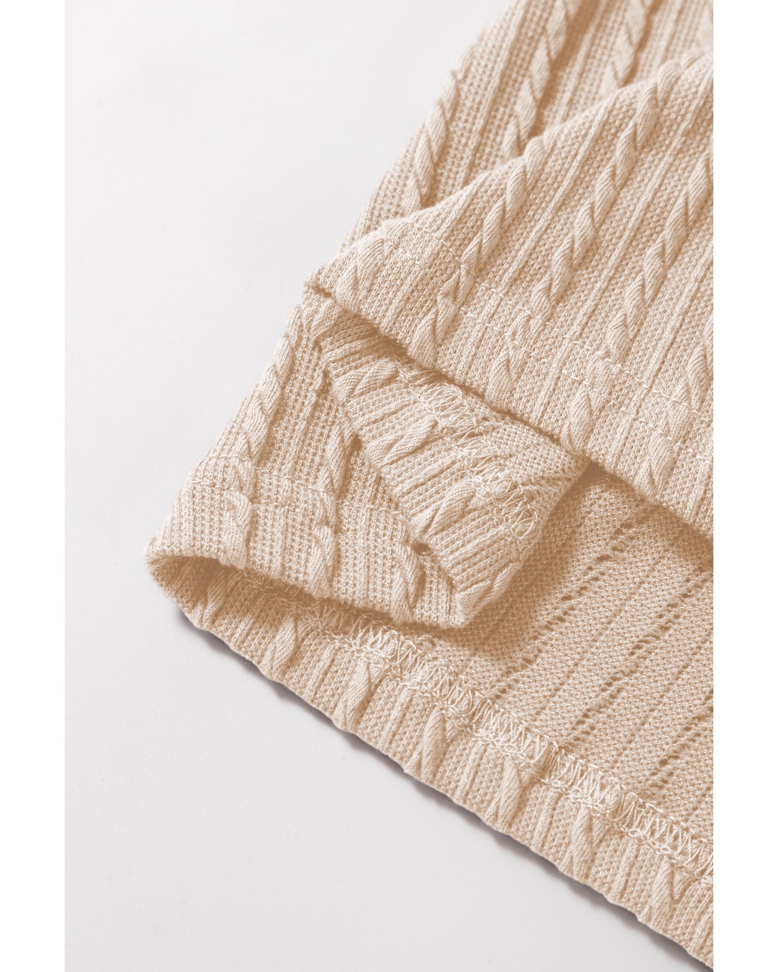Beige Solid Color Textured Flutter Sleeve Top – XL