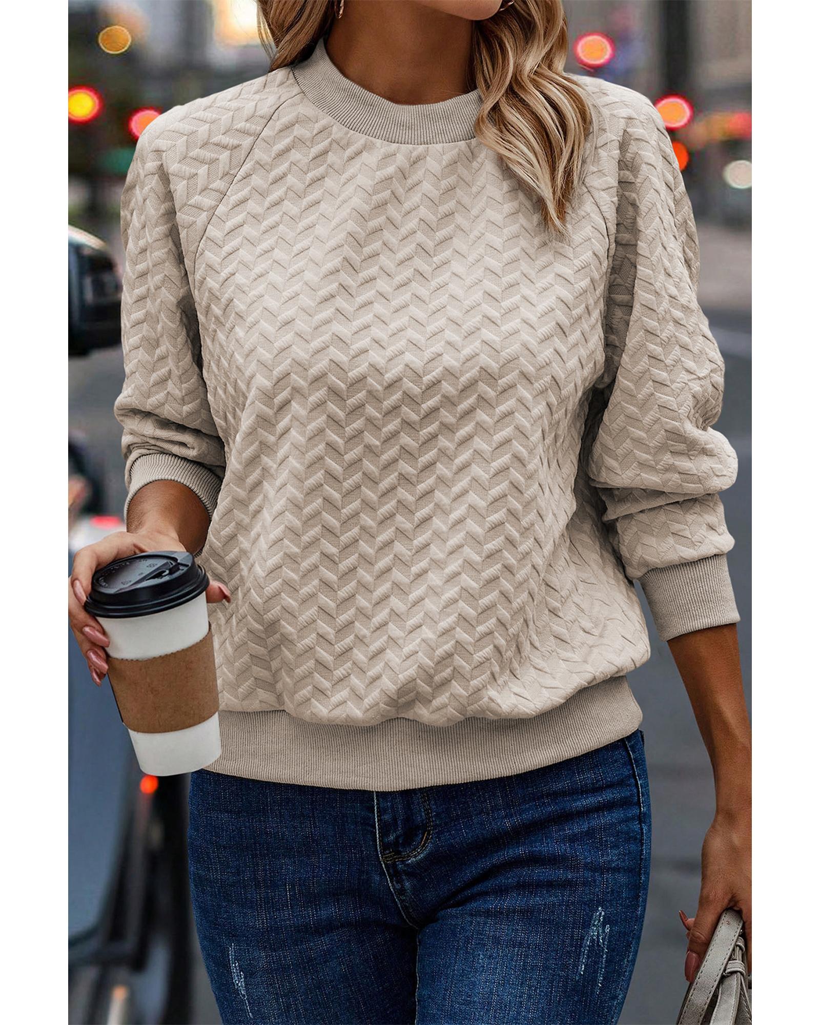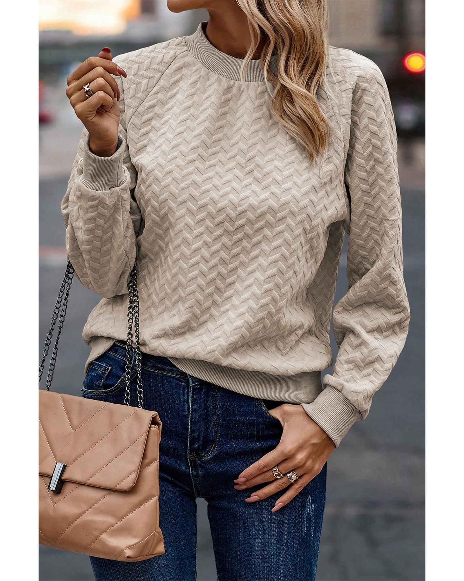 Beige Solid Textured Raglan Sleeve Pullover Sweatshirt – XL