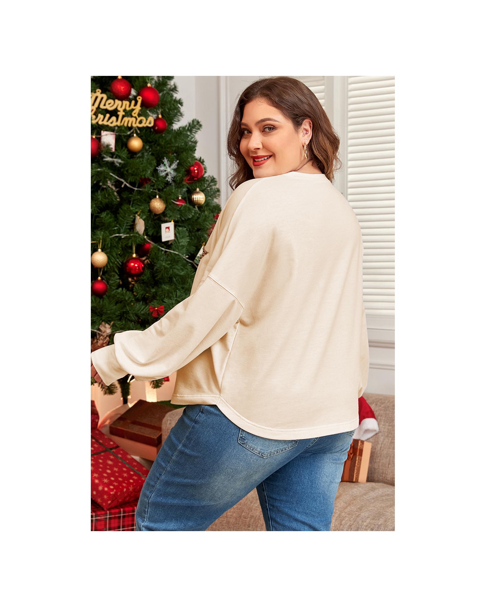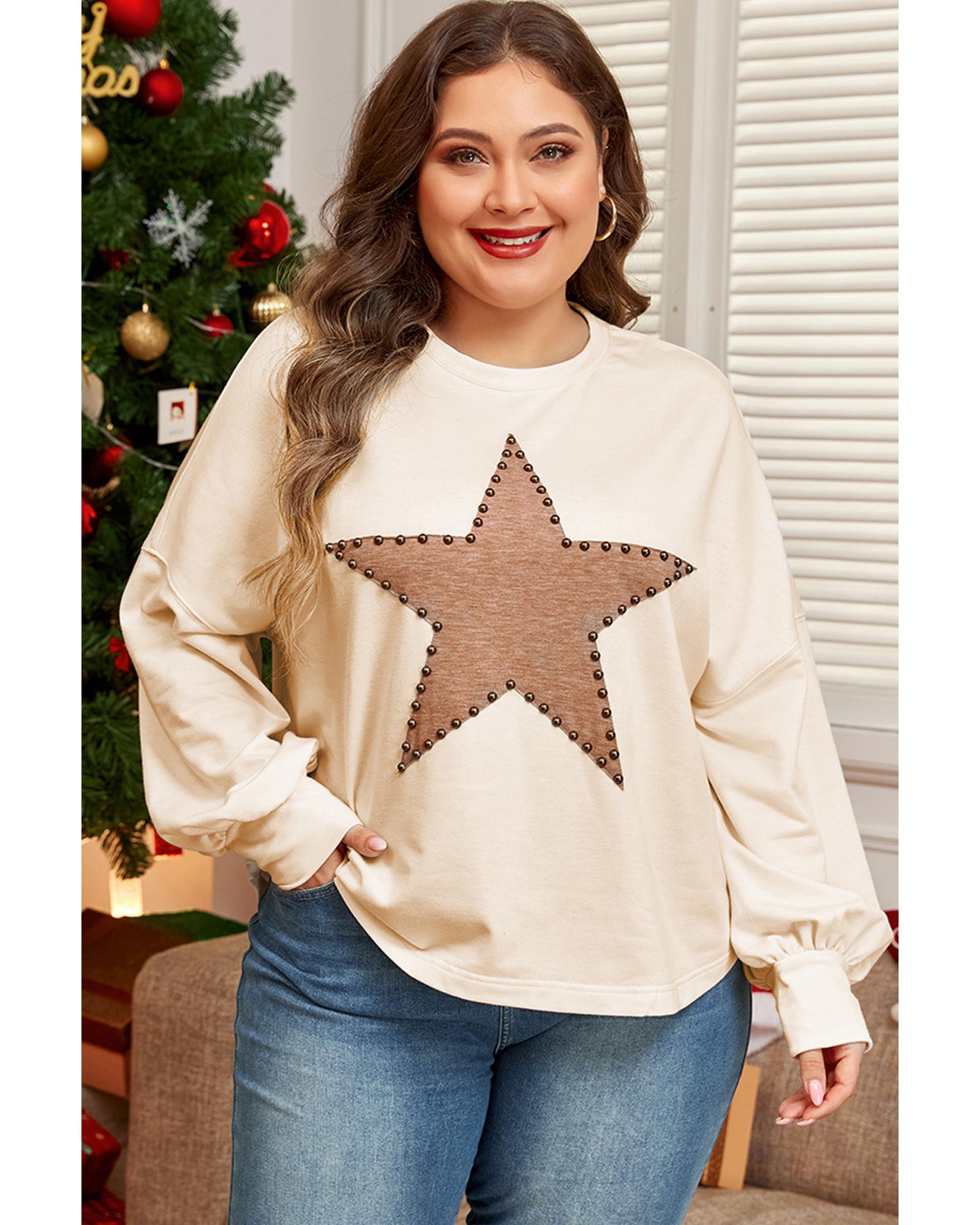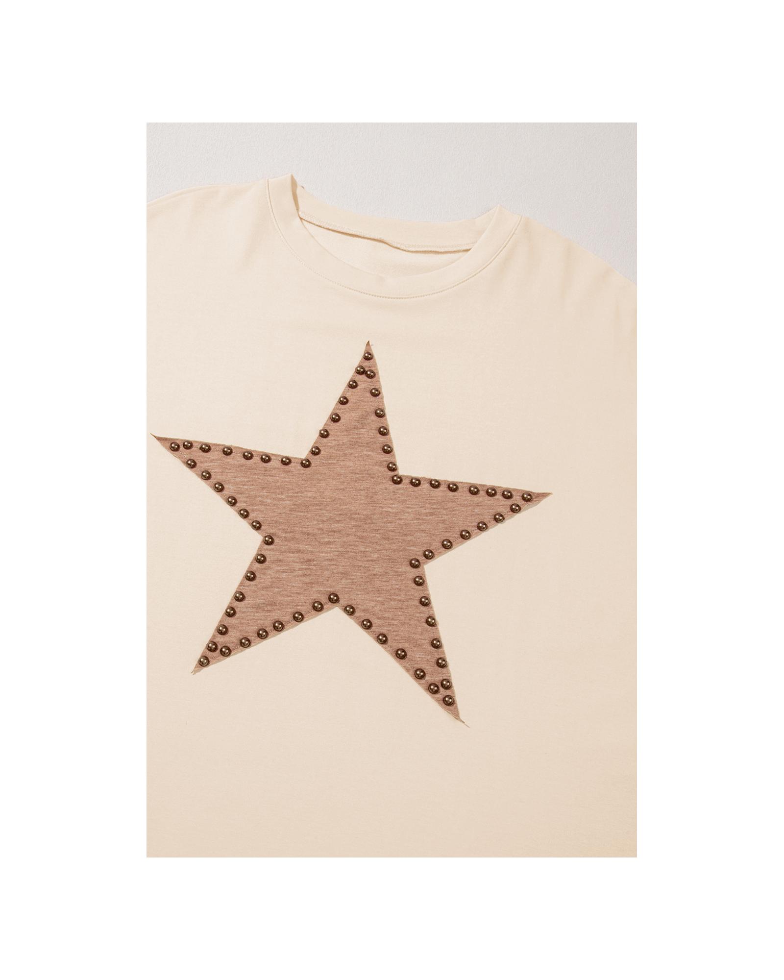 Beige Star Shape Studded Crew Neck Plus Size T Shirt – 3X