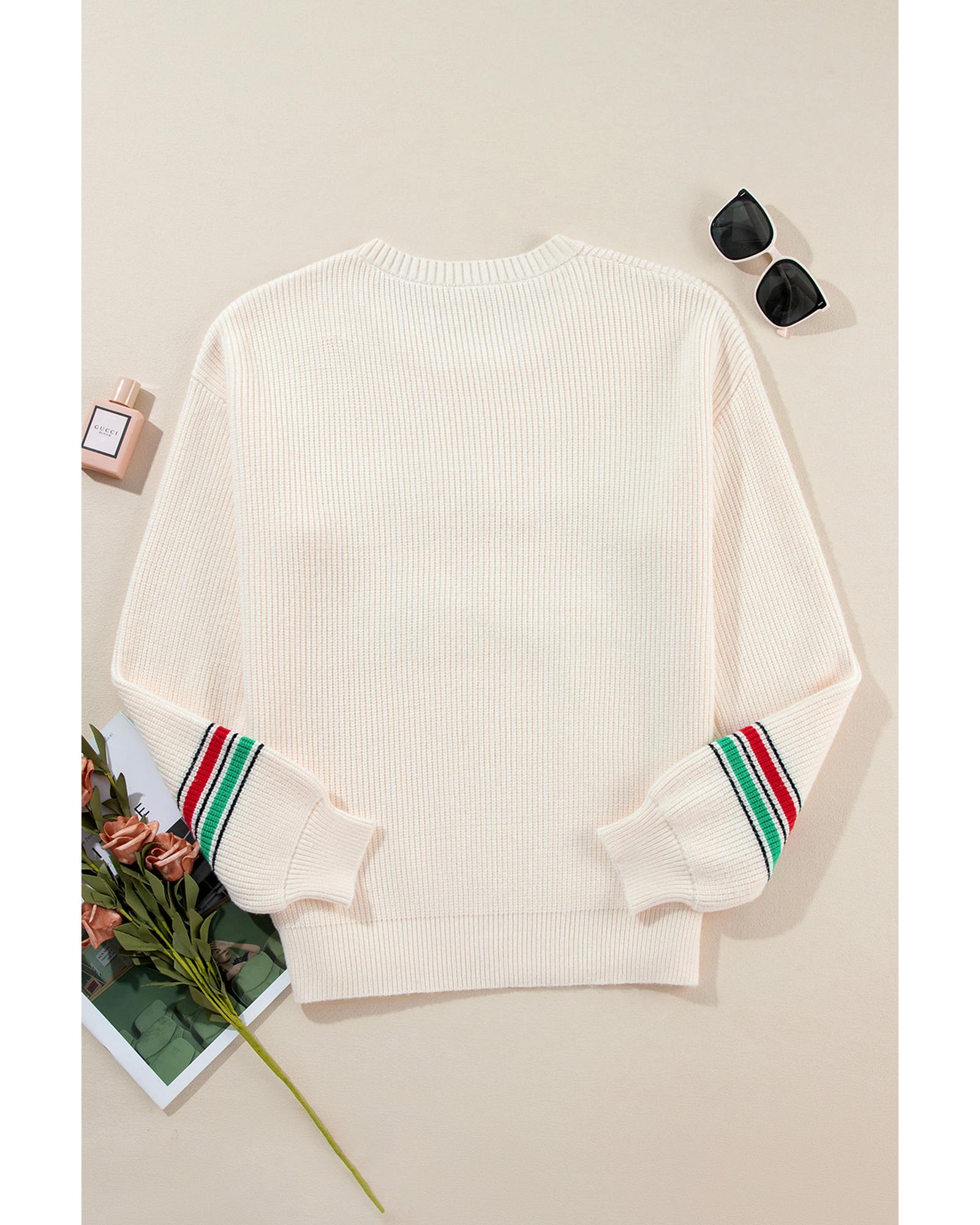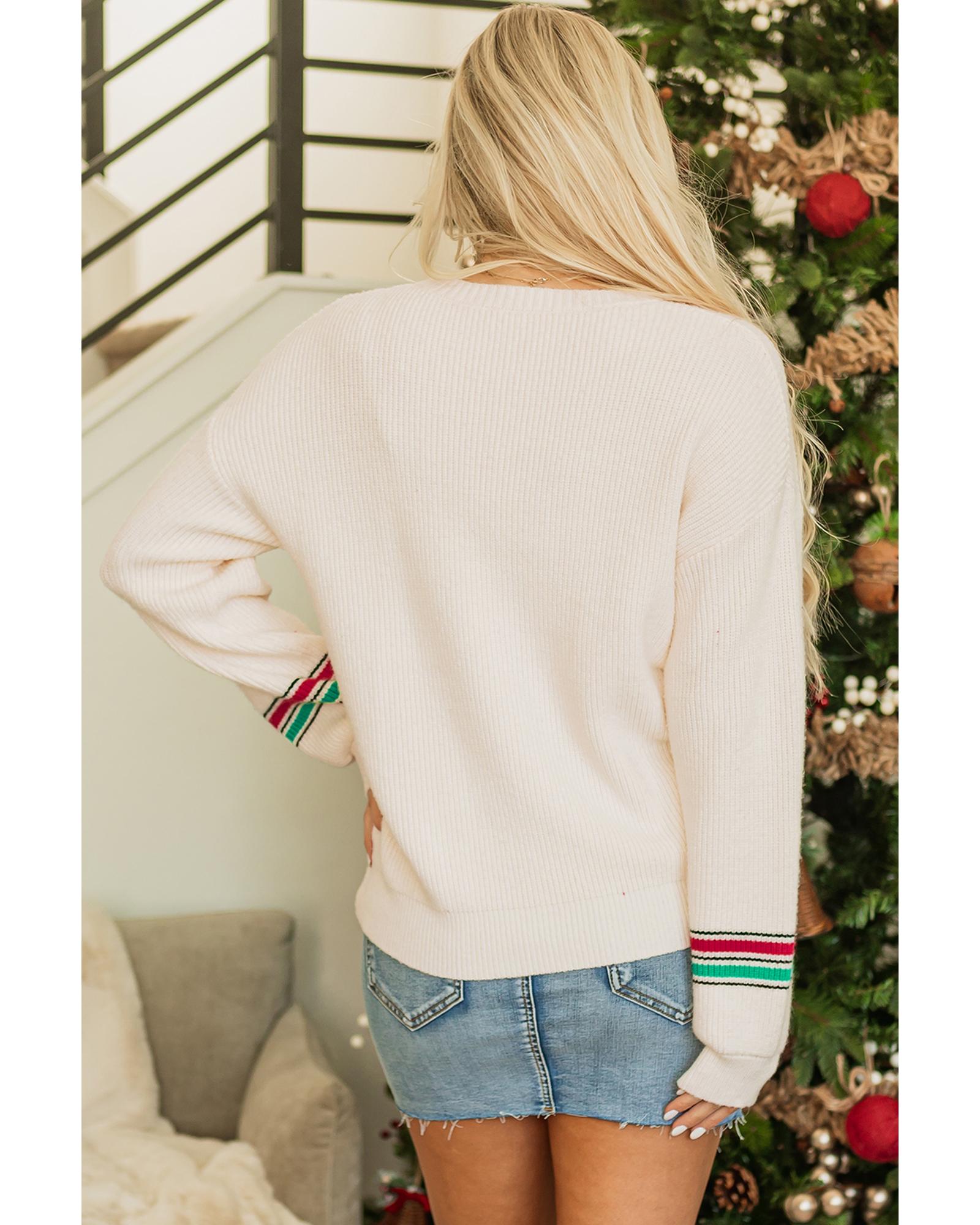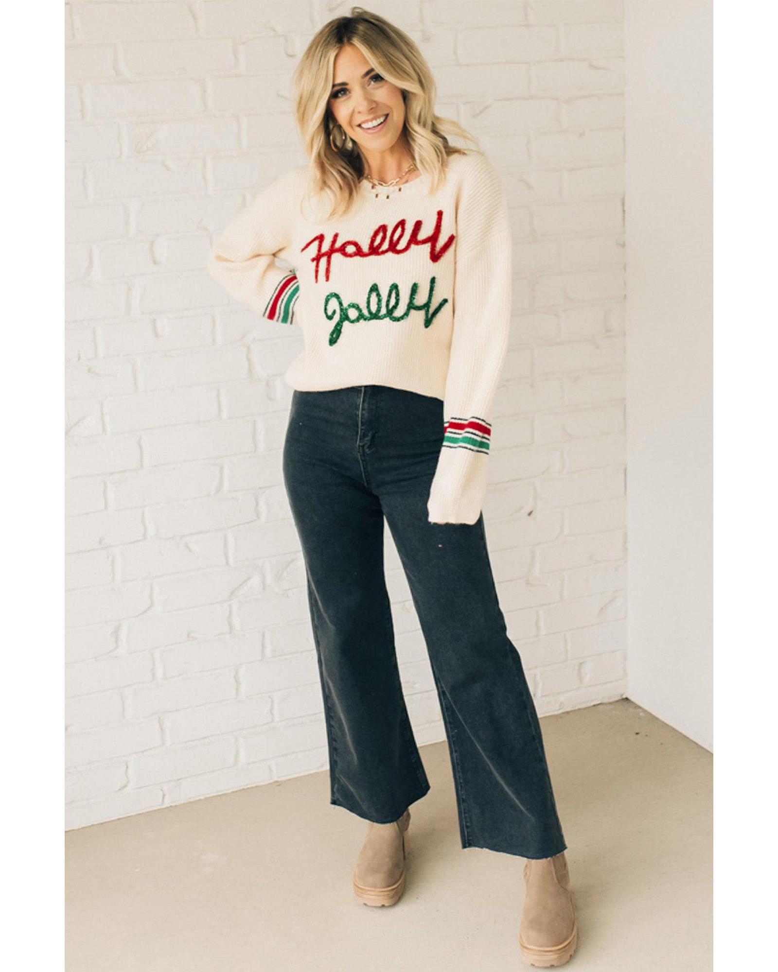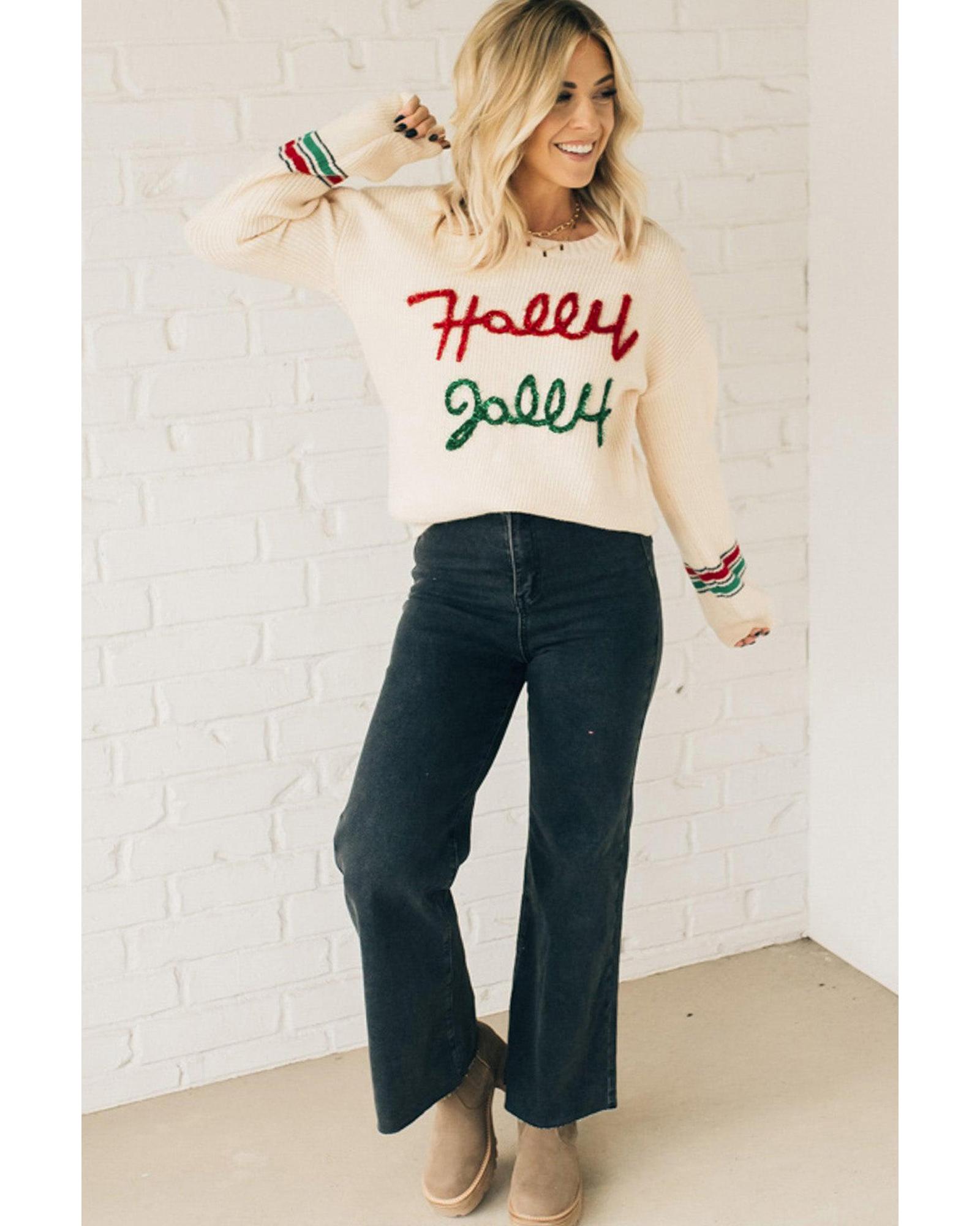 Beige Tinsel Holly Jolly Graphic Classic Sweater – XL