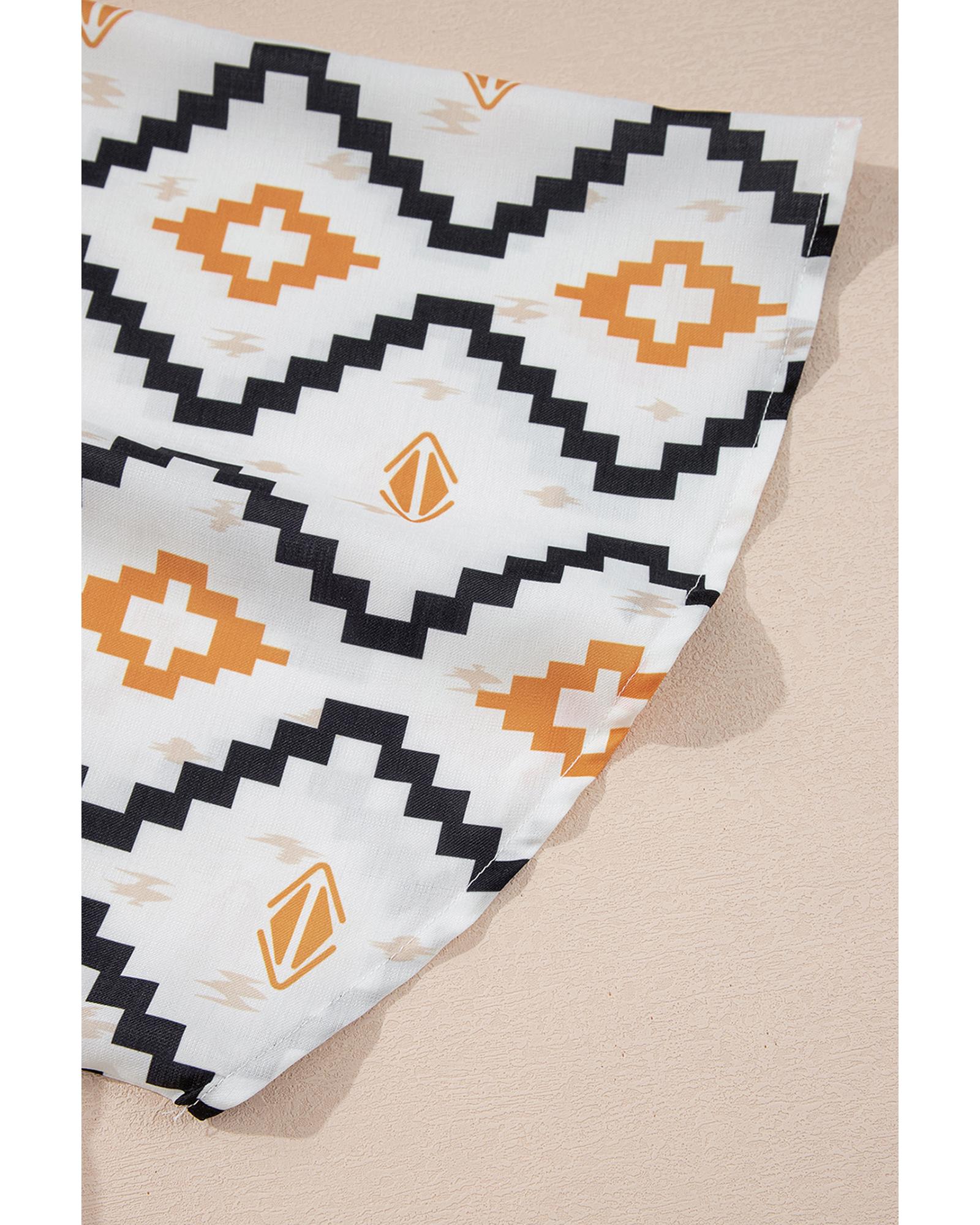 - Beige Western Aztec Print Pleated Square Neck Loose Mini Dress