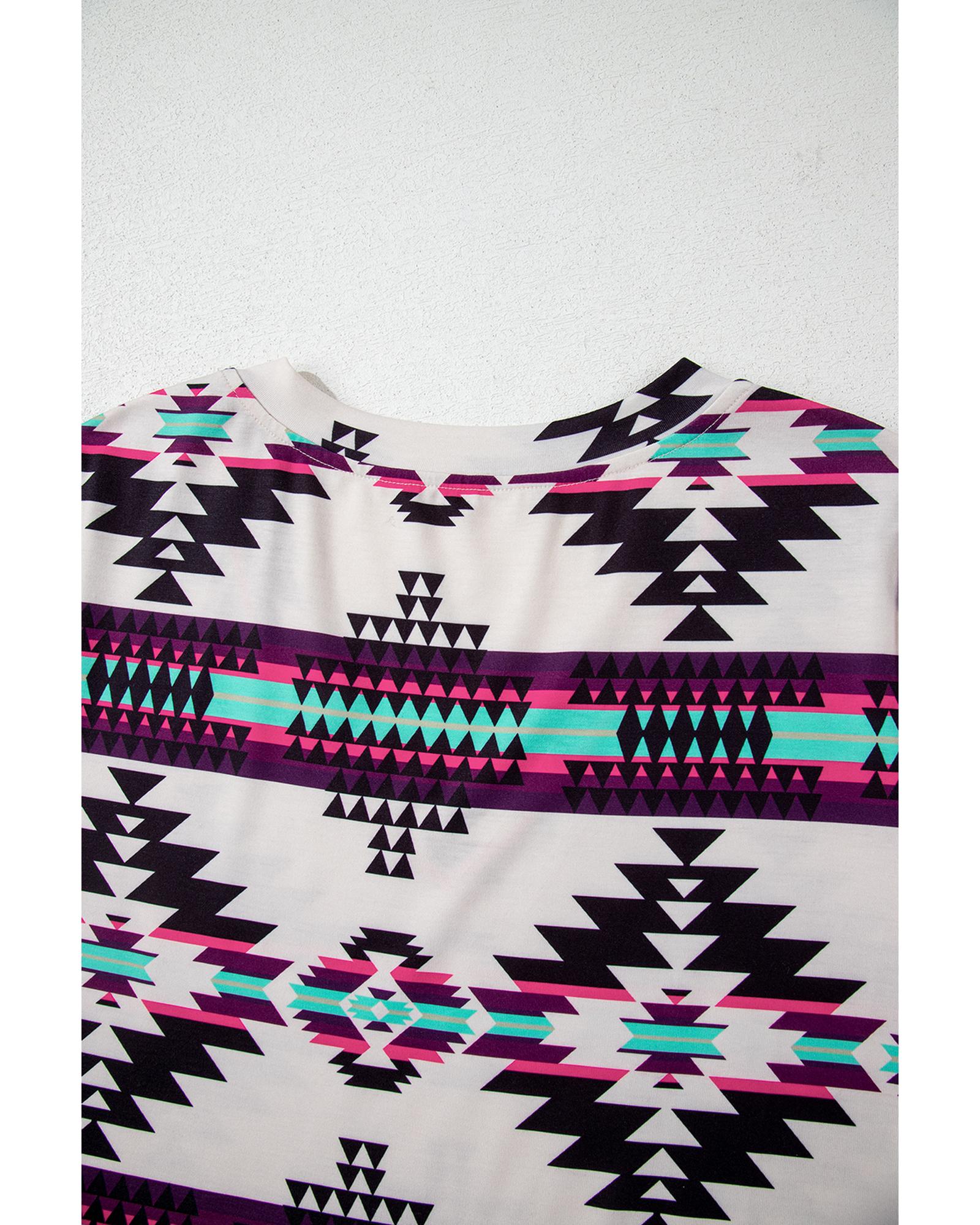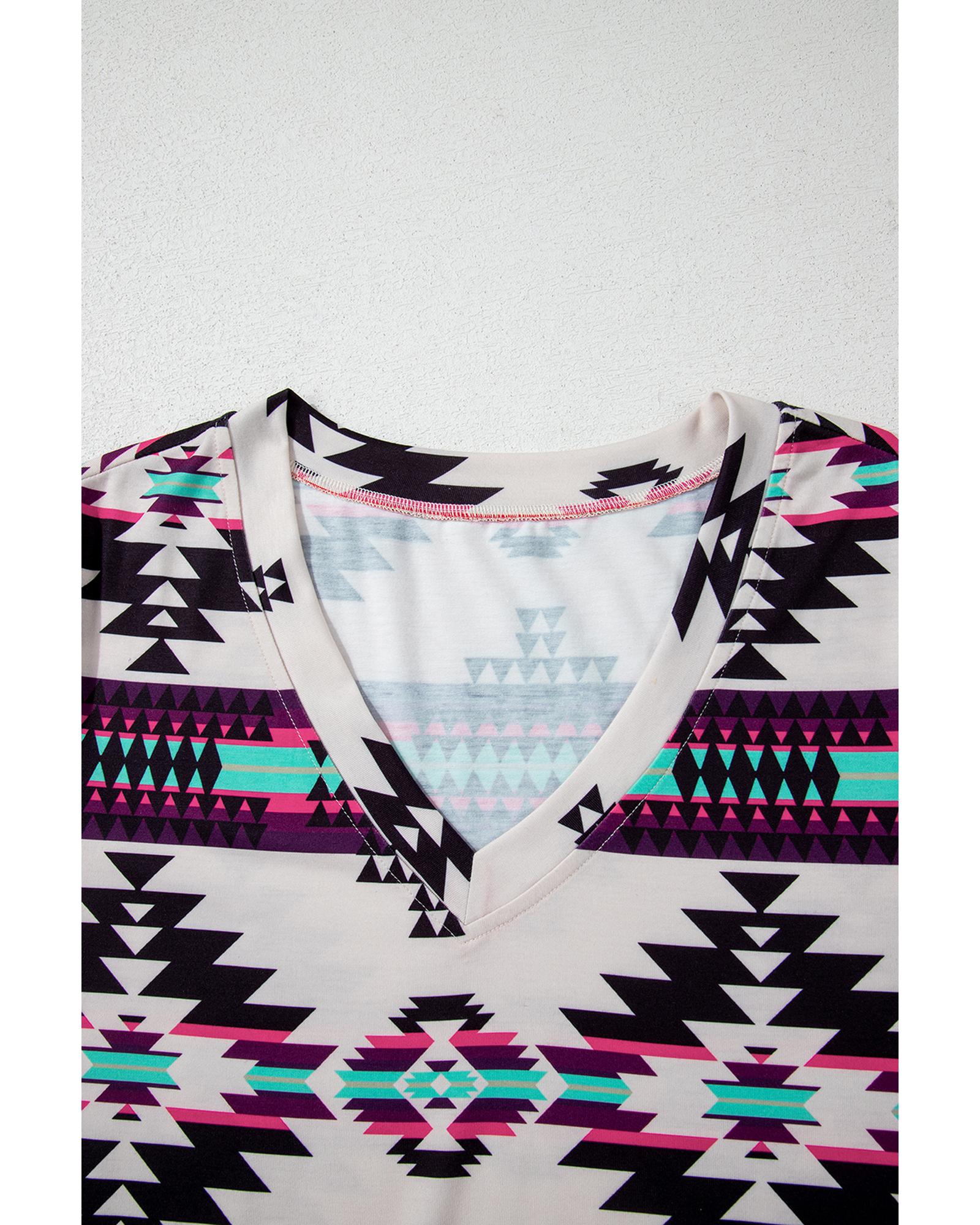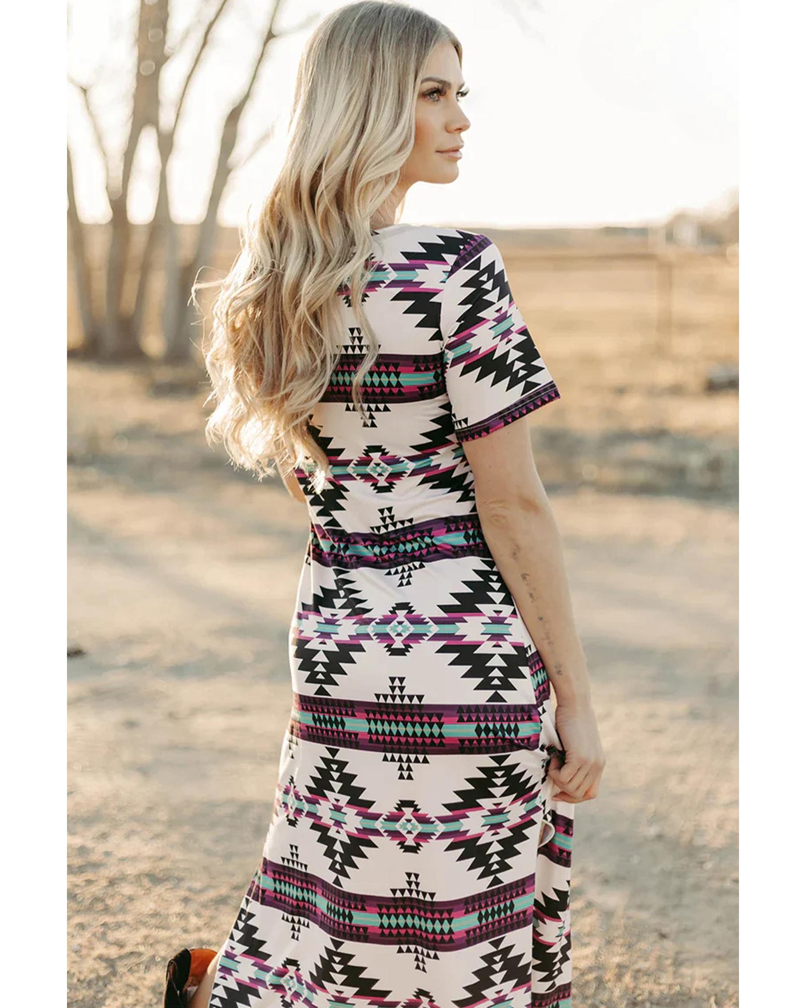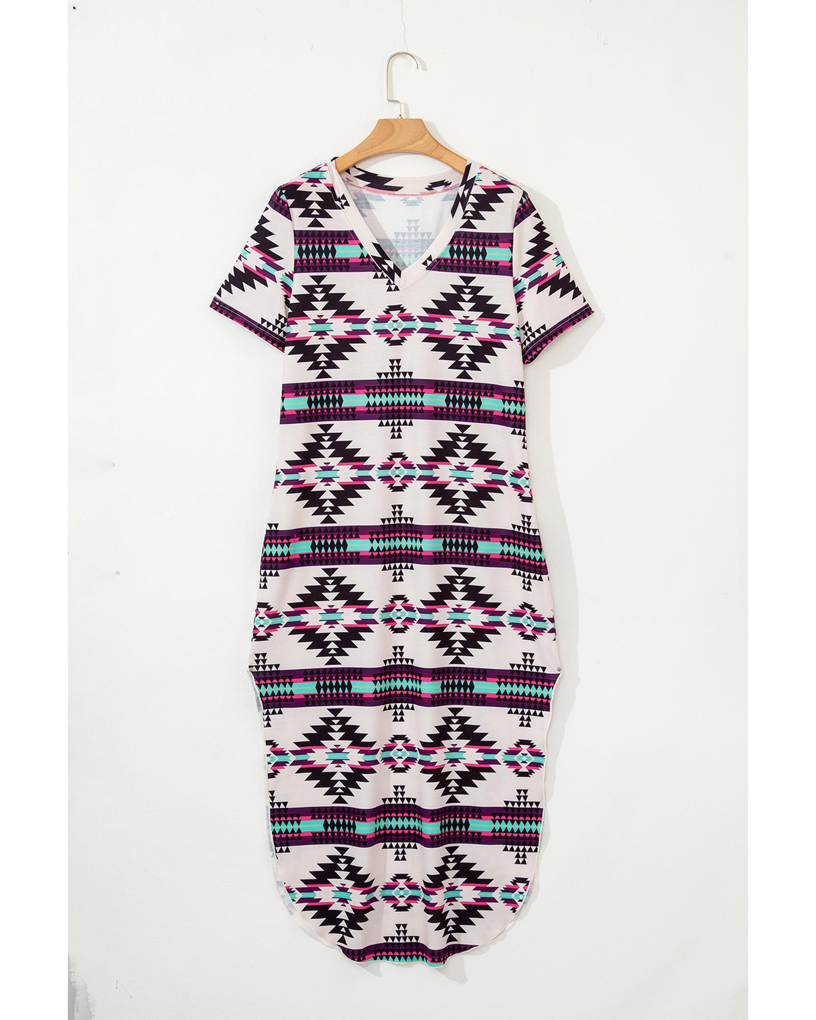 Beige Western Aztec Printed Long T-shirt Dress – M