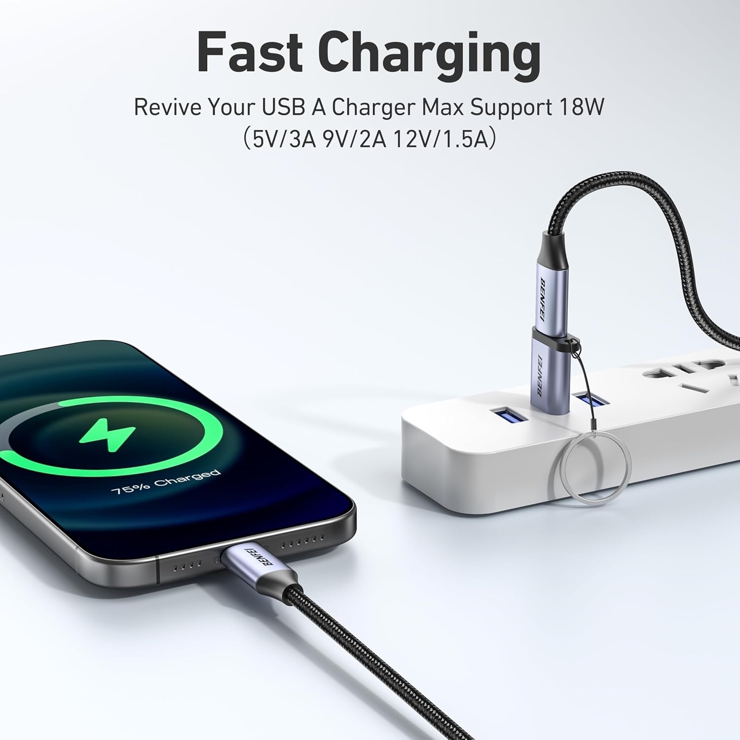 BENFEI 407GY USB Type-A to USB-C Adapter Male to Female Supporting 5V 3A Charging and 10Gbps Data Transmit