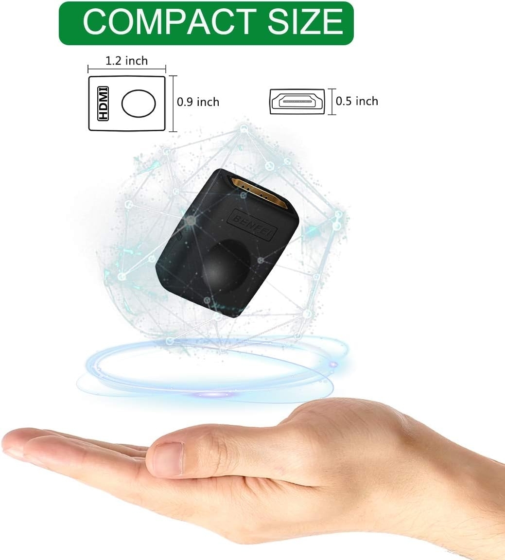 HDMI female-to-female coupler easily connects two HDMI A Male to A Male cables together