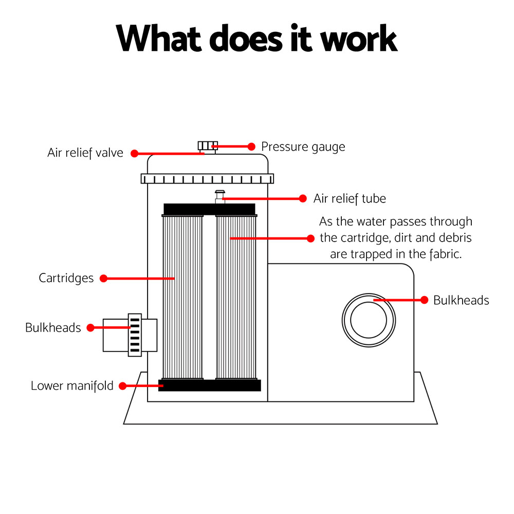 This filter pump also comes with a filter cartridge, which traps and filters dirt and debris, transforming scummy water into clean water that you would not hesitate to jump into whenever you feel like a swim!