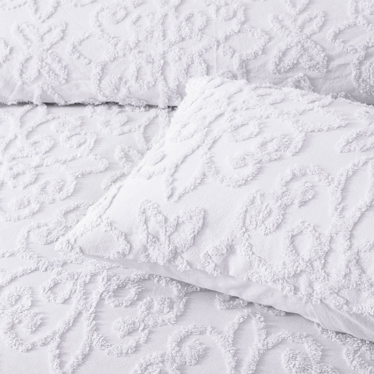 Bianca Ella White Cotton Chenille Floral Bedspread Set Single