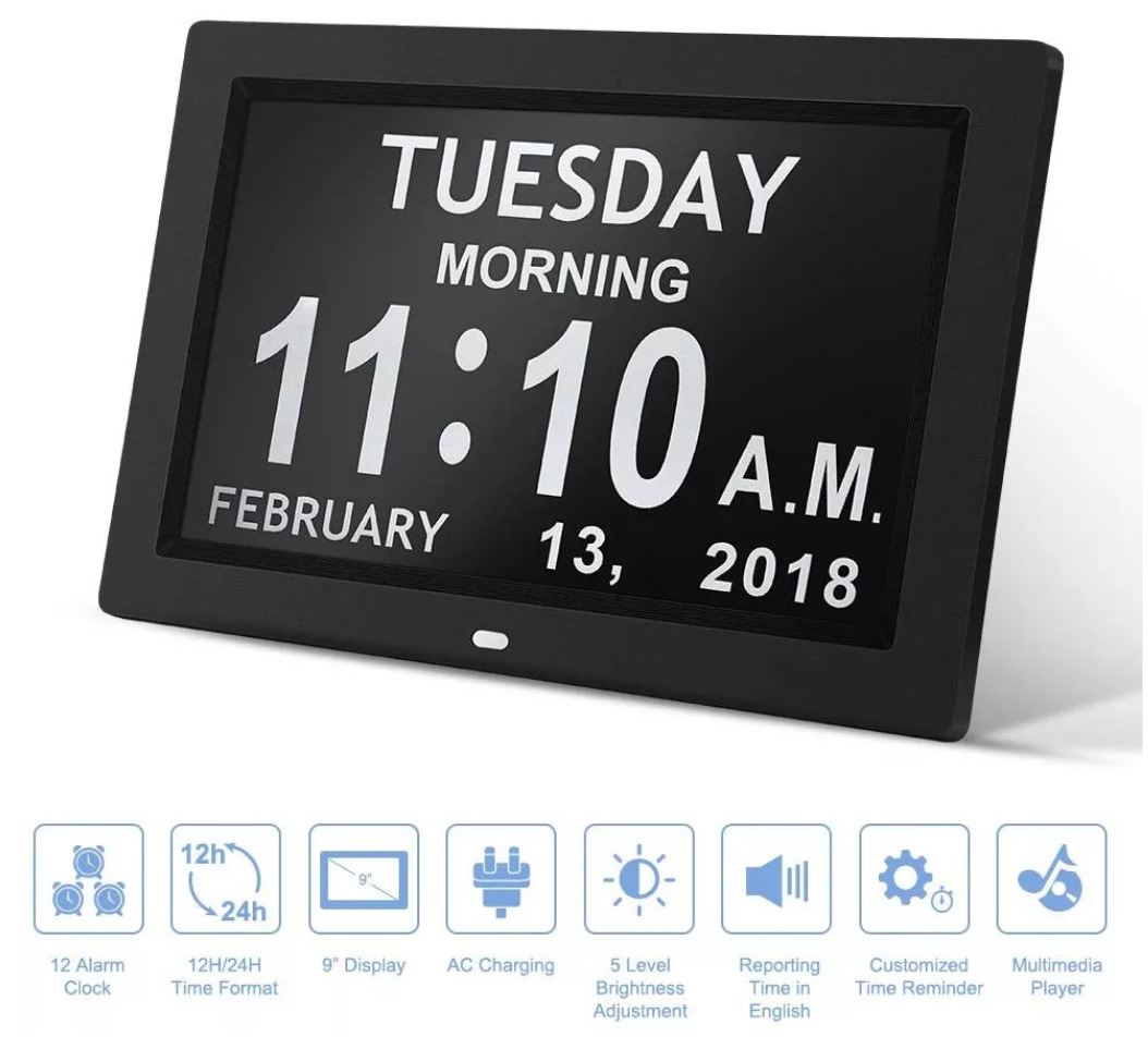 Simplify daily life with our advanced 10.1-Inch Digital Clock, thoughtfully designed for elderly care and busy households! Boasting a large, high-contrast display with bold fonts, this clock clearly shows the day, time, and date (e.g., Wednesday Morning, 10:30 A.M., April 19, 2017), making it perfect for those with vision challenges. The sleek design is enhanced with practical features to support a structured routine.