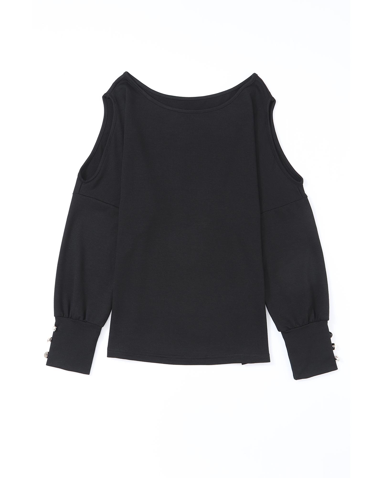 Black Asymmetrical Cut Out Buttoned Long Sleeve Top – XL