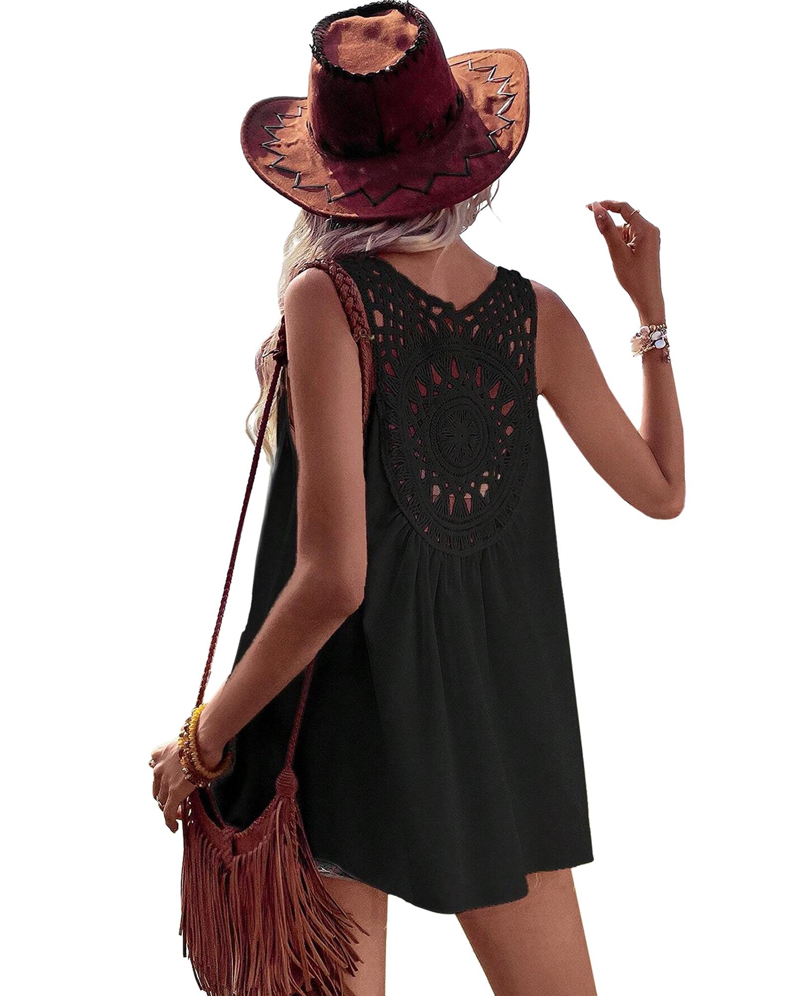 - Black Bohemian Crochet Patchwork Sleeveless Tunic