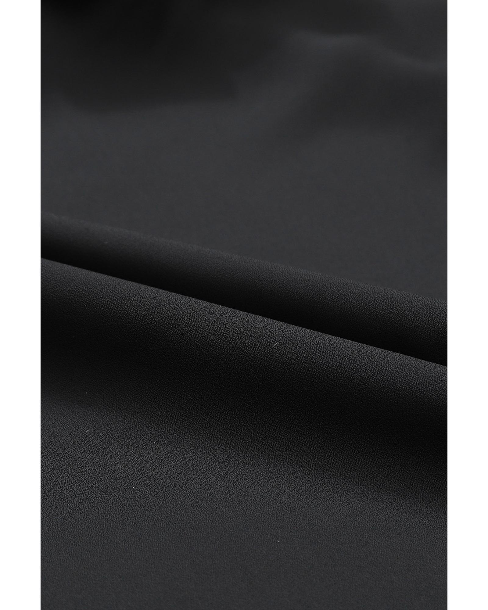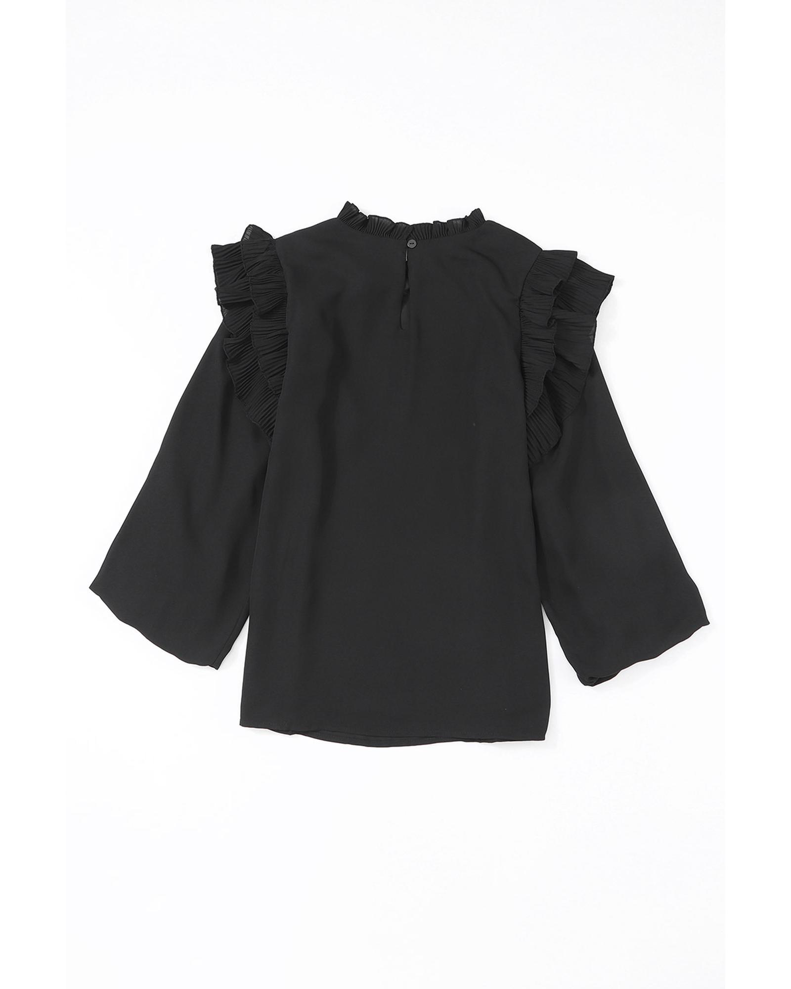 Black Button Keyhole Back Pleated Ruffle Trim Blouse – L