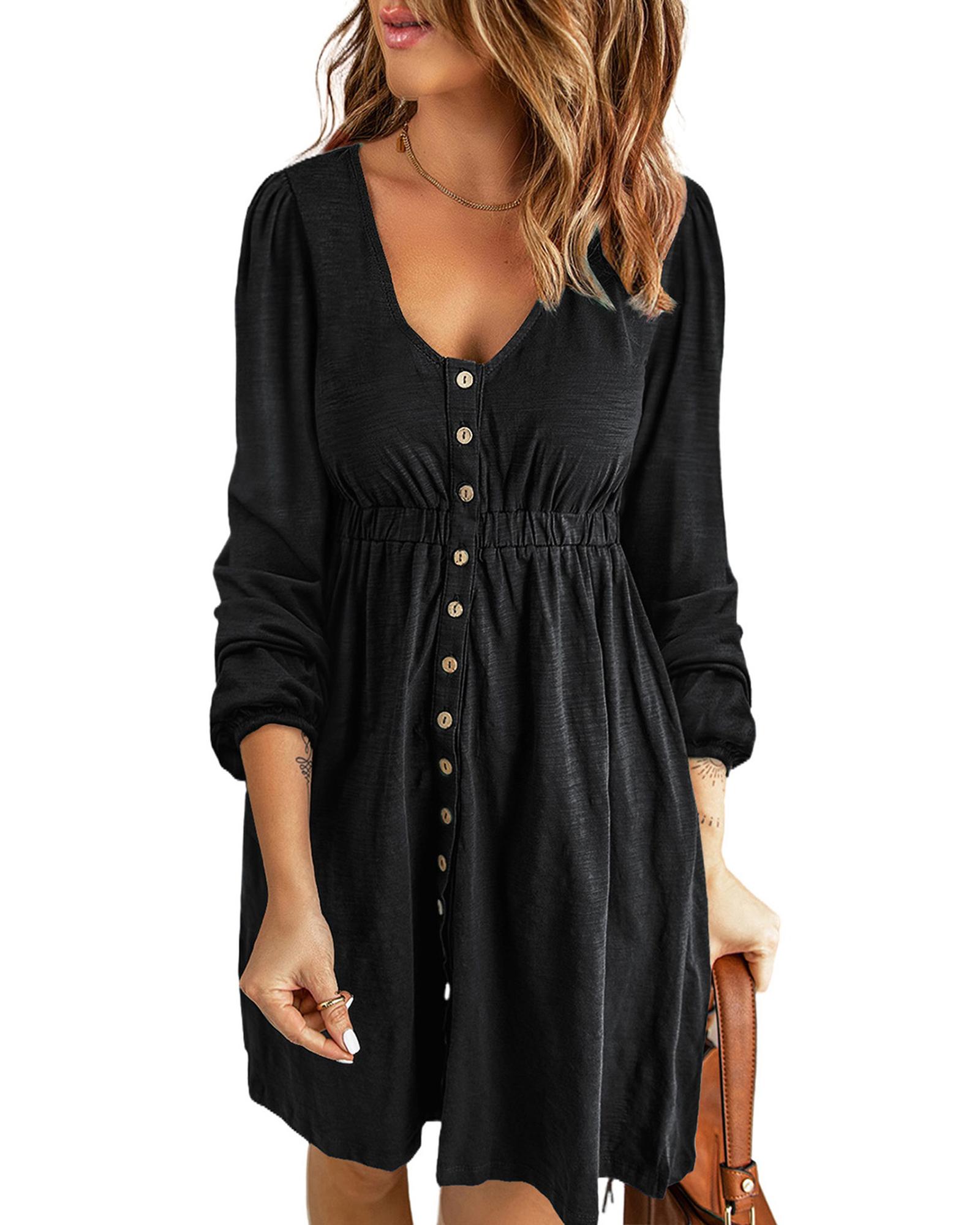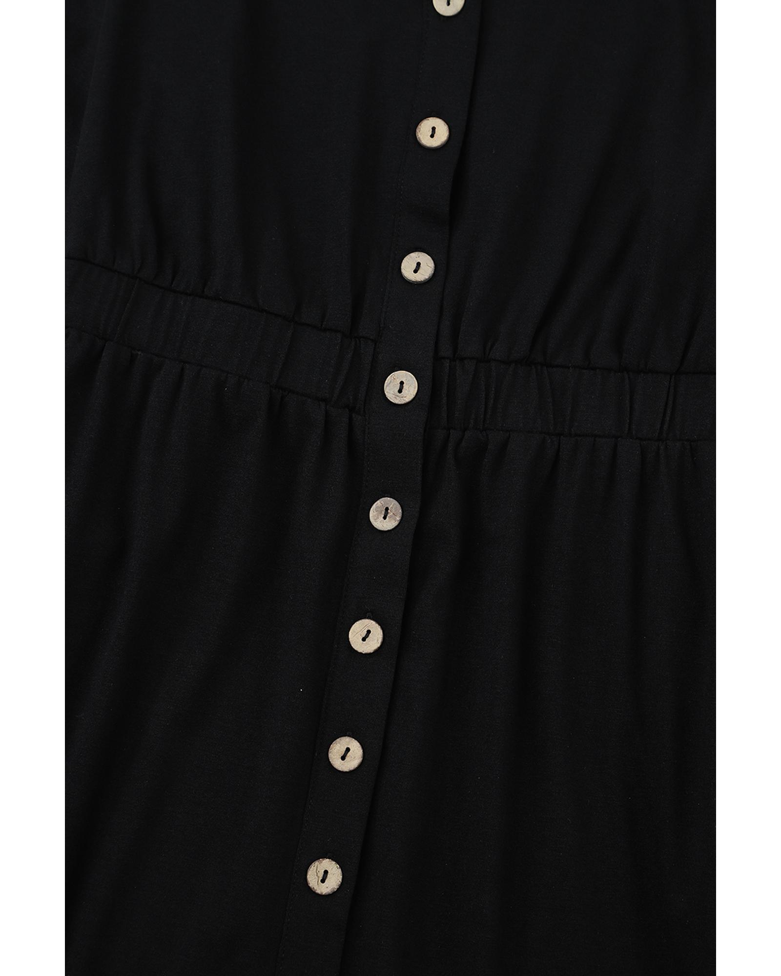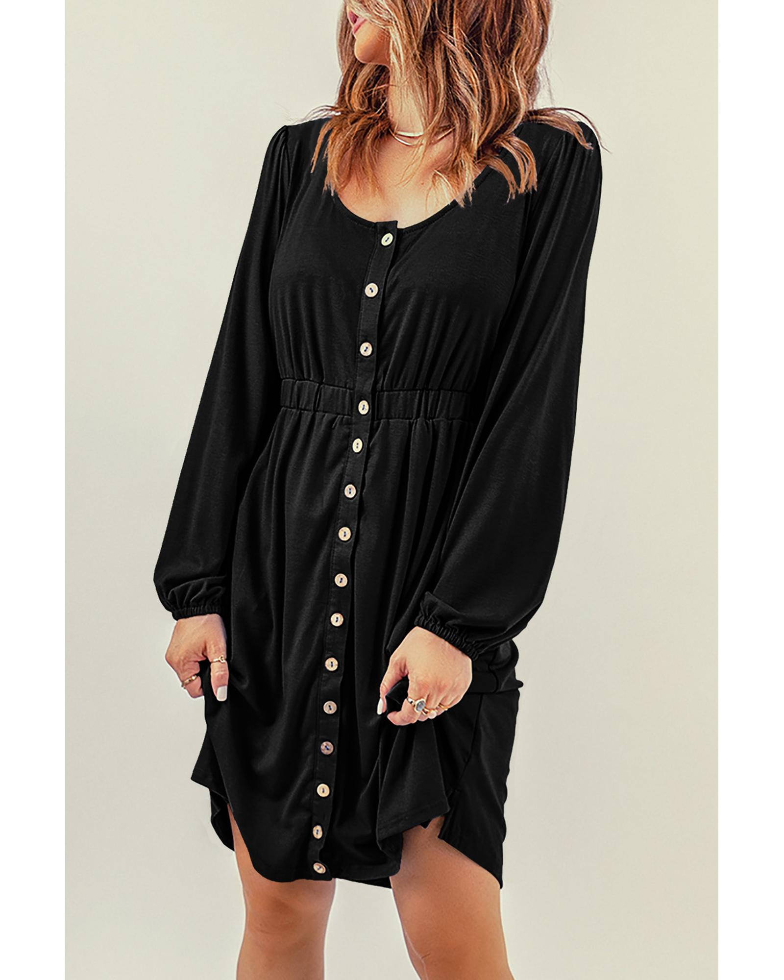 - Black button up high waist long sleeve dress