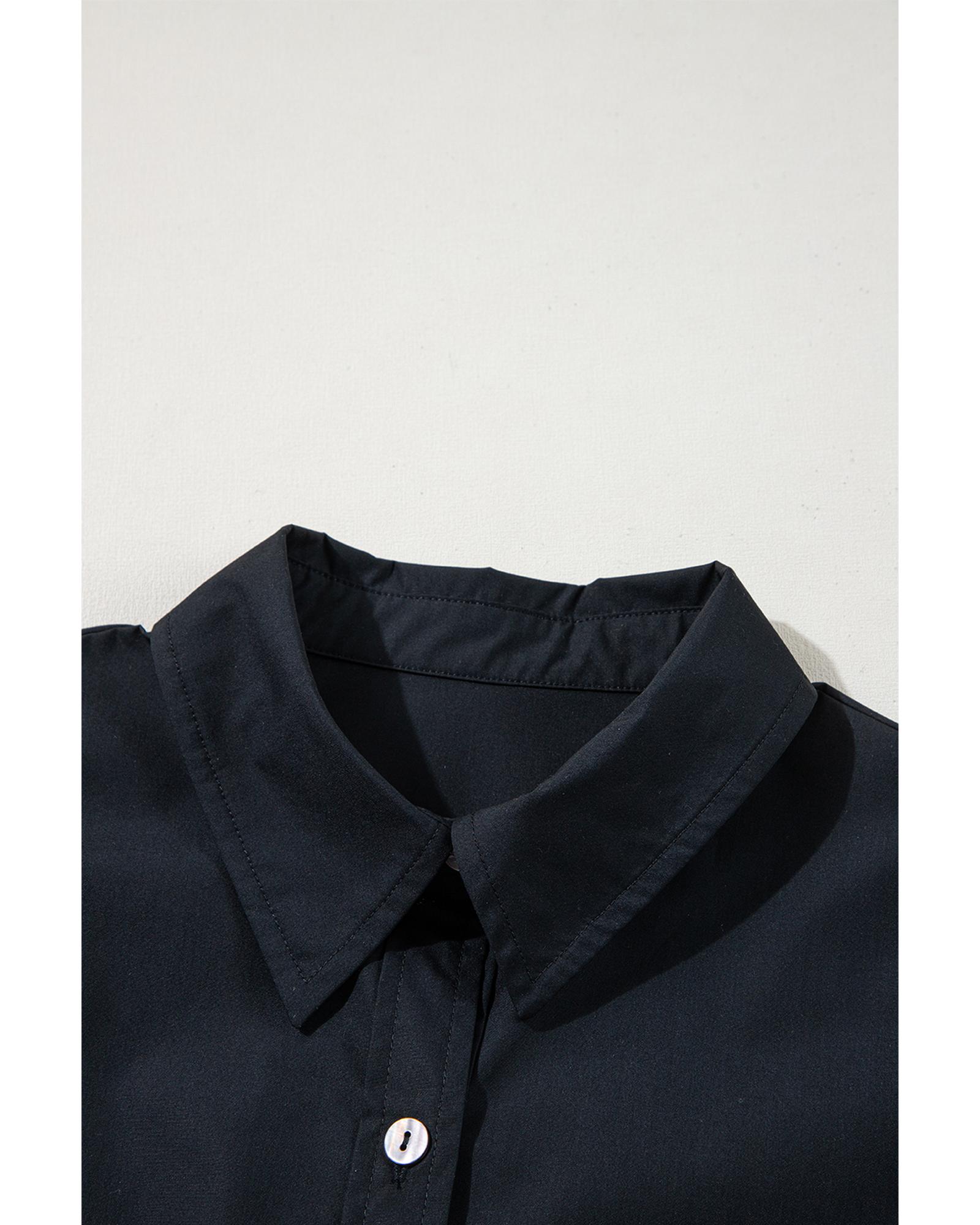 Black Button Up Tie Waist Puff Sleeve Mini Dress – 2XL
