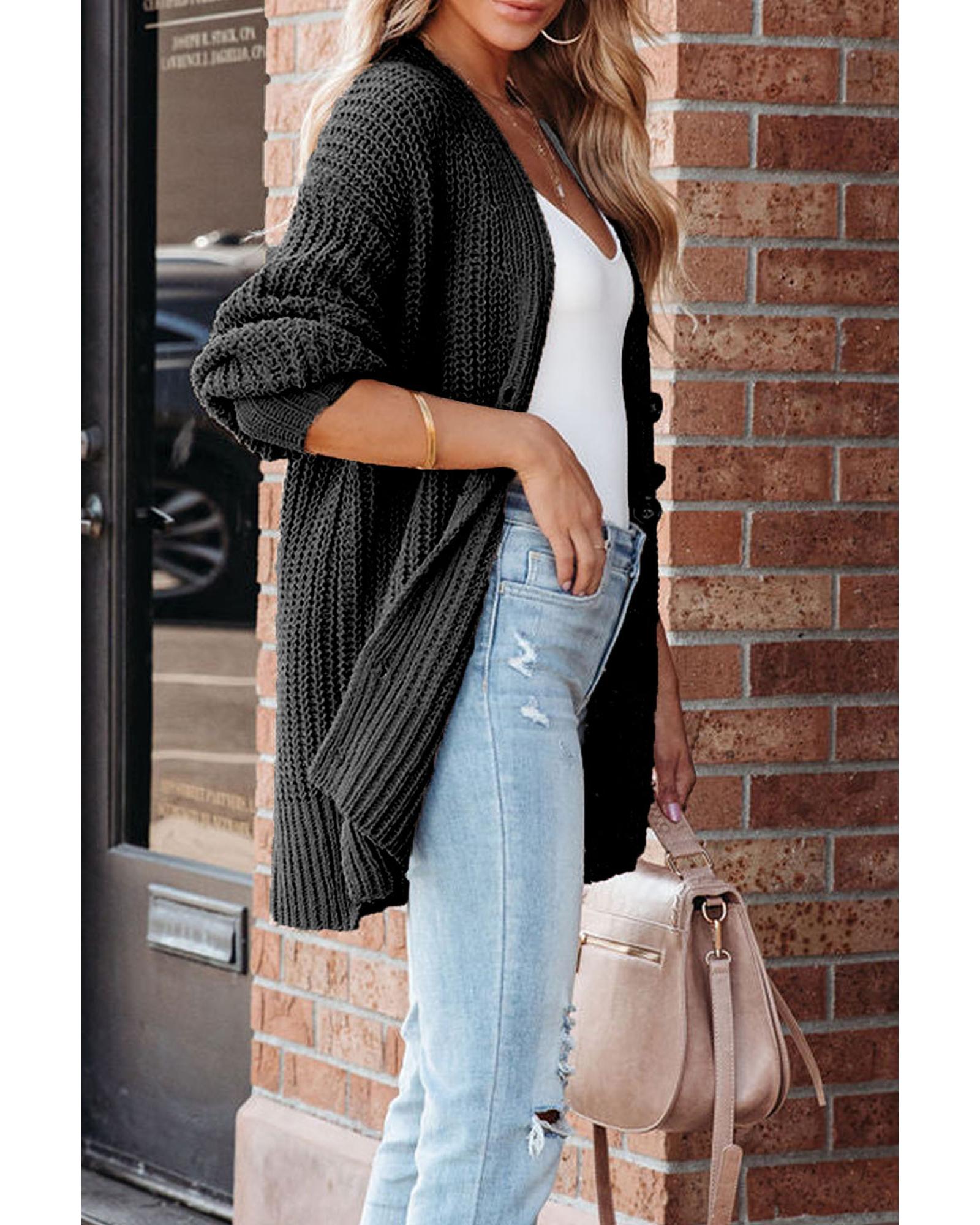 Black Buttoned Front Drop Shoulder Knitted Cardigan – S
