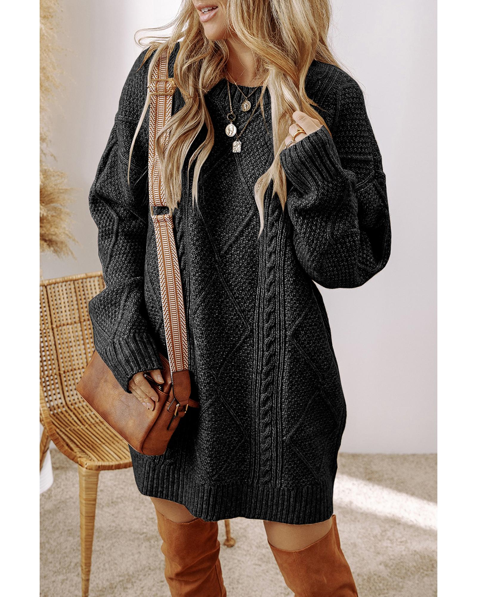 Black Cable Knit Drop Shoulder Loose Fit Sweater Dress – L