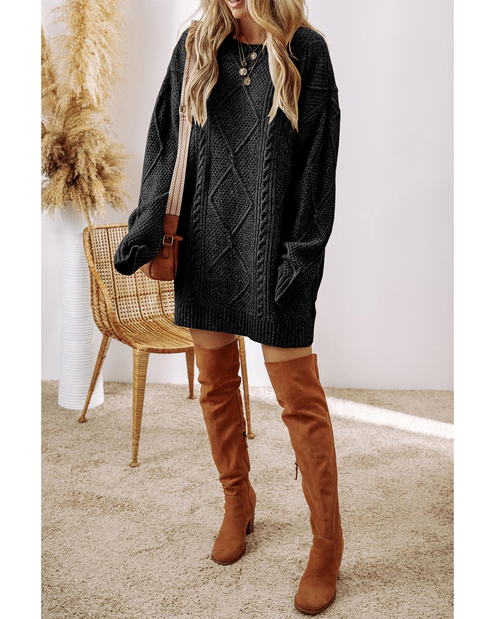 - Black cable knit sweater dress