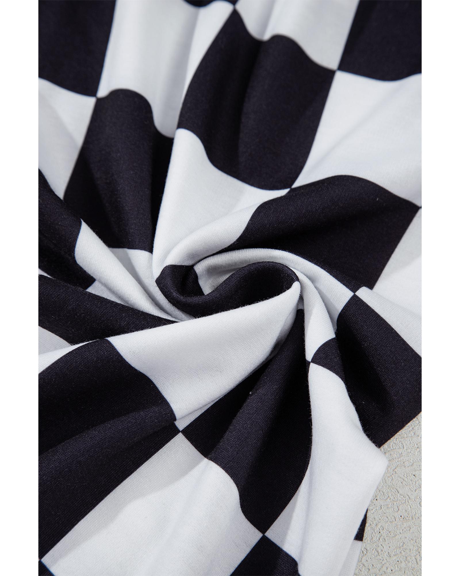 - Black Checkerboard Elastic Waist Pocketed Joggers