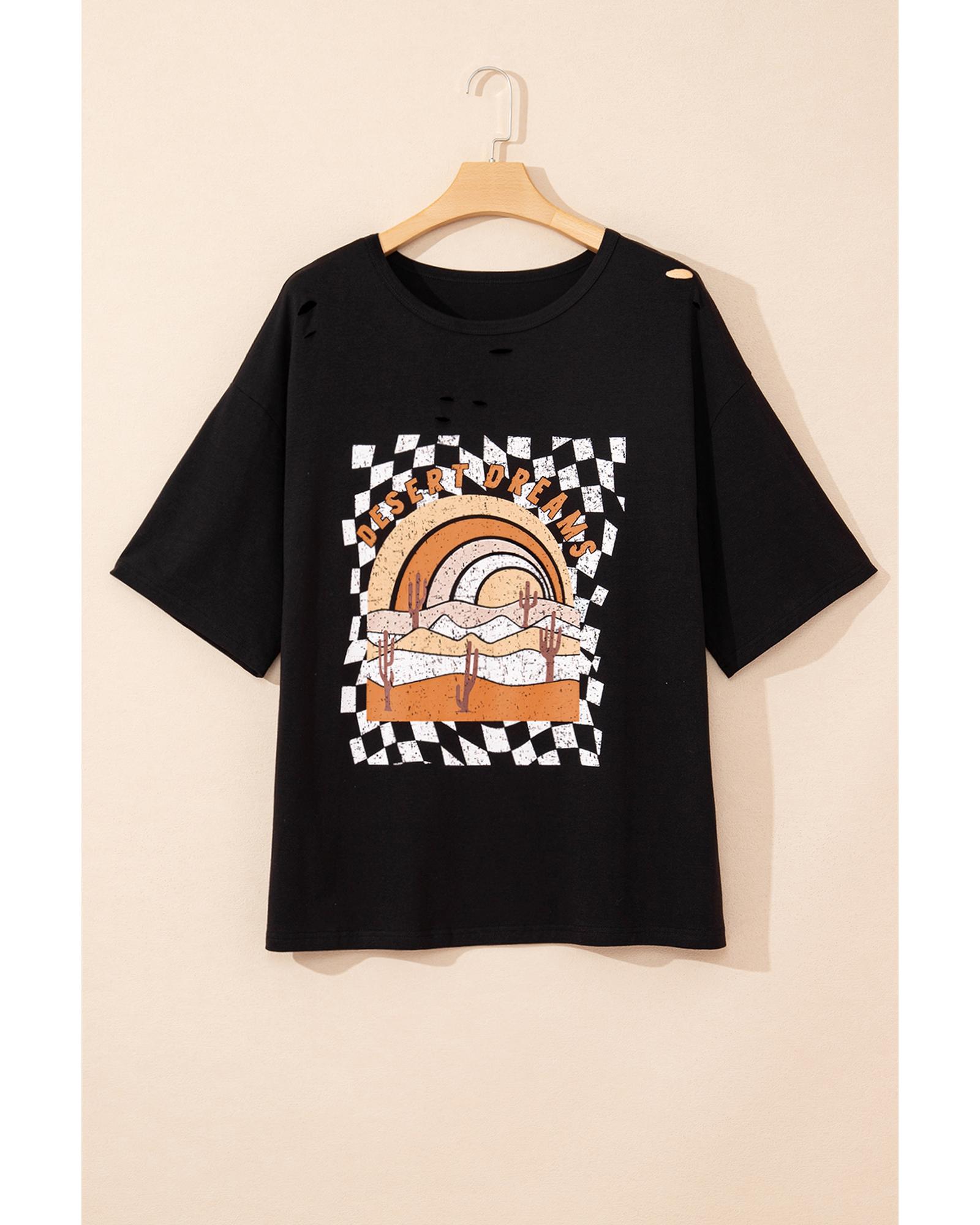 Black Checkerd DESERT DREAMS Printed Ripped Plus Size Tee – 3X