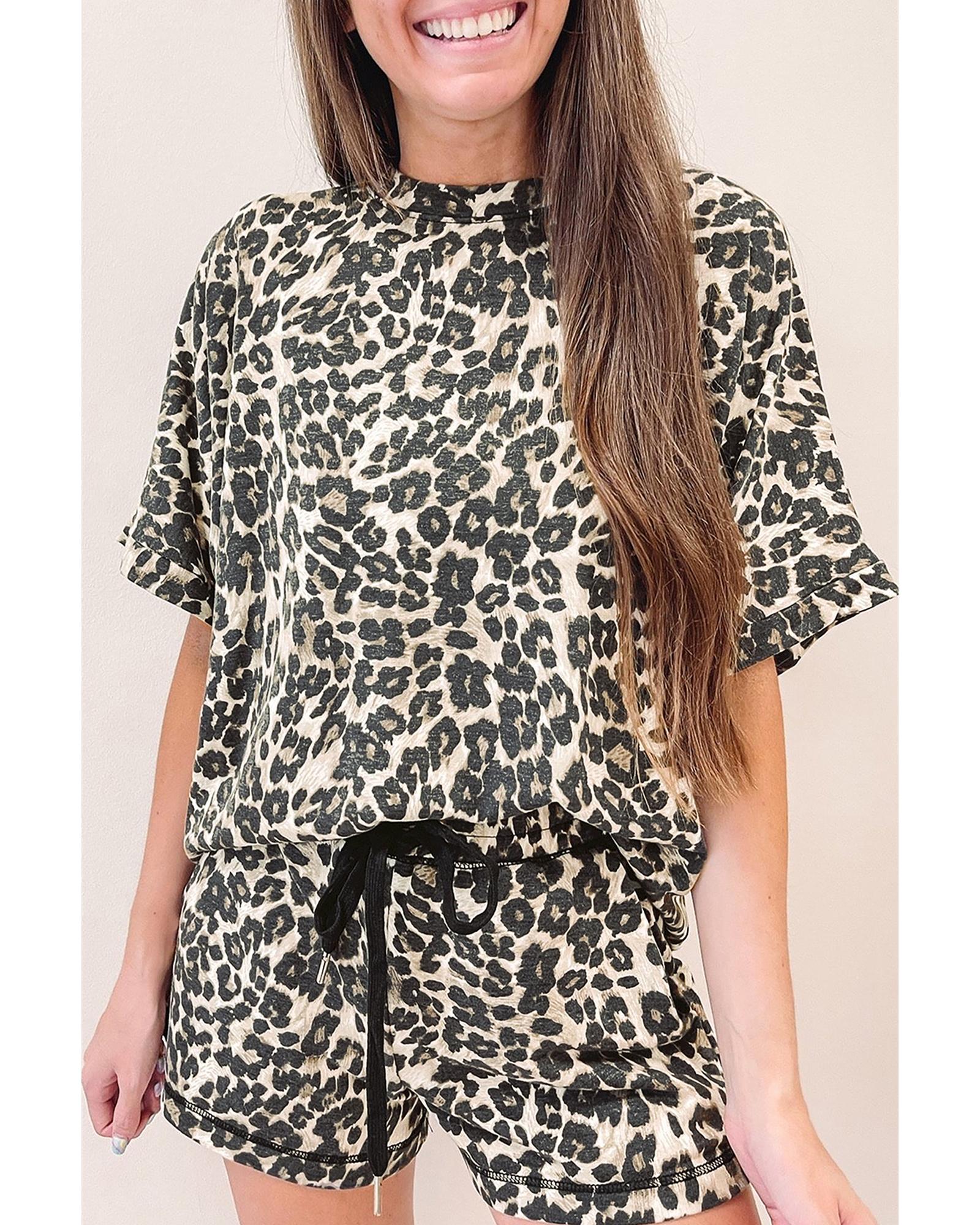 Black Cheetah Printed Casual Tee and Shorts Lounge Set – L