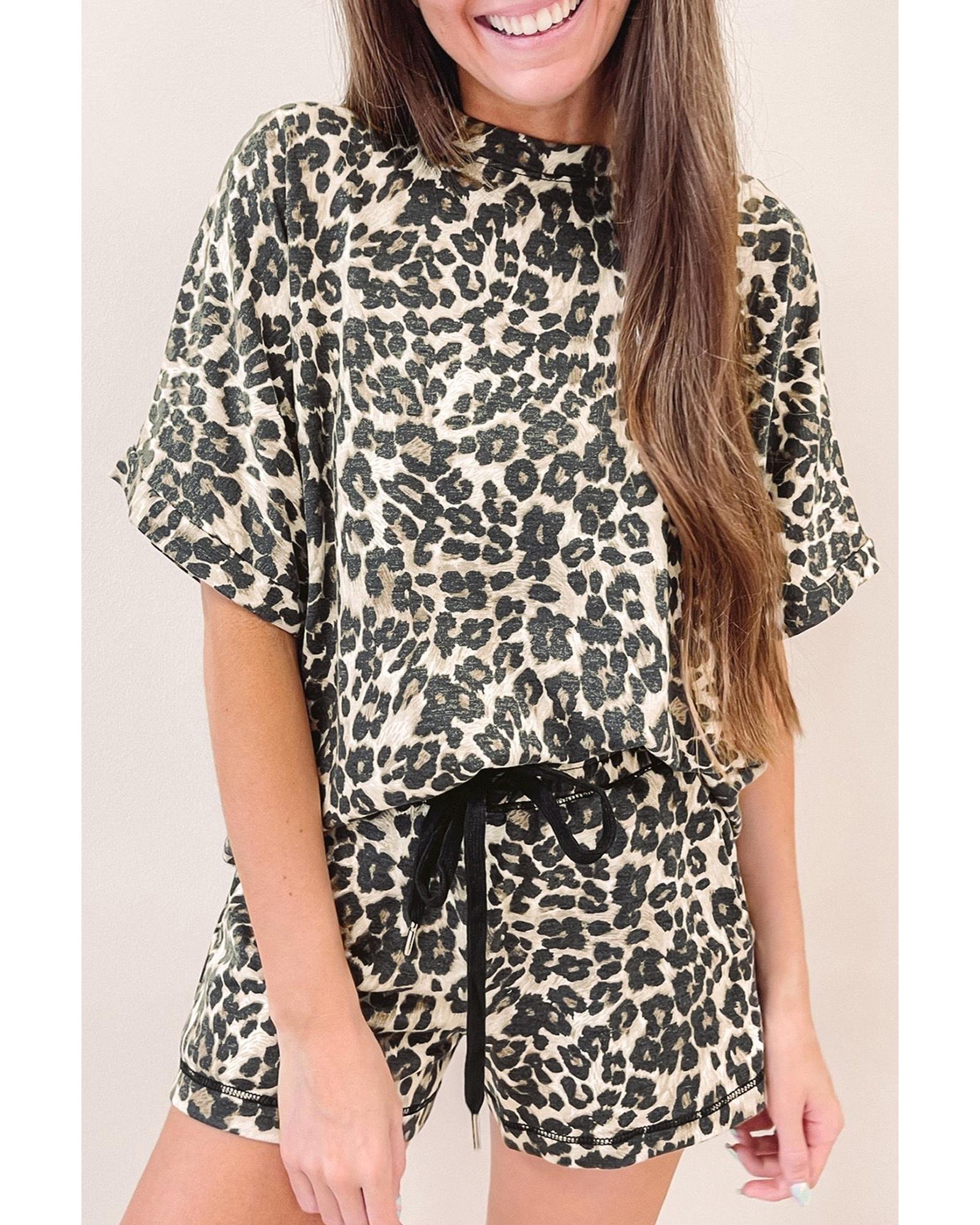 Black Cheetah Printed Casual Tee and Shorts Lounge Set – M