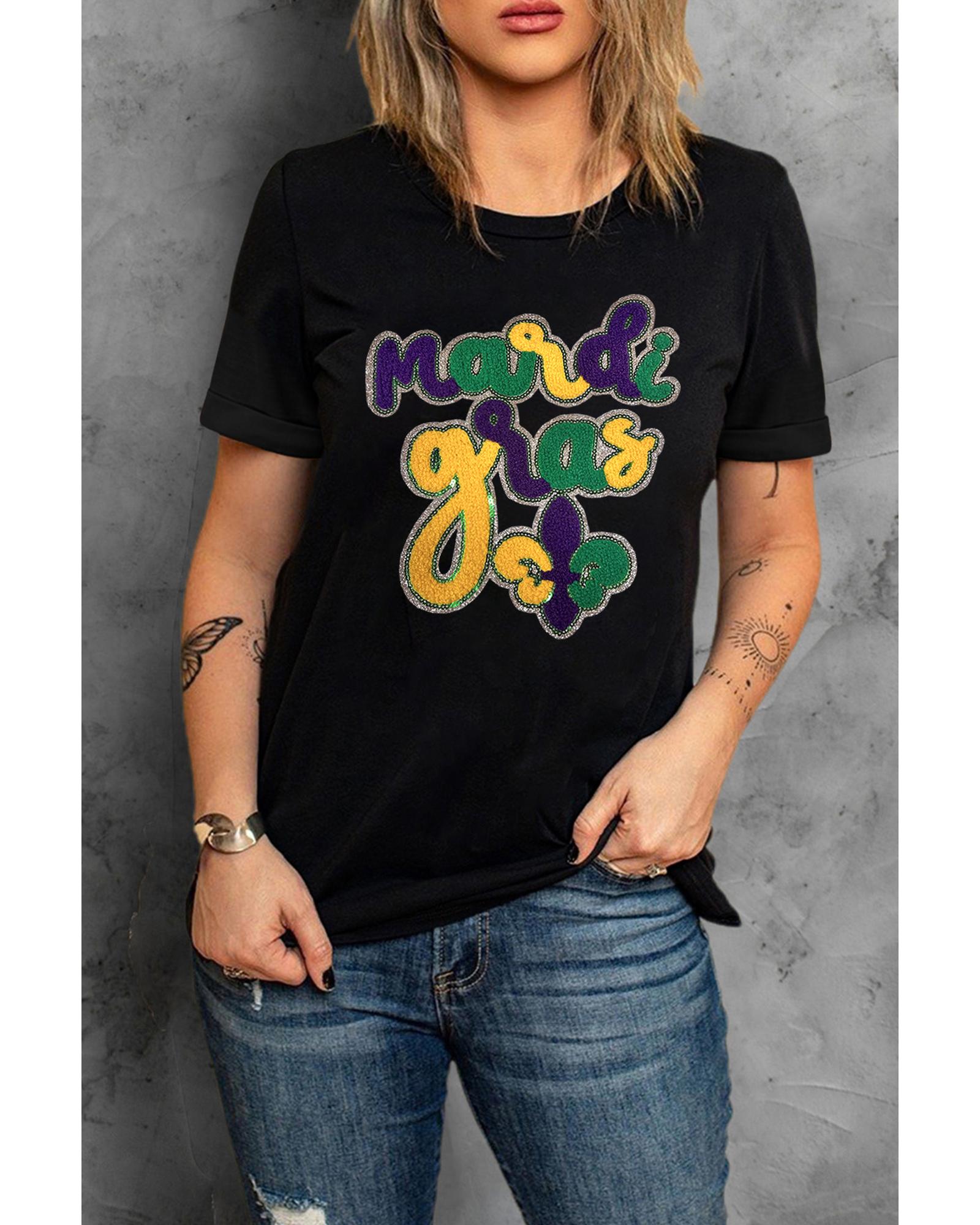 - Black Chenille Mardi Gras Letter Graphic Tee