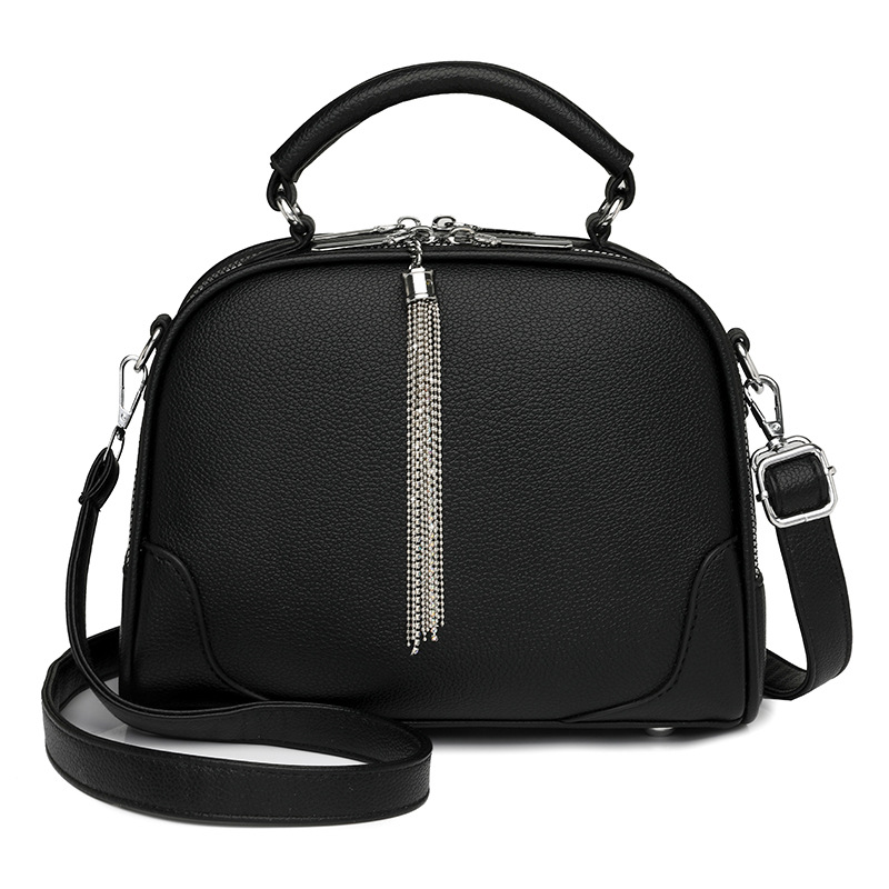 Black Chic Mini Round Crossbody Bag for Women – Elegant Handbag with Tassel Accent