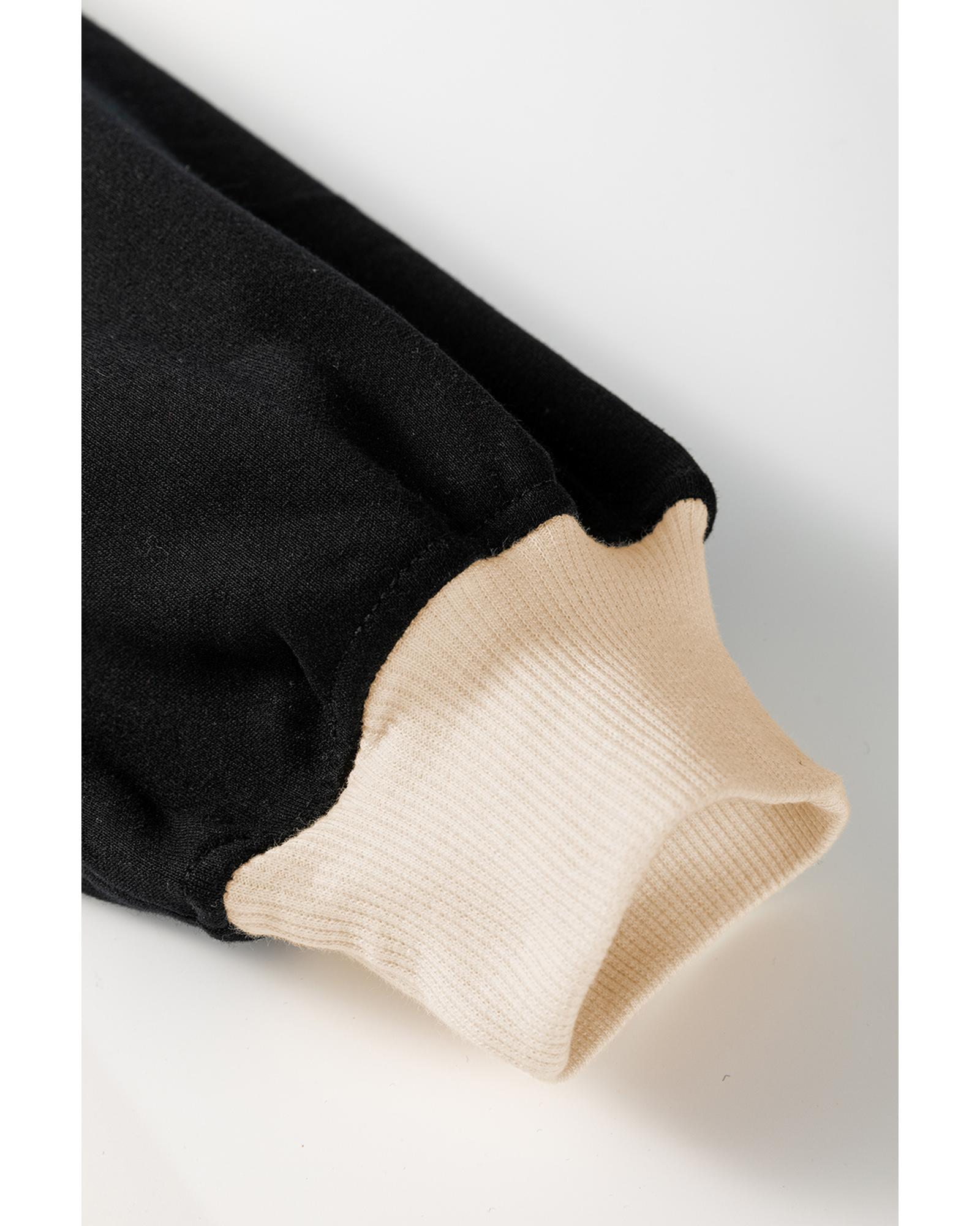 Black Color Contrast Loose Pullover and Lace-up Waist Skort Set – M