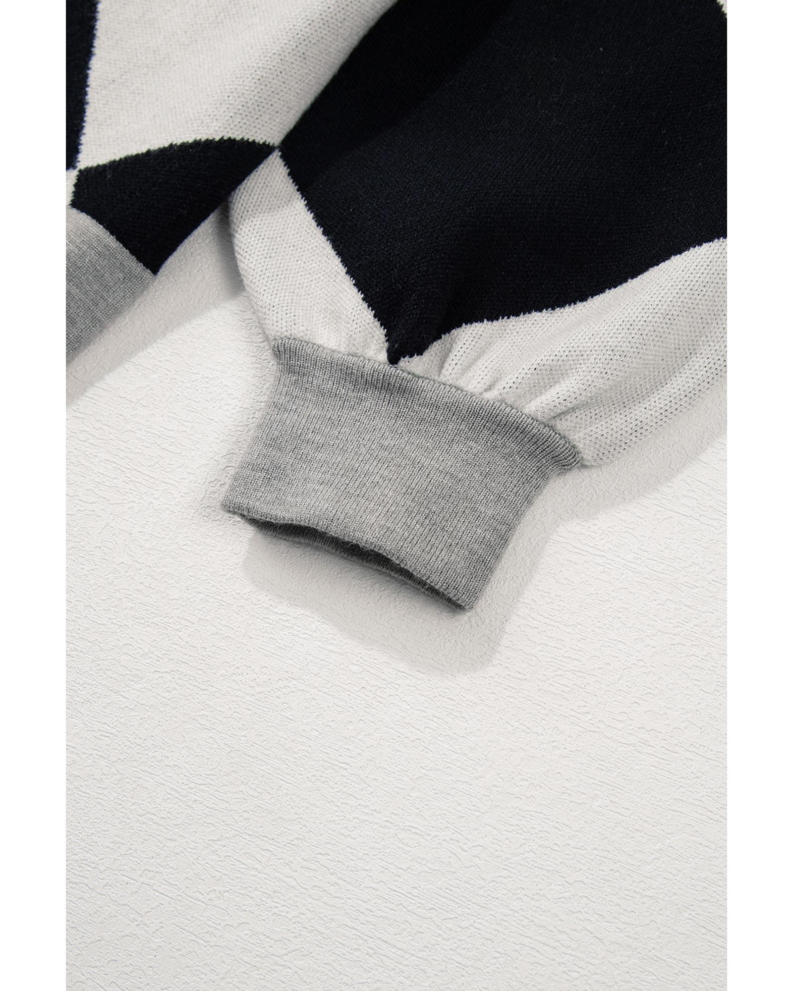 Black Colorblock Drop Shoulder Buttoned Loose Cardigan – 2XL